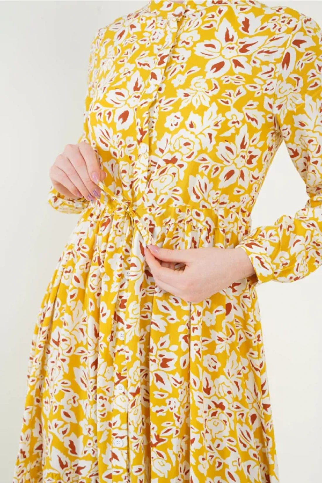 محتوى المنتج 100٪ فيسكوز. ميزات المنتج: فستان بياقة مستقيمة، فستان بأزرار طول. معلومات نموذج الجسم: الحجم: 38. طول المنتج: 136 سم. طول الأكمام: 60 سم. قياسات العارضة: الطول: 176، الصدر: 90، الخصر: 63، الورك: 94. تعليمات الغسيل والاستخدام العامة • يجب غسل المنتجات اليدوية والمرصعة بالخرز في برنامج حساس من الداخل إلى الخارج • قد تتساقط المنتجات المطبوعة مع مرور الوقت • لتجنب تلف المنتج أثناء الغسيل، لا تتجاوز 30 درجة مئوية • اغسل المنتج وفقًا لتعليمات الغسيل • استخدم المنظف المناسب للمنتجات الملونة • قد تتغير المنتجات الجينز والمنتجات ذات الألوان الداكنة عند غسلها مع المنتجات الأخرى ذات الألوان الفاتحة. لا تغسليه معًا، ولا تعرضي الملابس لأشعة الشمس المباشرة أثناء تجفيفها.