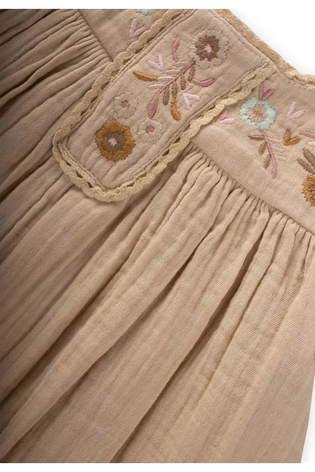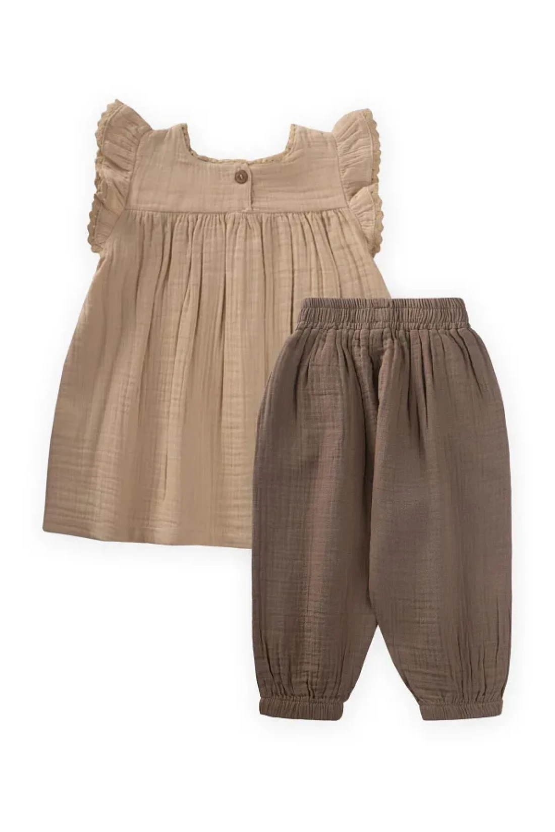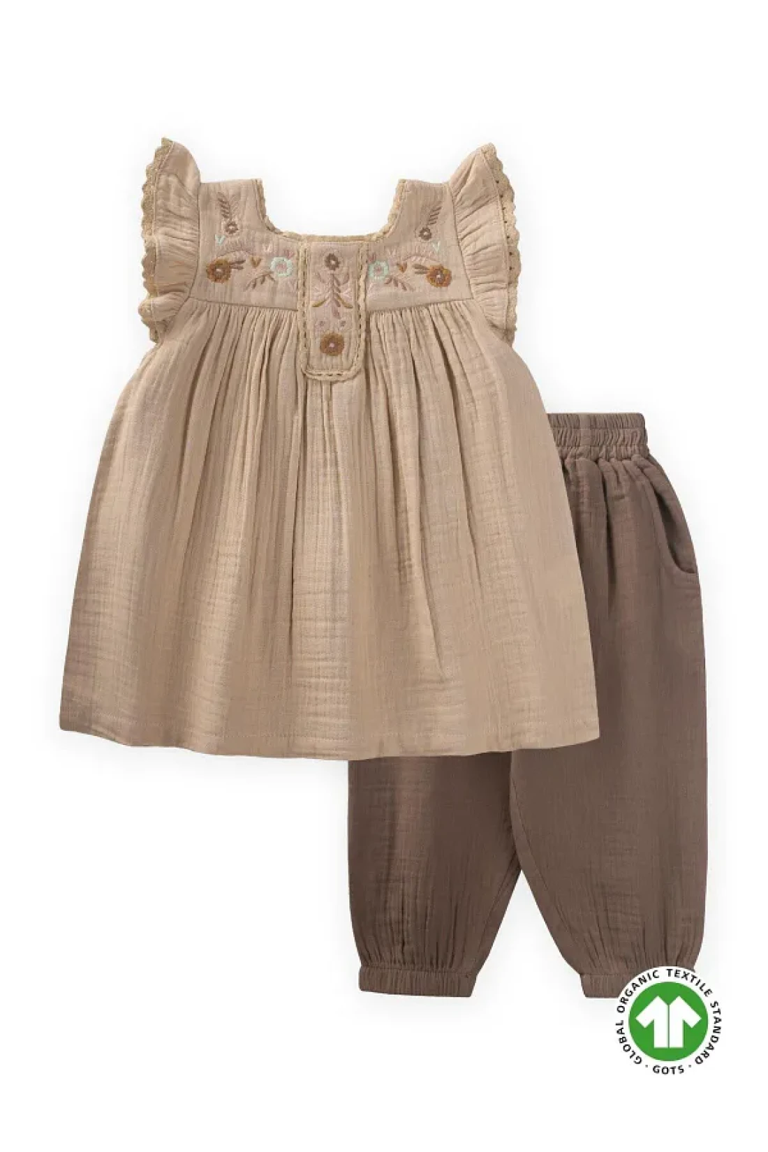Cigit طقم شال موسلين عضوي مطرز لعمر 1-7 بيج