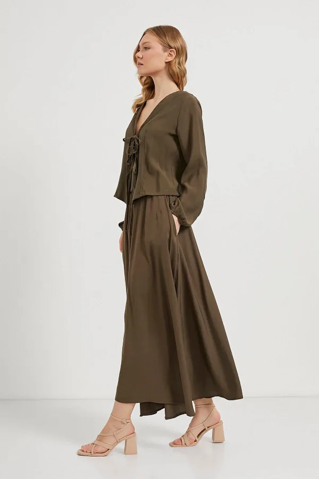 يخلق قصته الطويلة والمتوهجة تأثيرًا جذابًا أثناء تحركك، مما يخلق صورة ظلية أنيقة ومتدفقة، مما يجعله خيارًا أنيقًا لكل من الارتداء اليومي مع الصنادل أو أحذية الإسبادريل للحصول على أناقة مريحة أو لإضافة إلى عشاء رومانسي على طول المضيق أو دعوة صيفية.