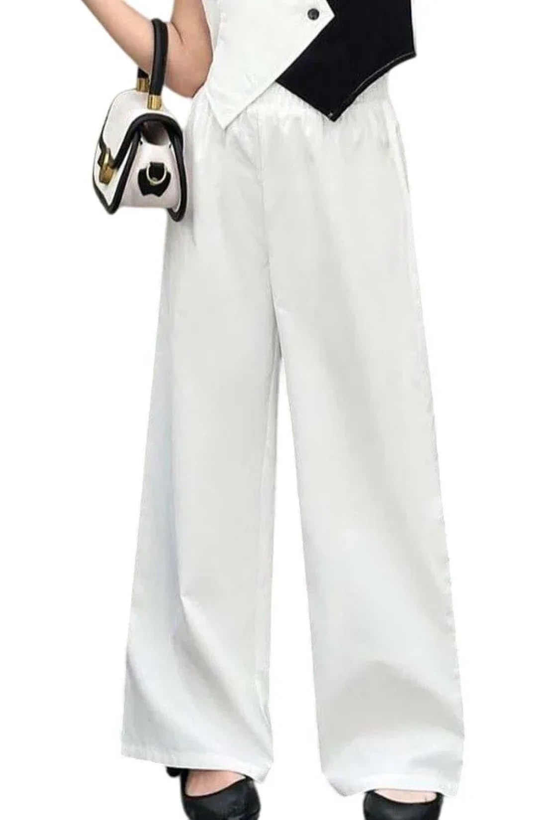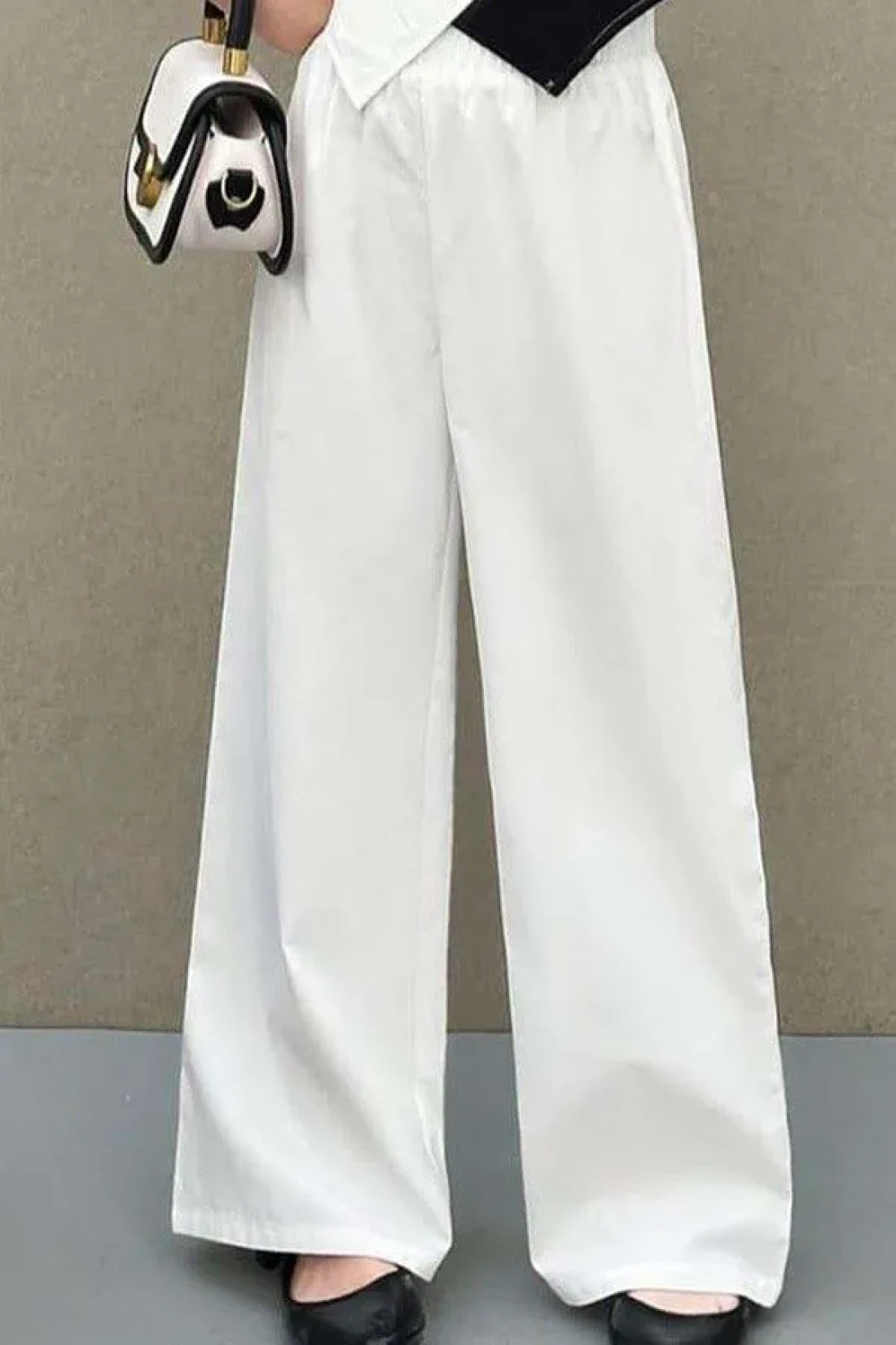 جيوب مزدوجة مع خصر مطاطي بنطلون واسع الأرجل .