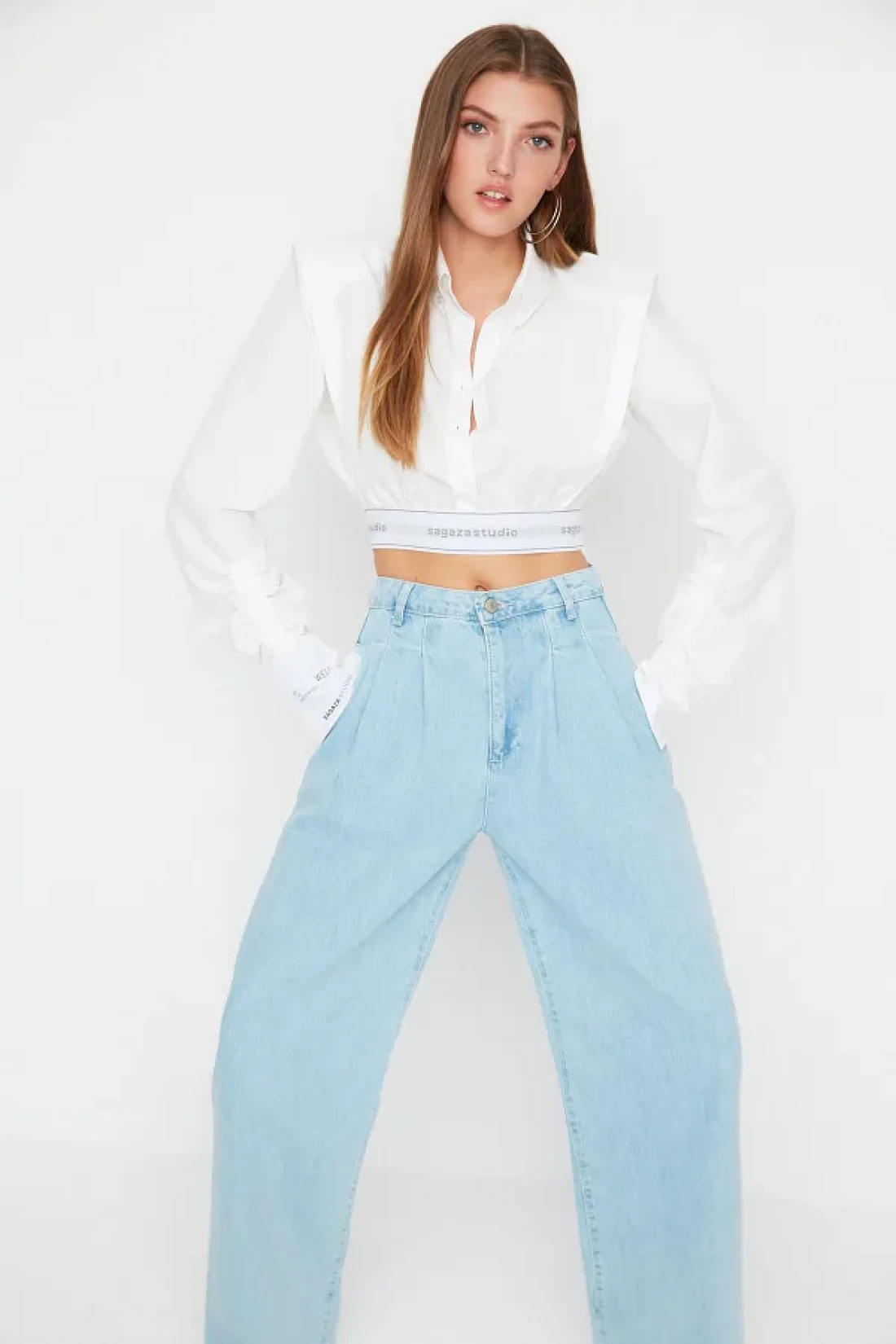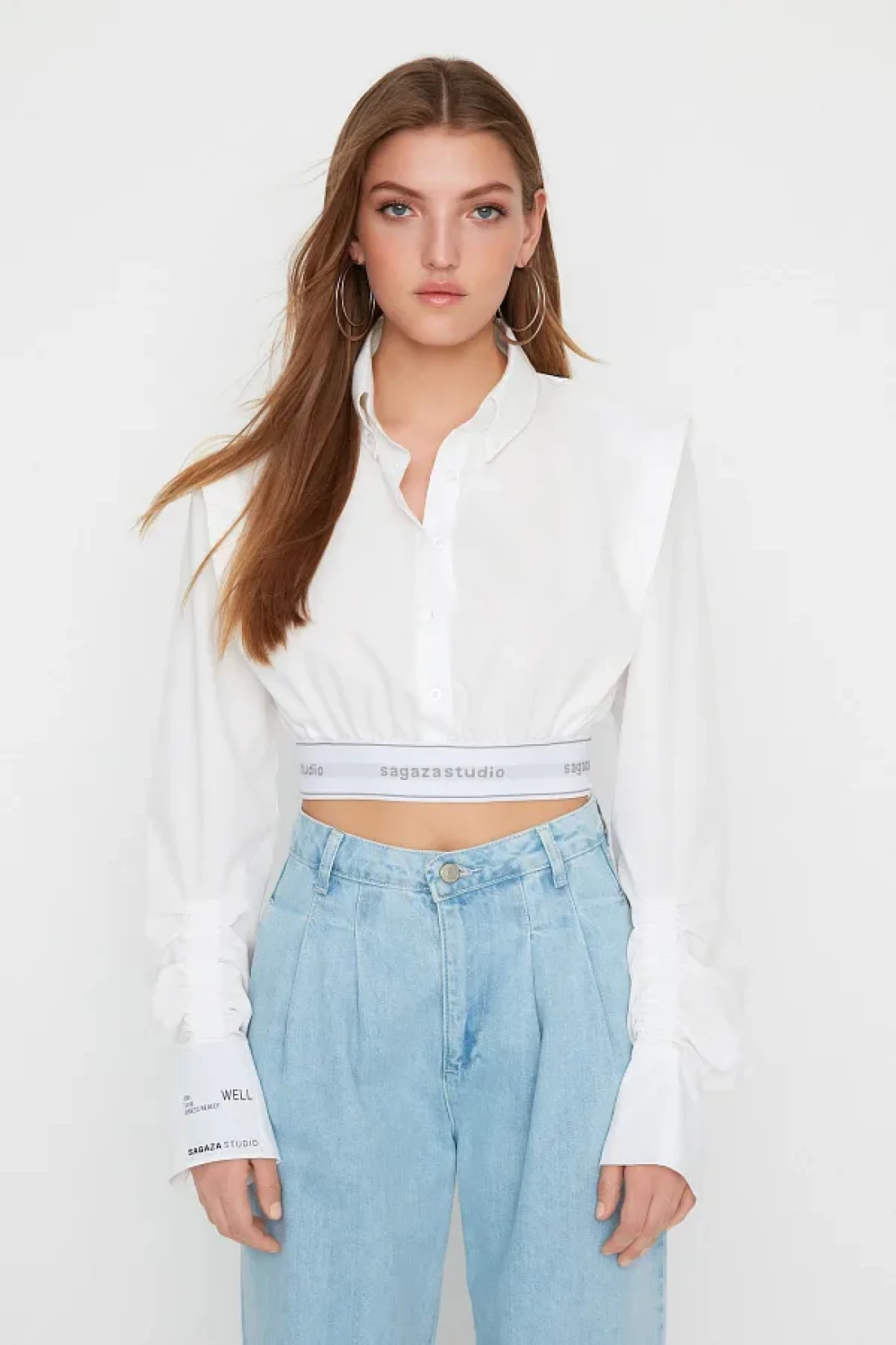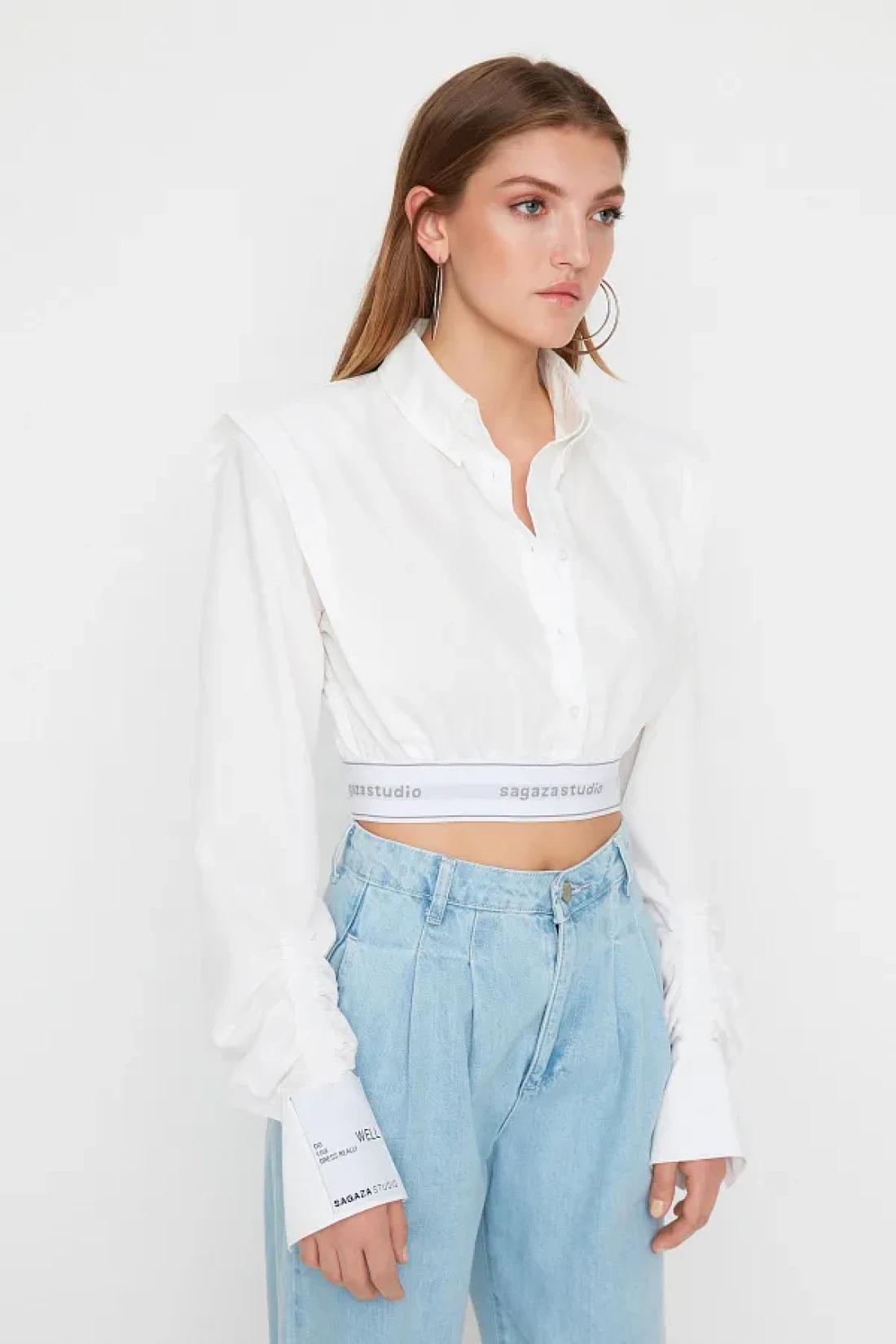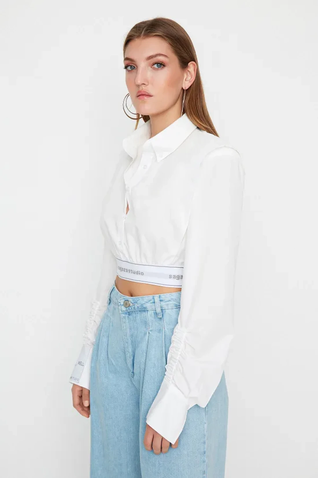 Collection قميص قصير من البوبلين الأبيض من Sagaza Studio - TPRSS22GO00006