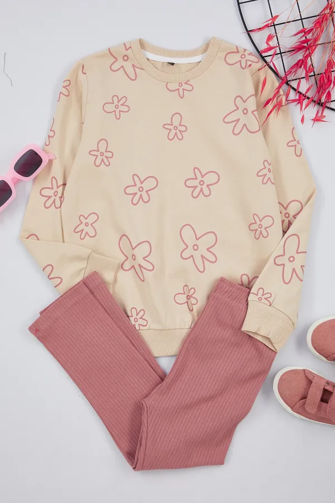 TRENDYOLKIDS طقم شعار وردي محبوك من القطن - TKDAW25AU00005