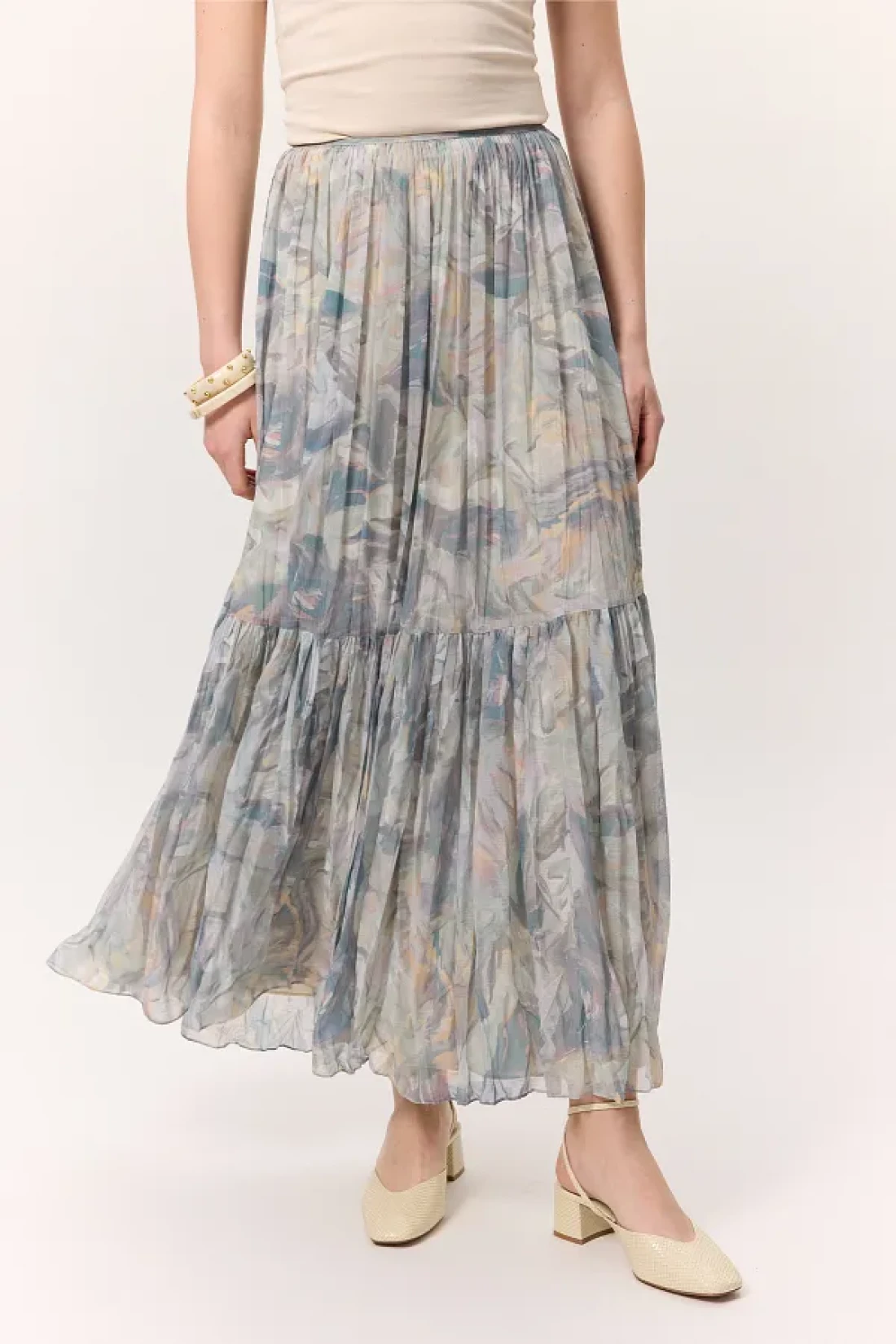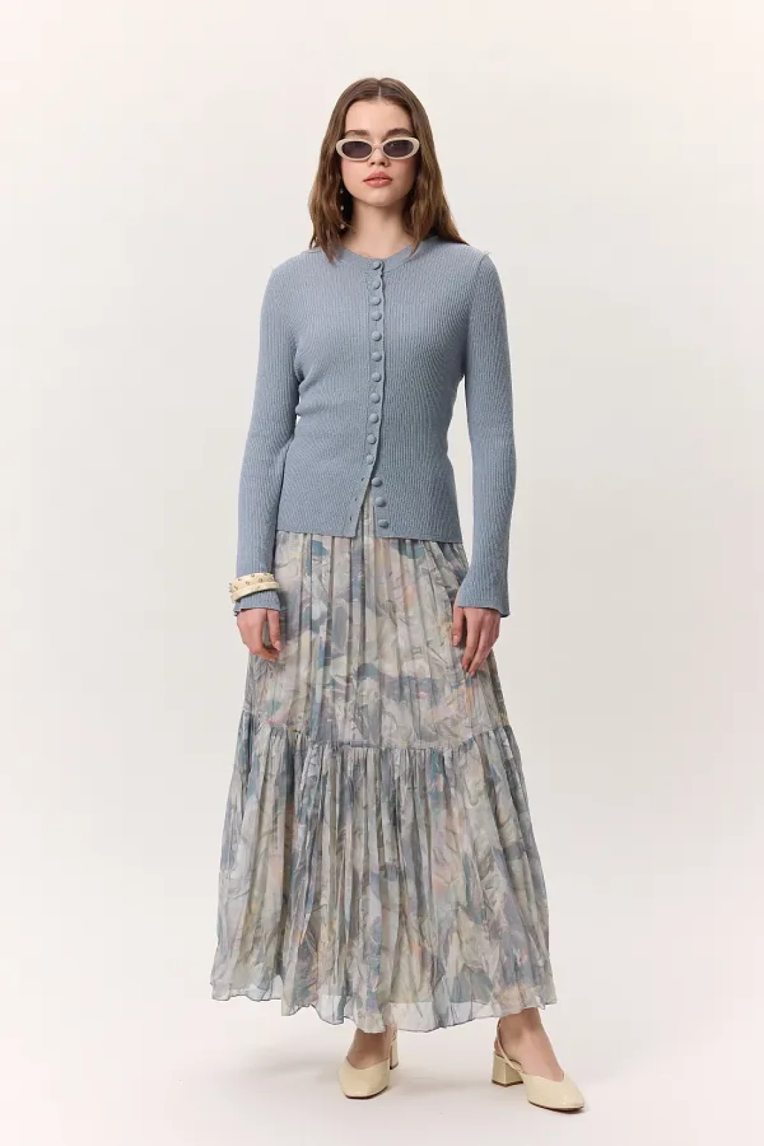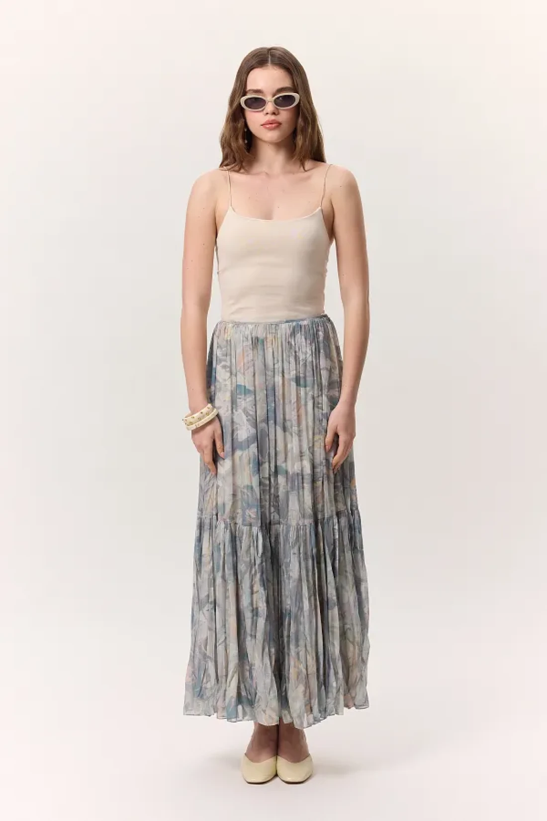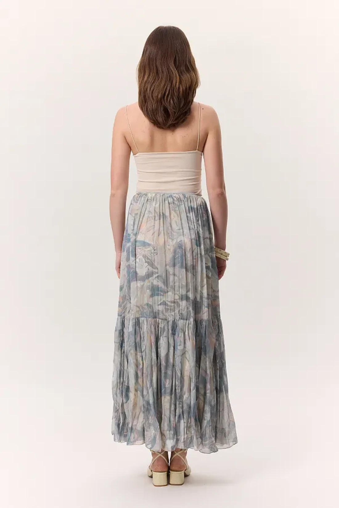المقاس 34: الطول الأمامي: 98 سم، الطول الخلفي: 98، الخصر: 31 سم، الحاشية: 102 سم. المقاس 36: الطول الأمامي: 98 سم، الطول الخلفي: 98، الخصر: 33 سم، الحاشية: 104 سم. المقاس 38: الطول الأمامي: 98 سم، الطول الخلفي: 98، الخصر: 35 سم، الحاشية: 106 سم. المقاس 40: الطول الأمامي: 98 سم، الطول الخلفي: 98، الخصر: 37 سم، الحاشية: 108 سم. المقاس 42: الطول الأمامي: 98 سم، الطول الخلفي: 98، الخصر: 39 سم، الحاشية: 110 سم. الموسم: الربيع / الصيف.