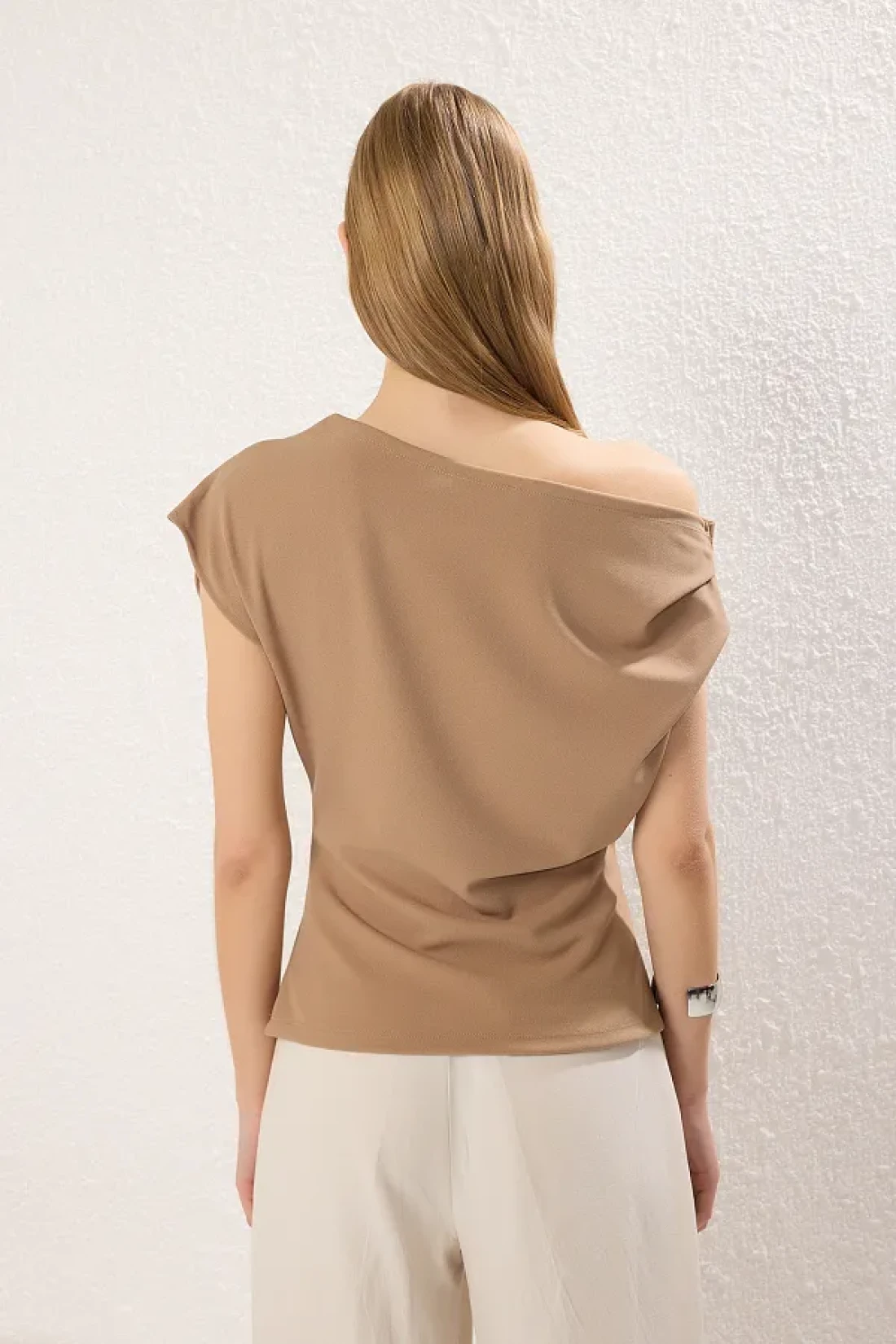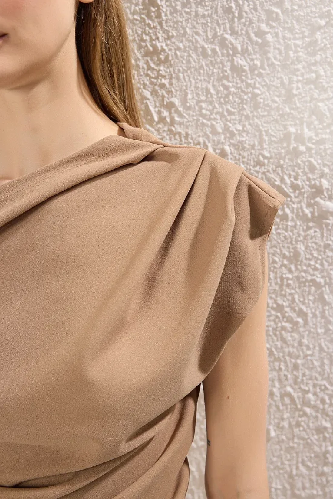 Collection بلوزة غير متماثلة - تفاصيل ربط وثنيات حجرية