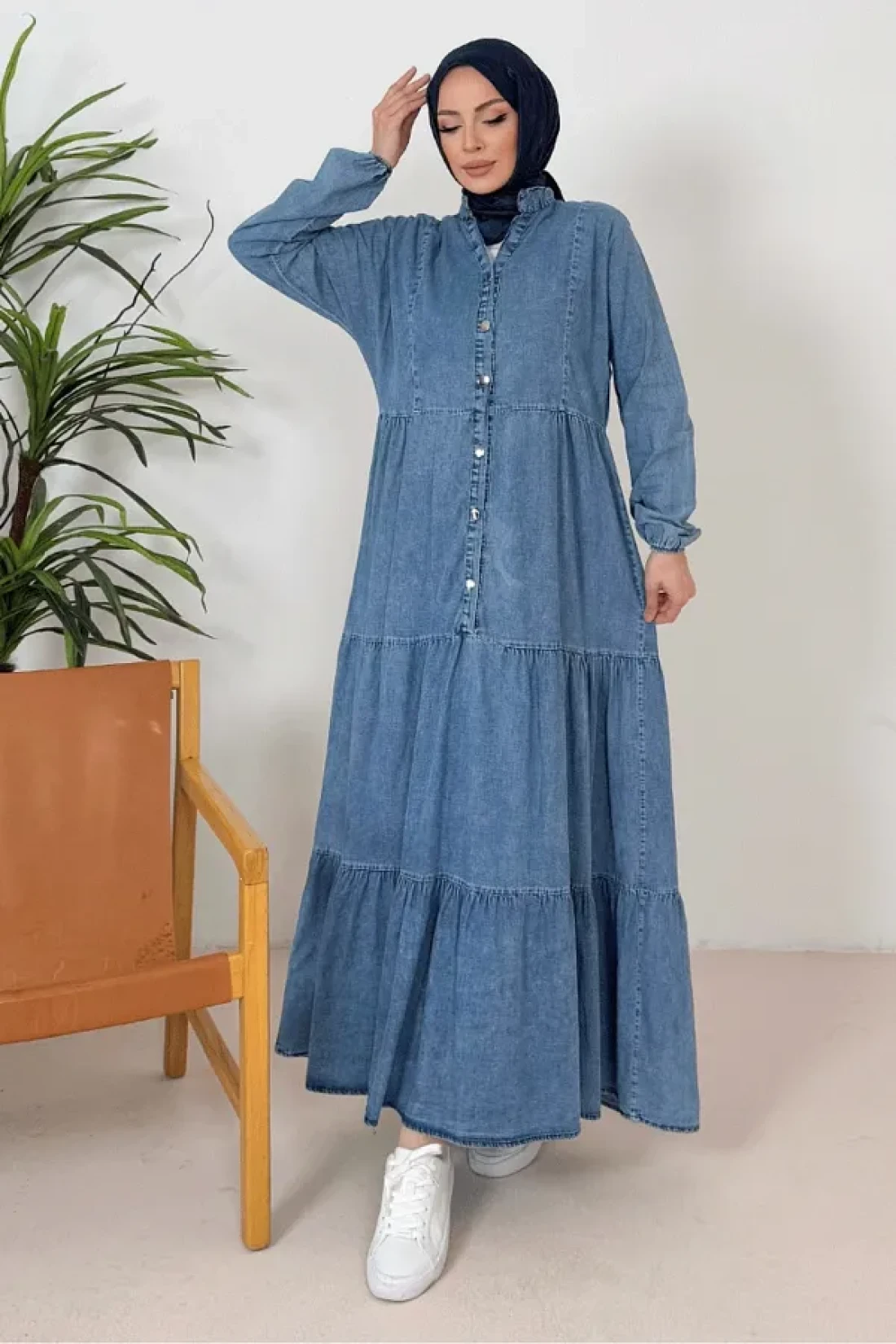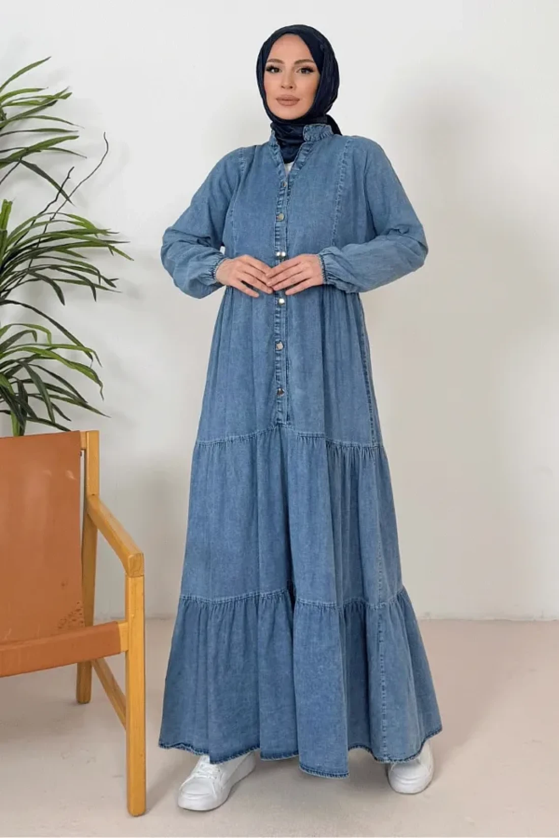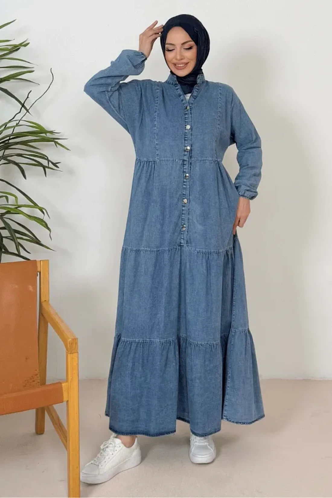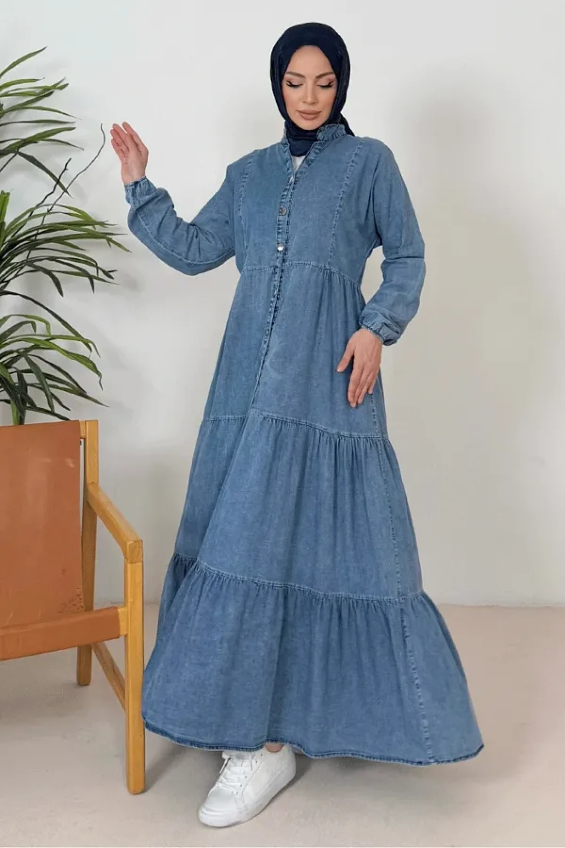 Bestenur فستان نيدل من الدنيم بأكمام الخفاش 1377 - أزرق