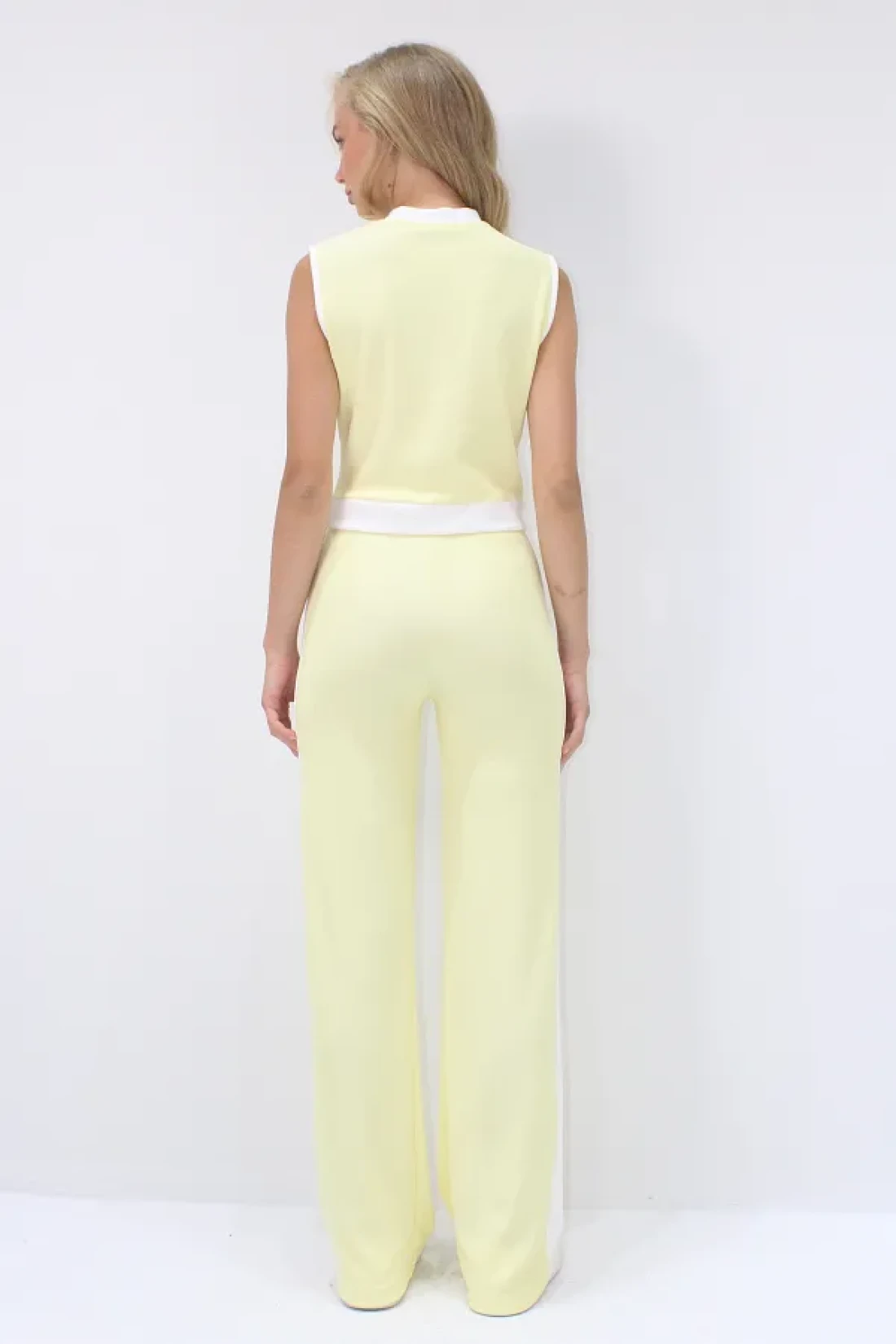 Trend Alaçatı Stili طقم بلوزة قصيرة وسروال بالازو للنساء باللون الأصفر الزبدة ALC-X13916