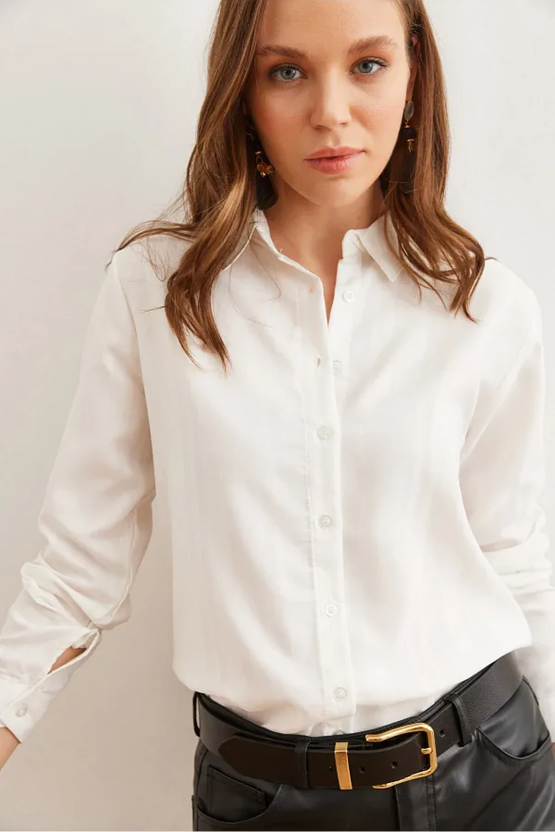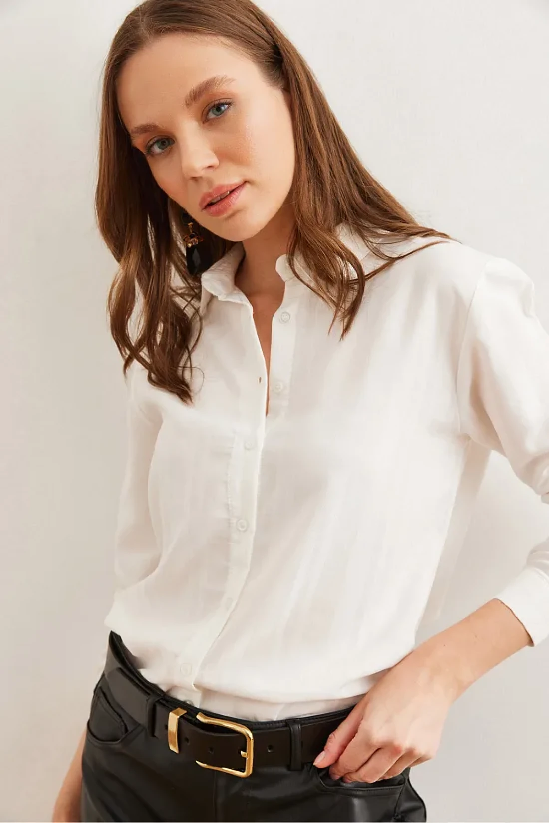 Olalook قميص نسائي أبيض لامع منسوج GML-19001152