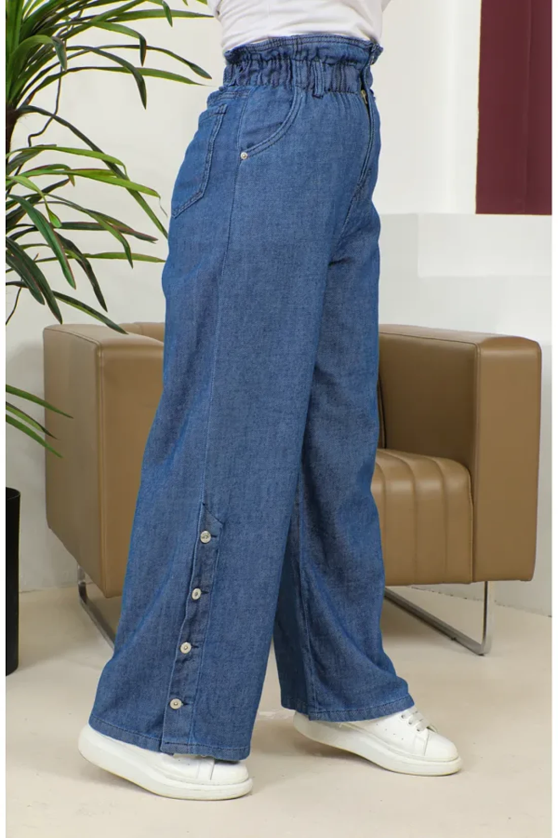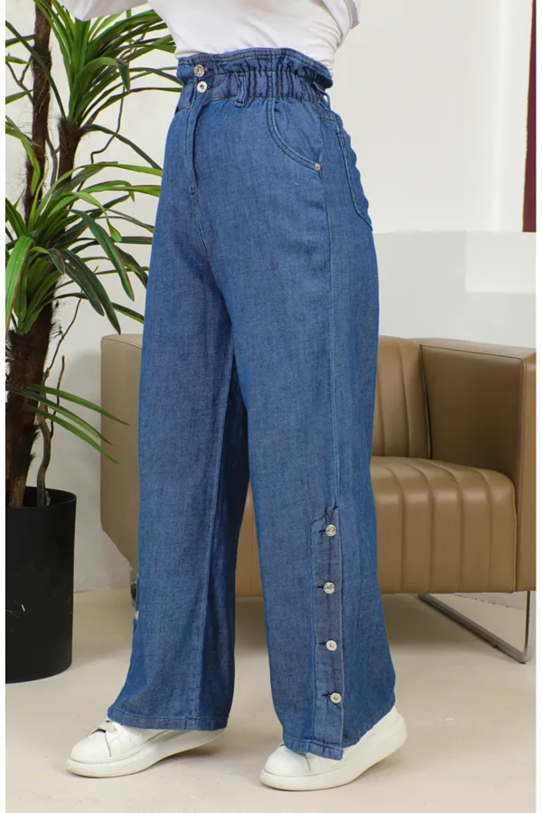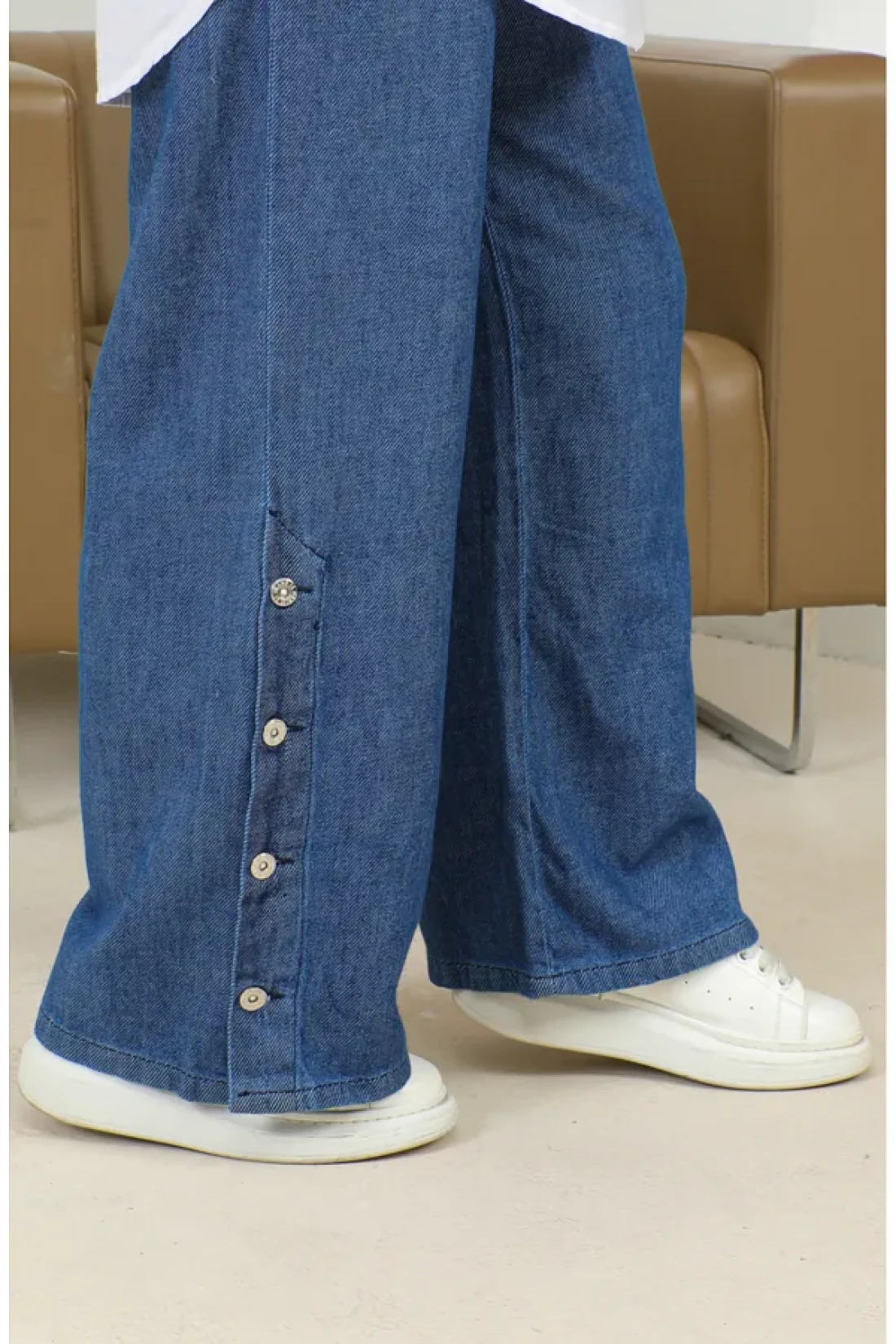 sefamerve بنطال جينز واسع الساق بأزرار 30051-02 - أزرق