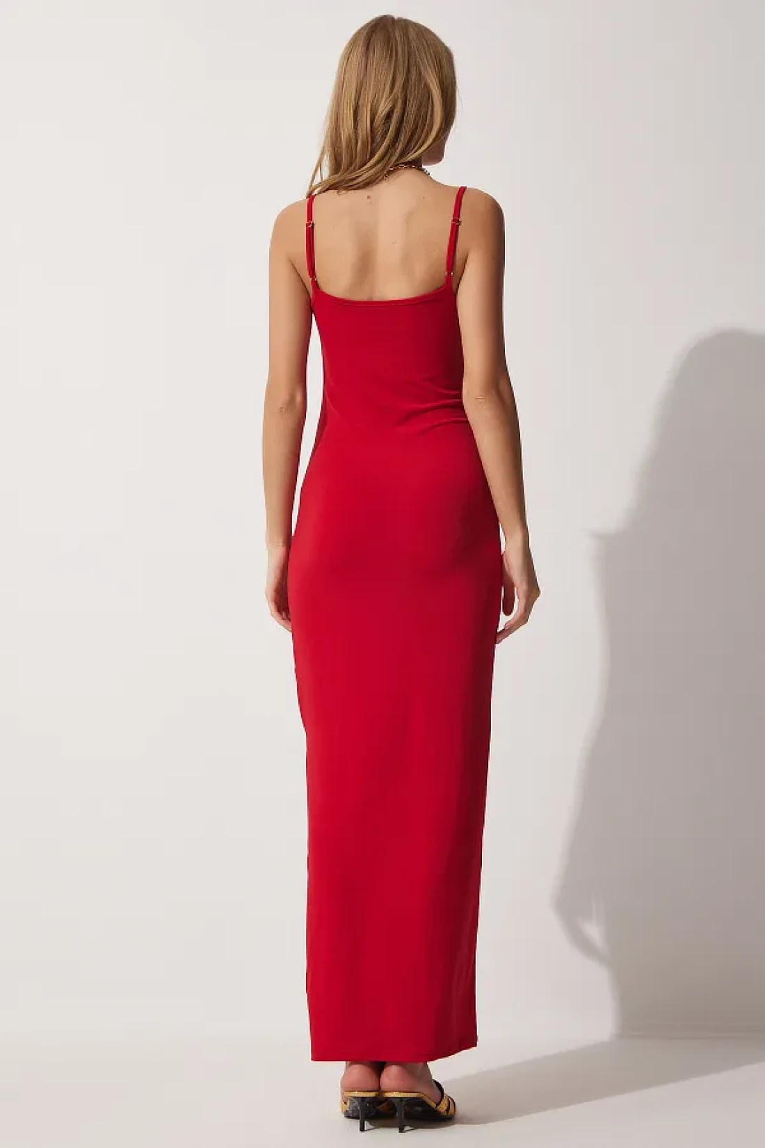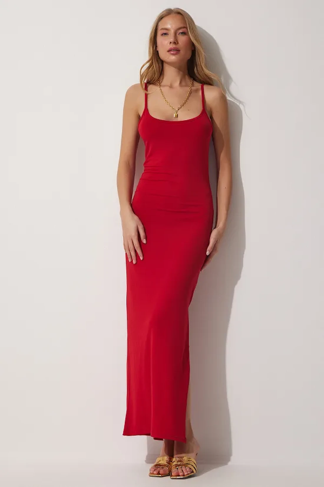 Happiness İstanbul فستان ساران صيفي طويل محبوك بحزام أحمر للسيدات UB00027
