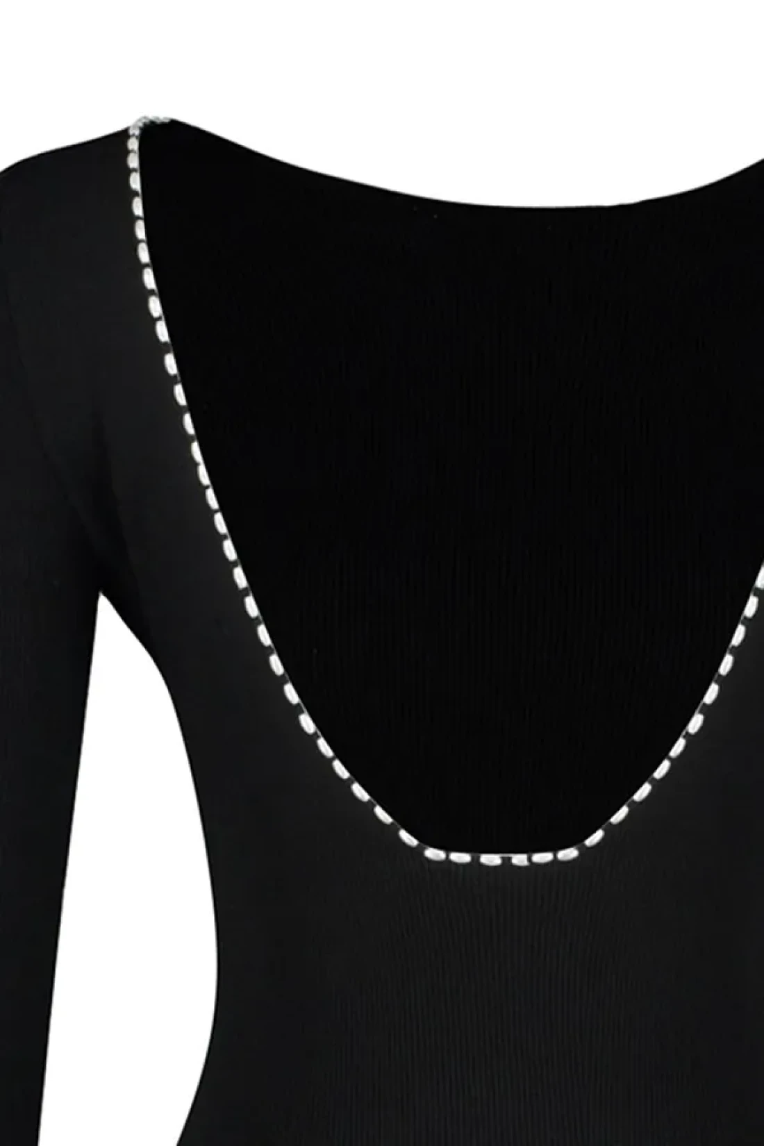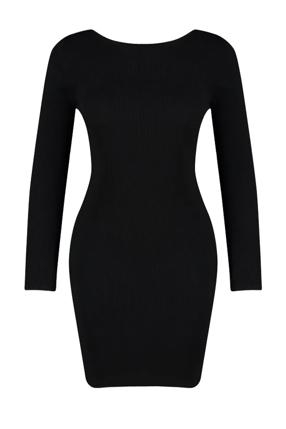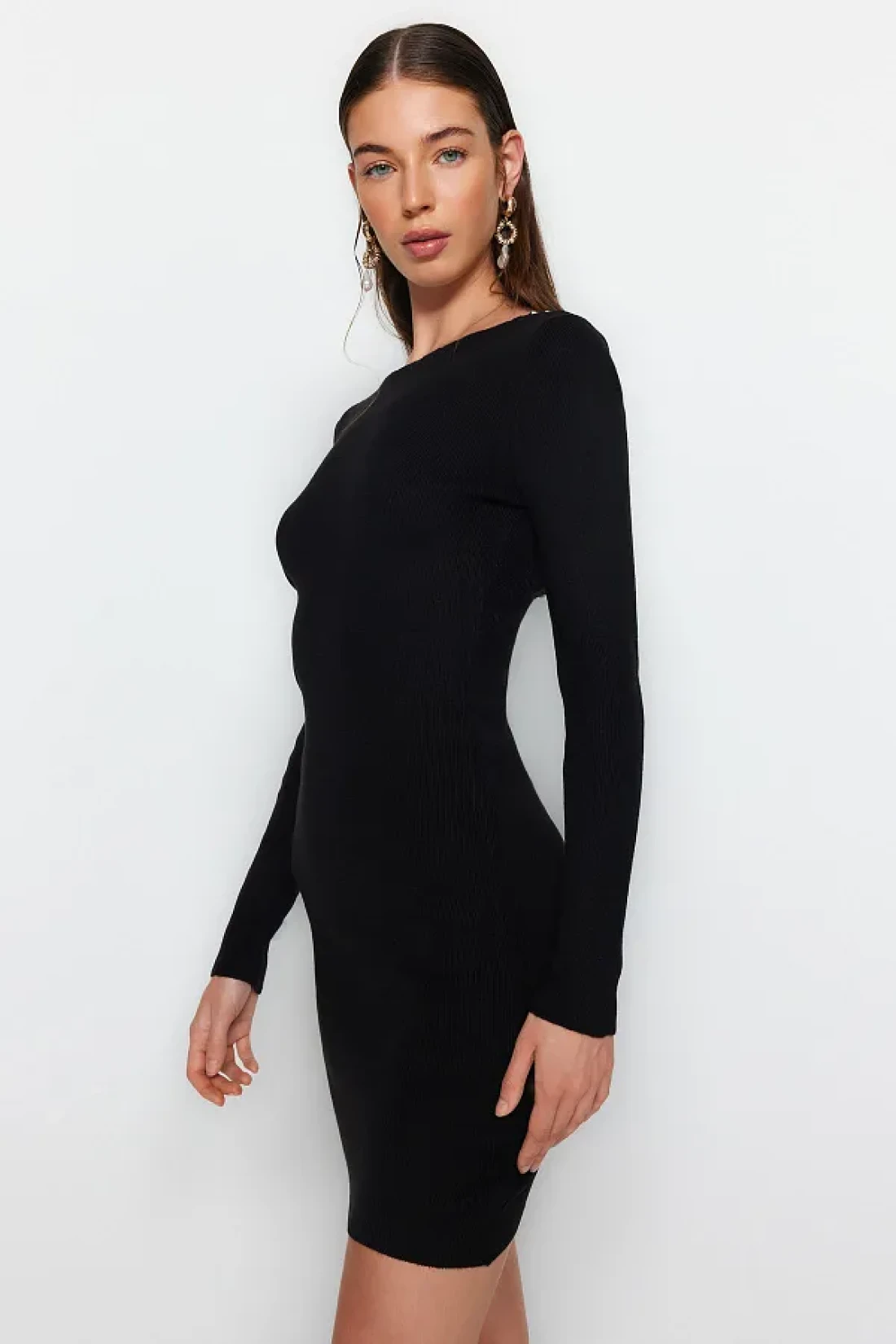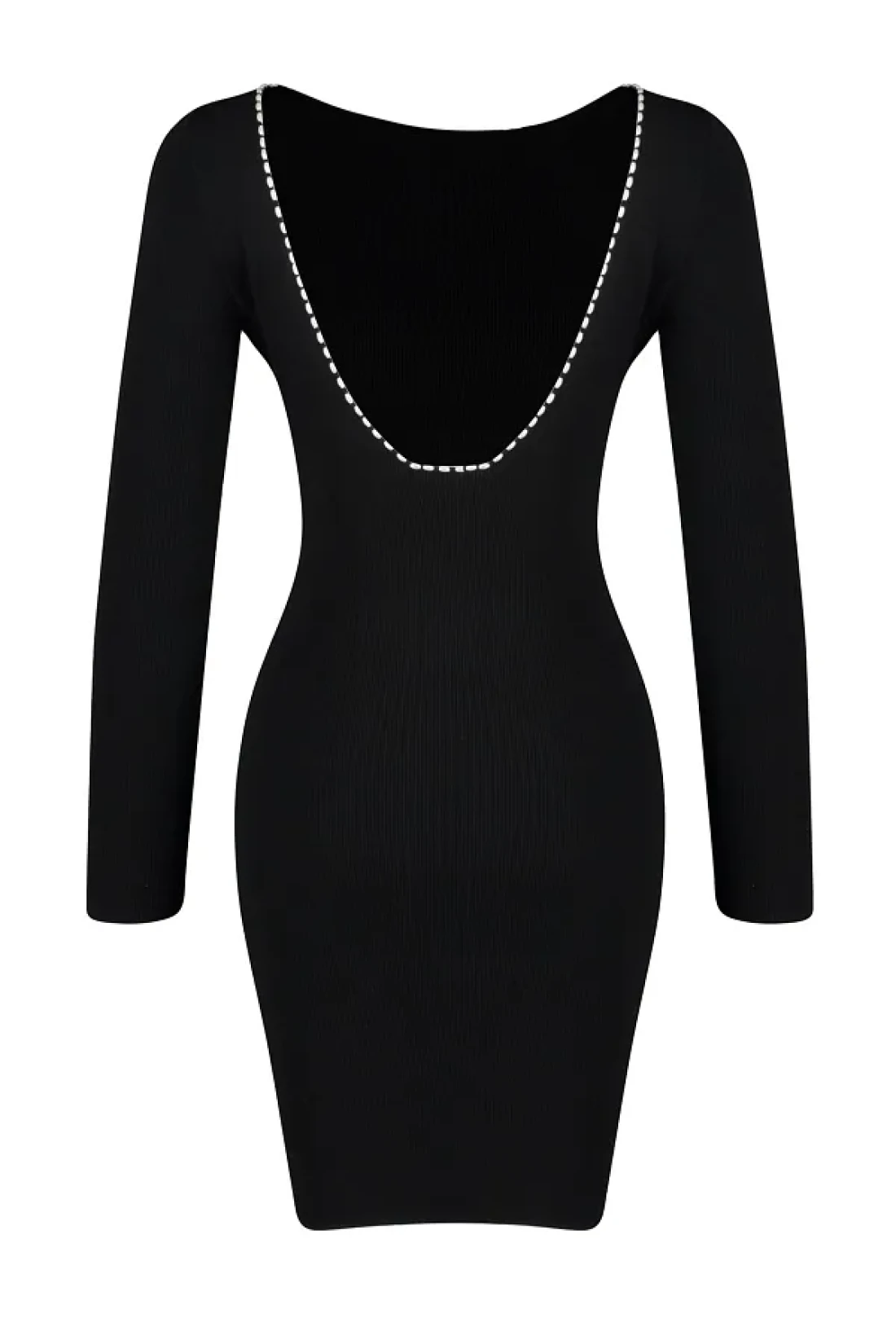 Collection فستان أسود قصير مزين باللؤلؤ من الخلف - TWOAW24EL00089