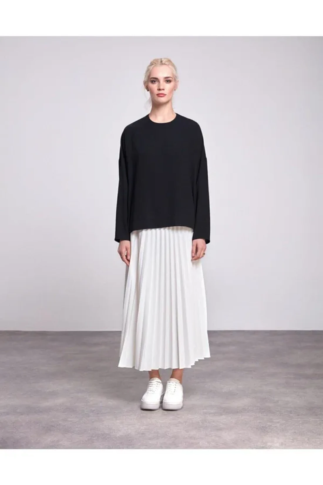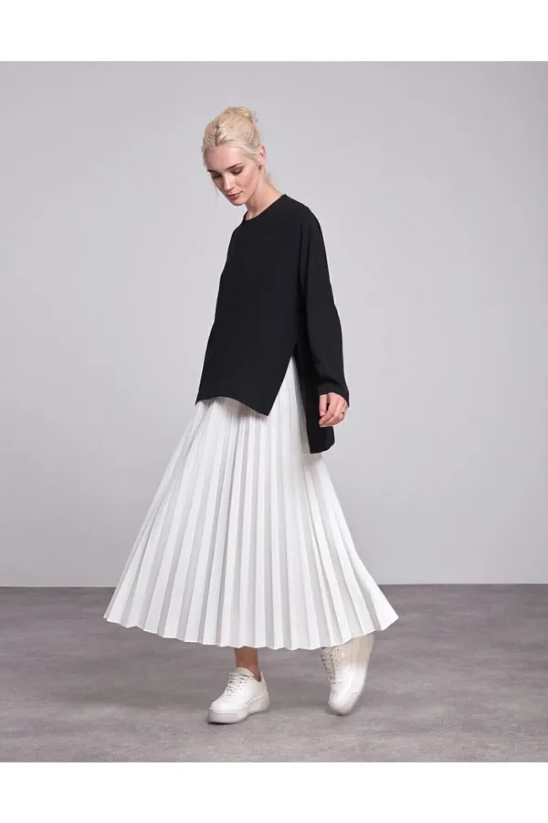 Essah Moda تنورة طويلة بيضاء مطوي المرأة
