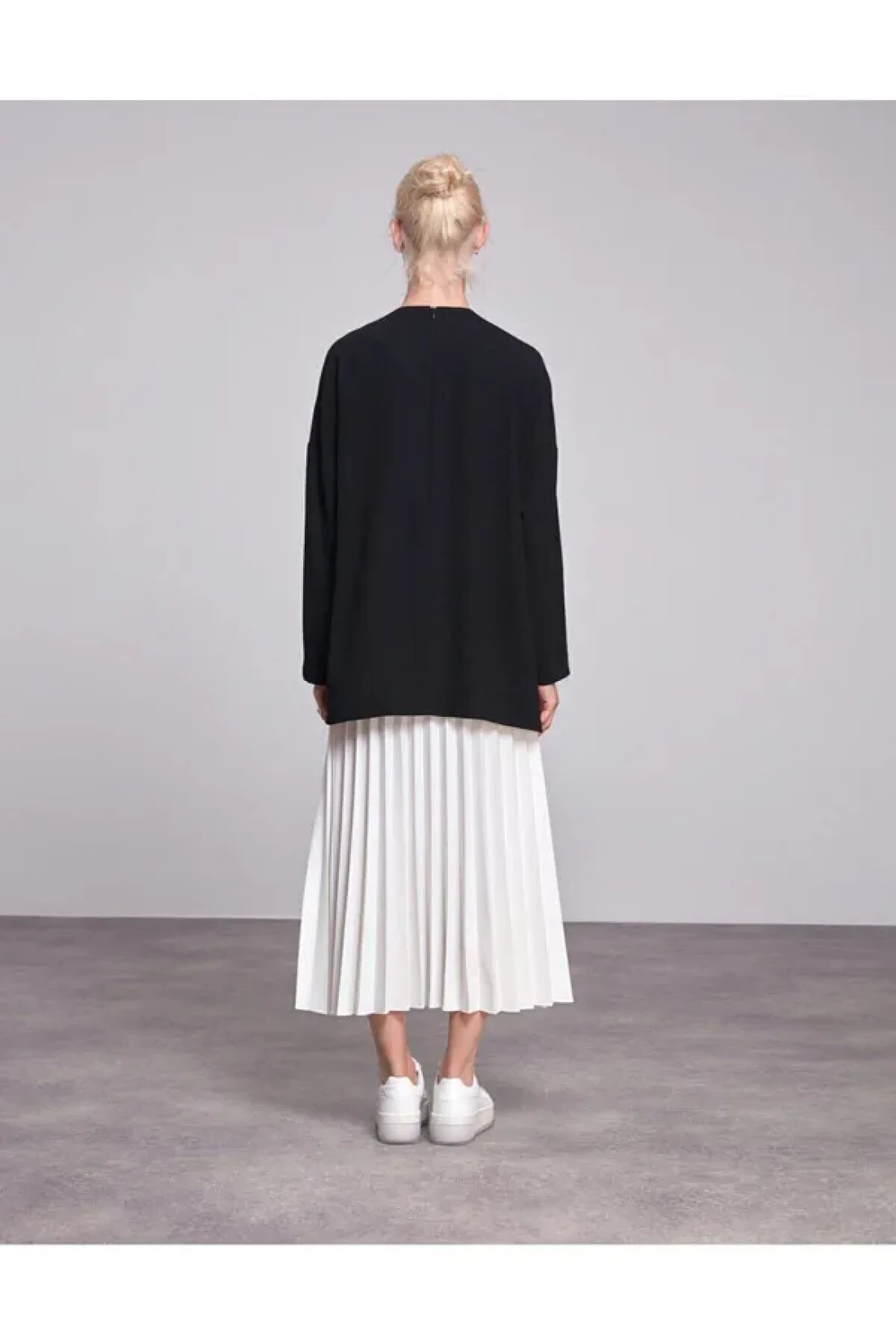 تجذب التنورة الطويلة البيضاء ذات الثنيات البيضاء الأنظار بتصميمها الأنيق الذي يجذب جميع الفئات العمرية؛ بفضل خامة البوليستر التي تتميز بها، فهي مثالية للاستخدام طويل الأمد وتوفر سهولة الصيانة؛ بينما تخلق أسلوباً بسيطاً وأنيقاً بنقشها البسيط والأنيق، كما يوفر قماشها المنسوج تجربة مريحة؛ مناسبة للارتداء اليومي، هذه التنورة هي الخيار الأمثل للباحثين عن الراحة والأناقة معاً؛ بفضل طولها الطويل، يمكن تفضيلها بسهولة سواء في المناسبات اليومية أو الخاصة؛ تتناغم بسهولة مع مختلف التنسيقات