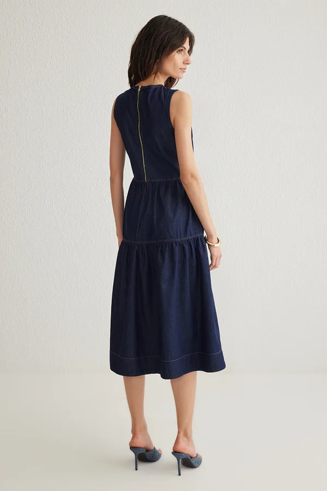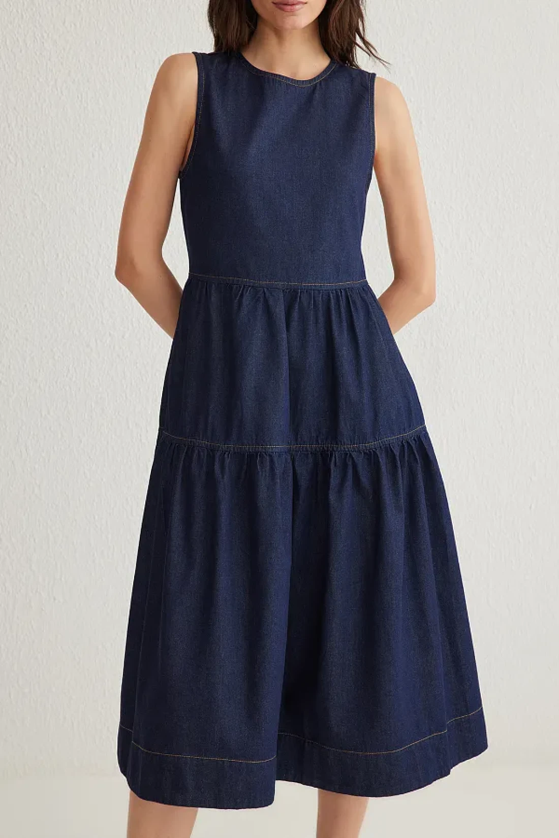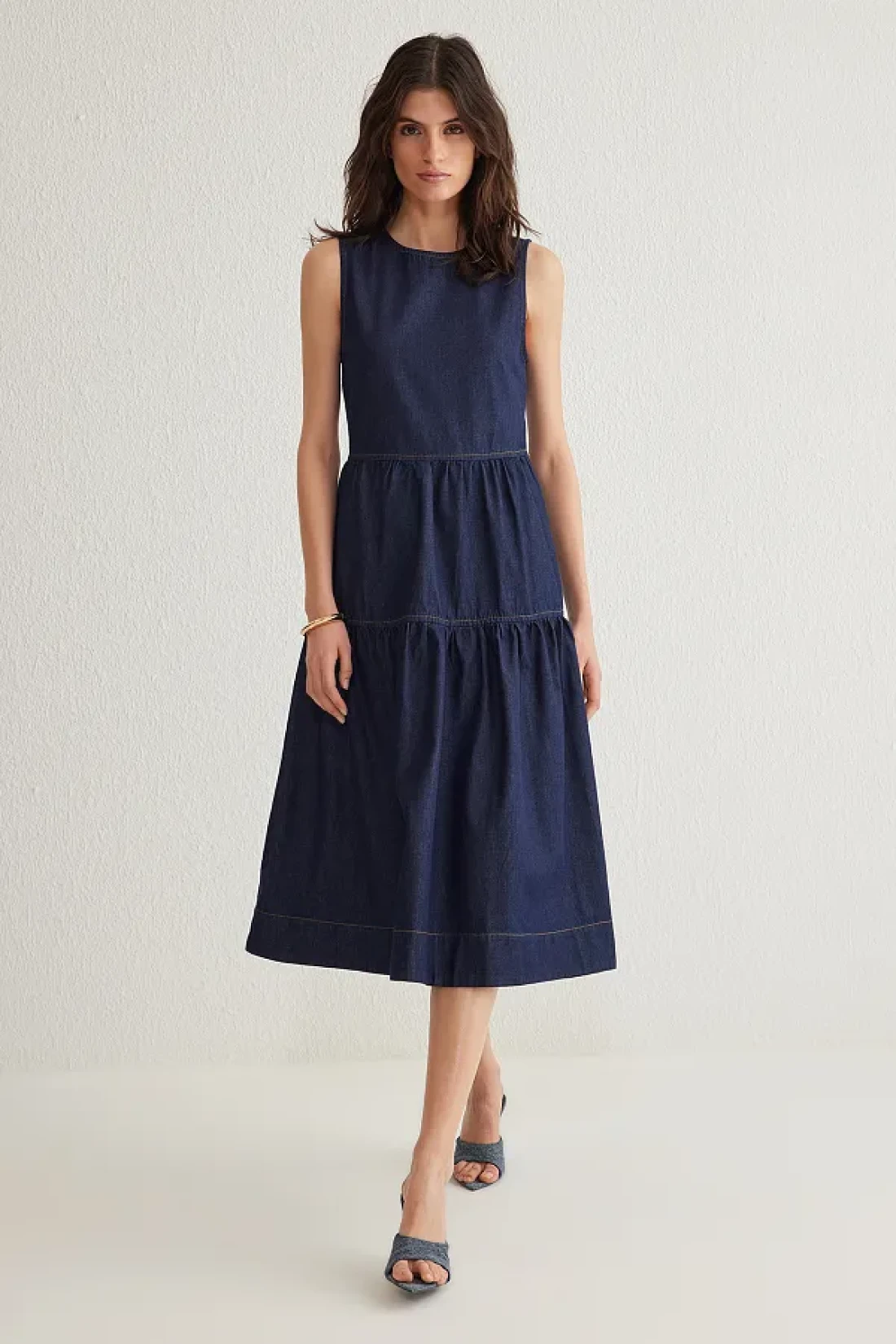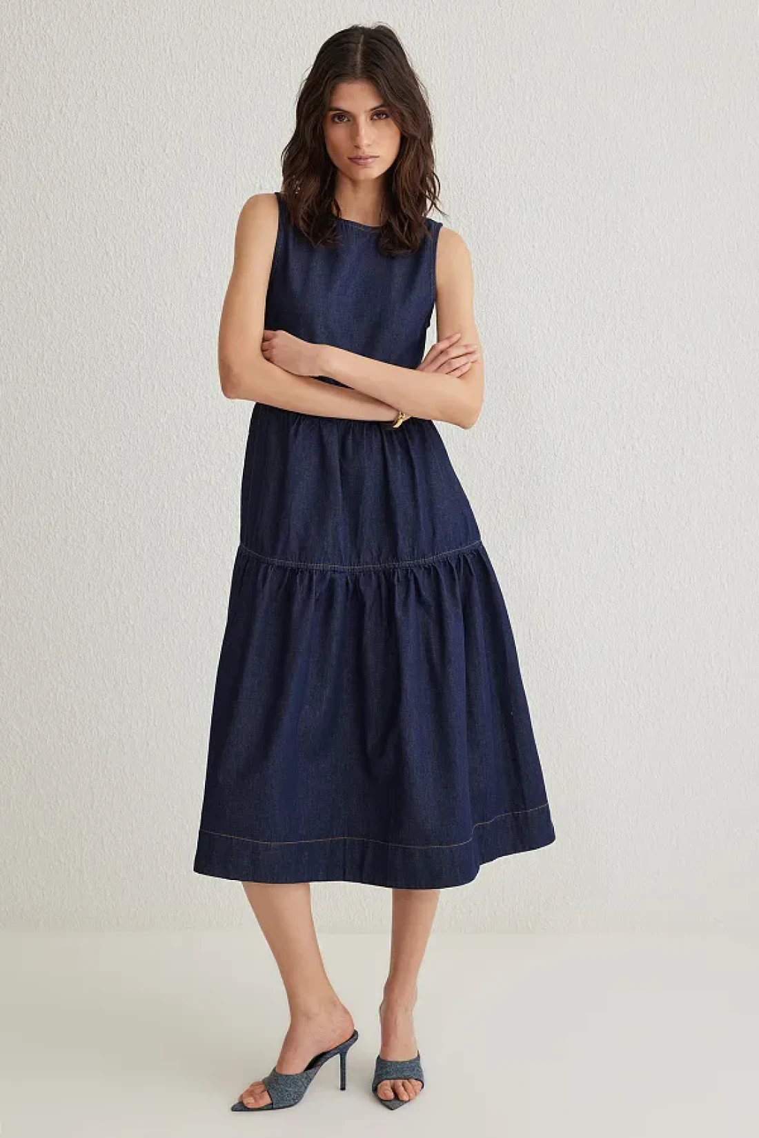 Collection فستان من الدنيم متوسط الطول باللون الأزرق الداكن TWOSS25EL00007