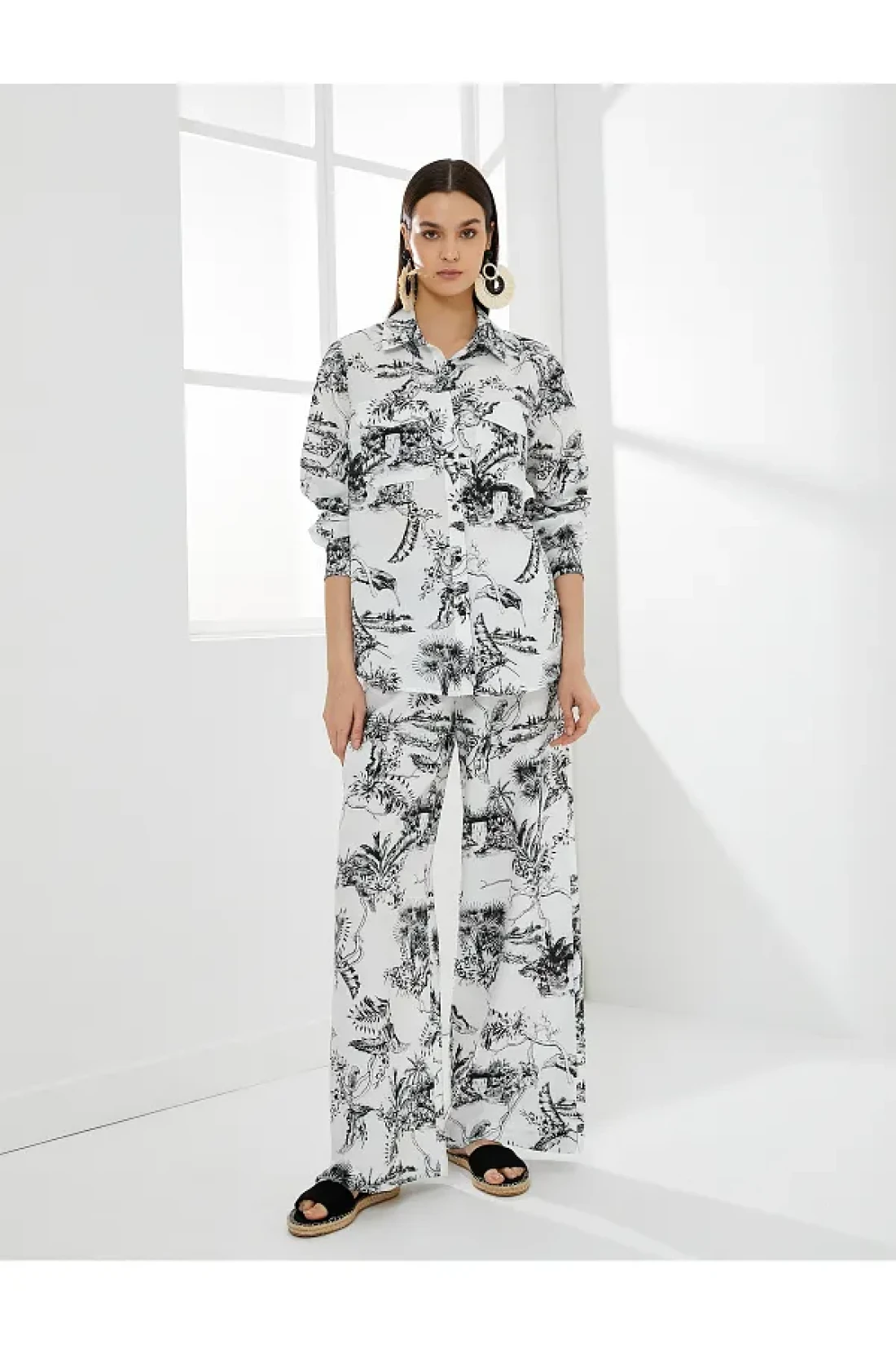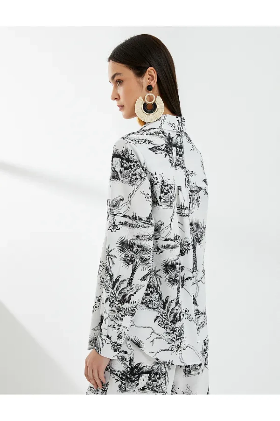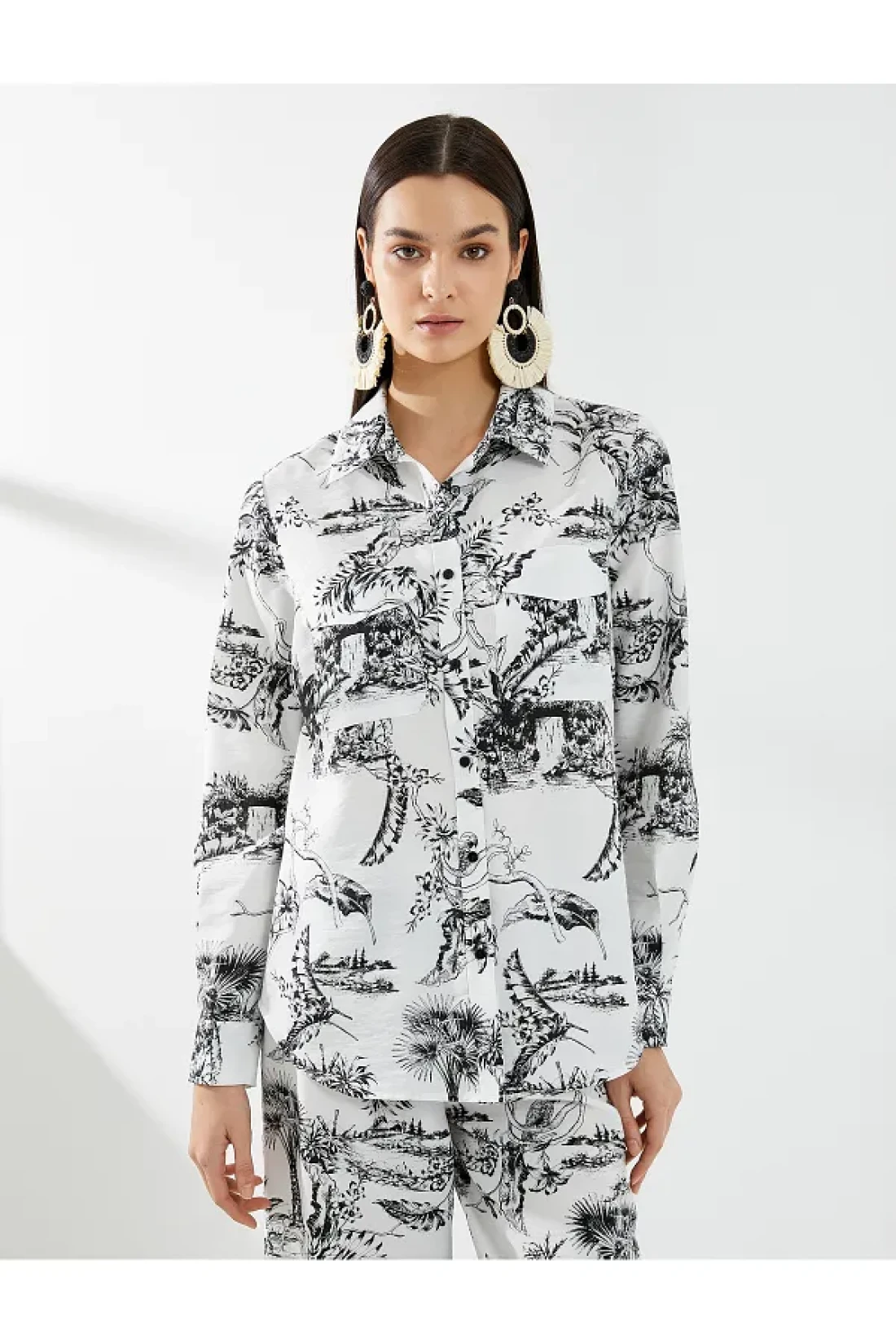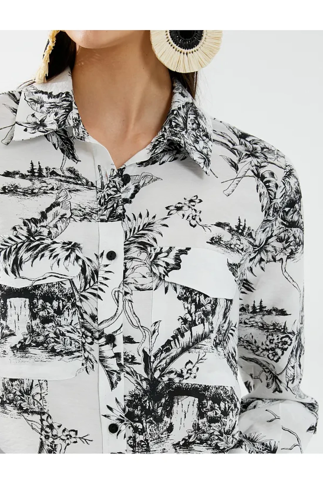 Koton قميص بأكمام طويلة وغطاء وجيب وأزرار من الفيسكوز