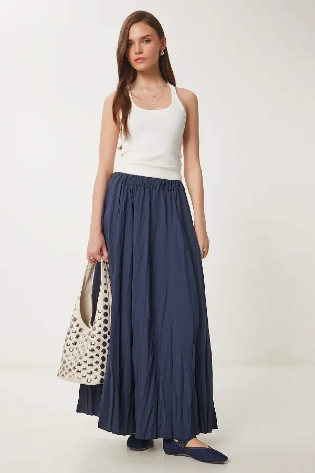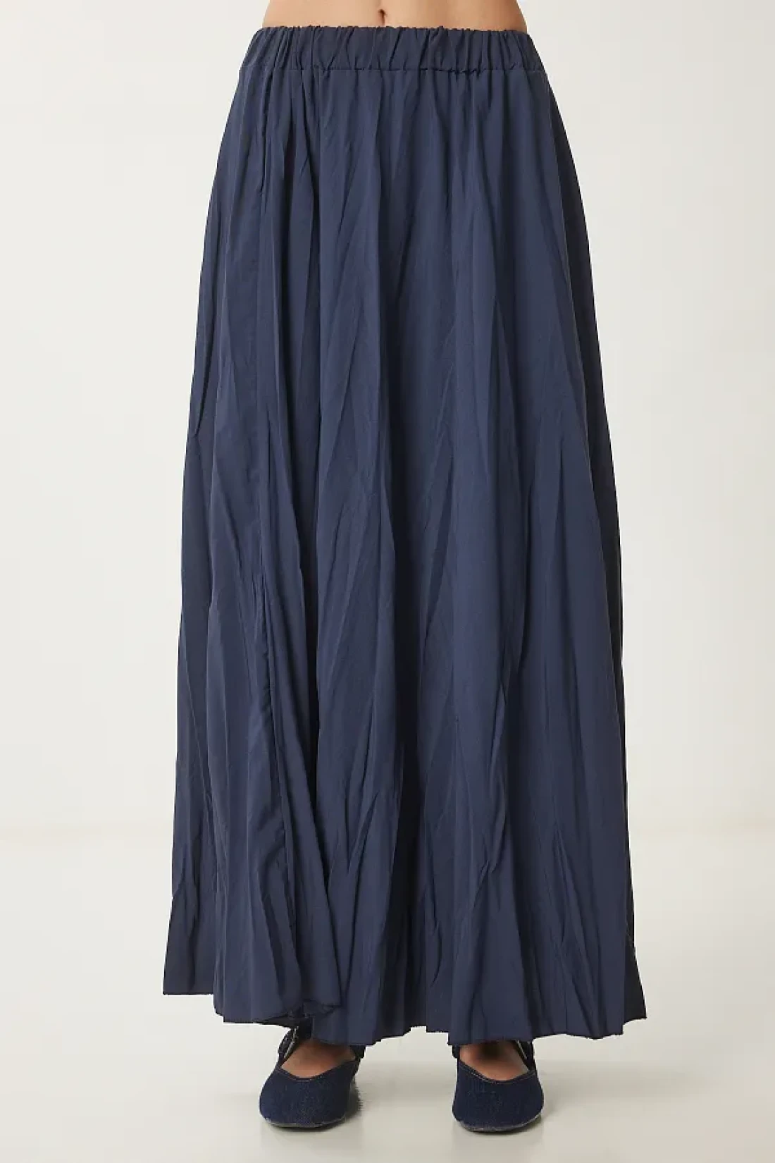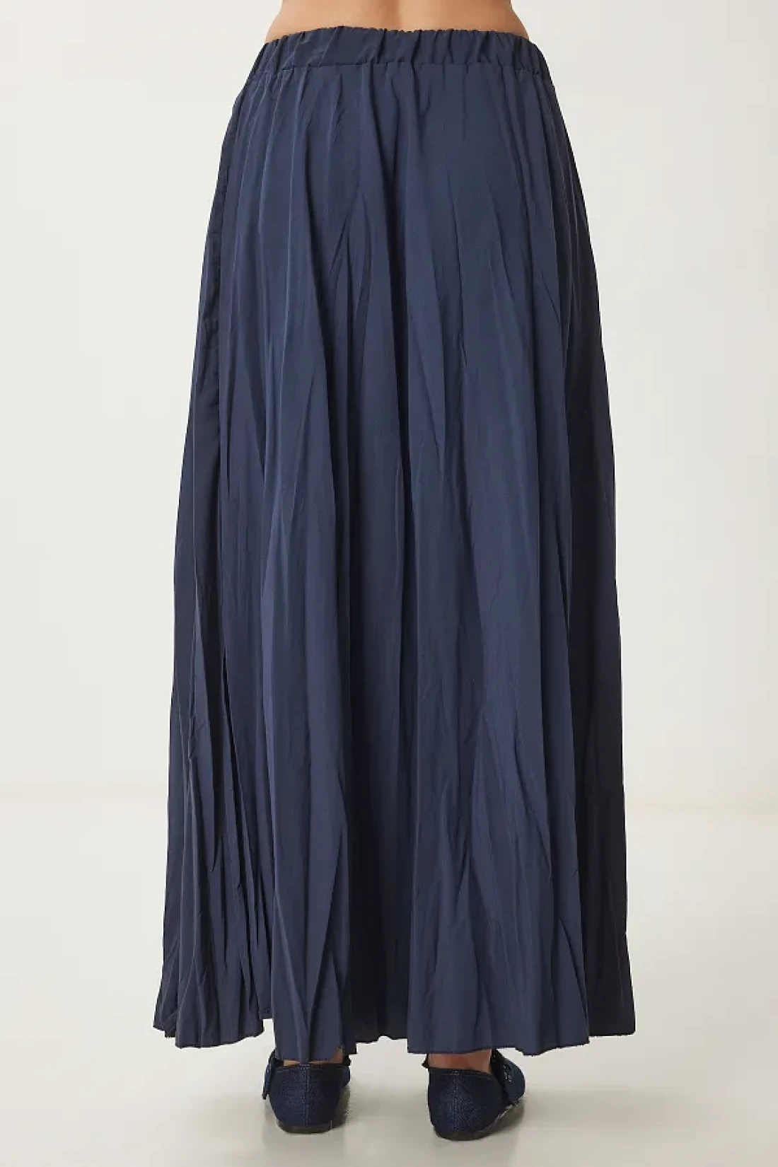 Happiness İstanbul تنورة نسائية صيفية منسوجة بتأثير التجاعيد باللون الأزرق الداكن DD01347