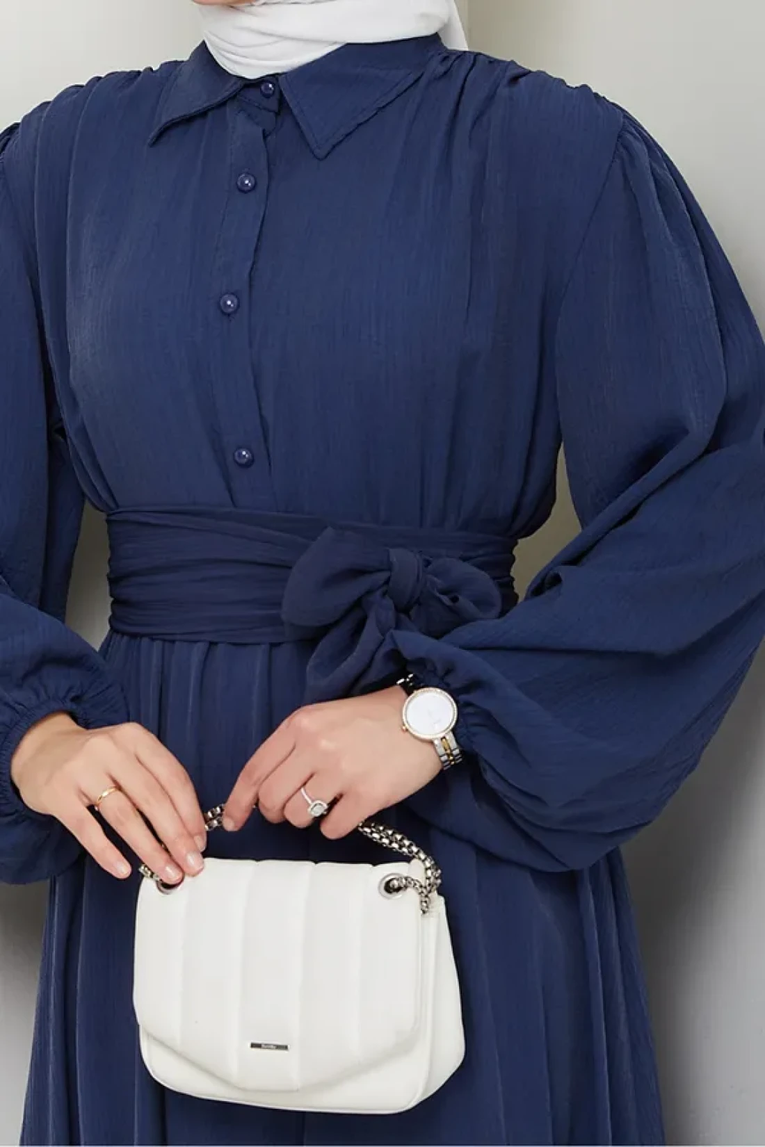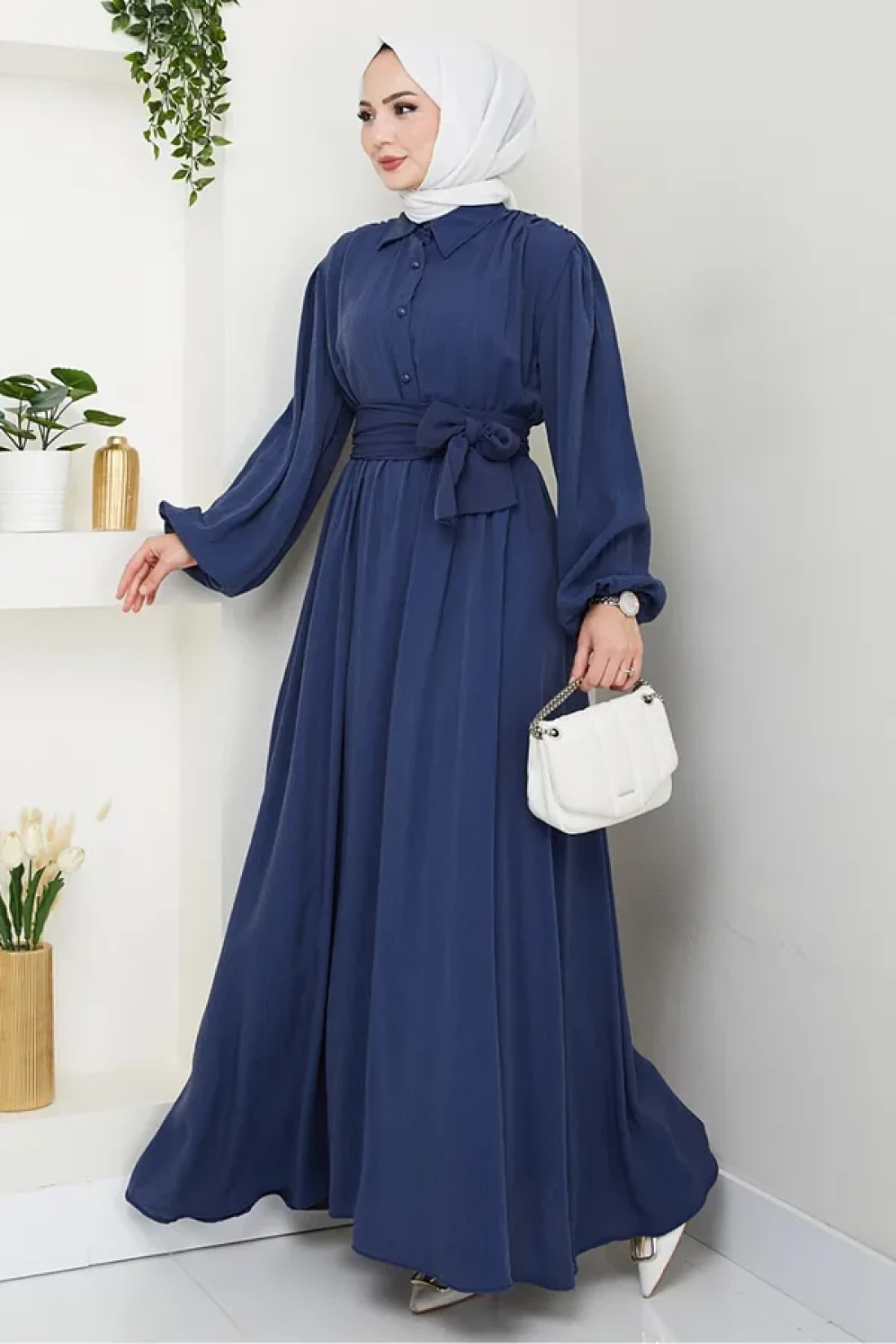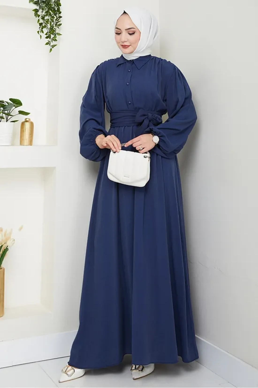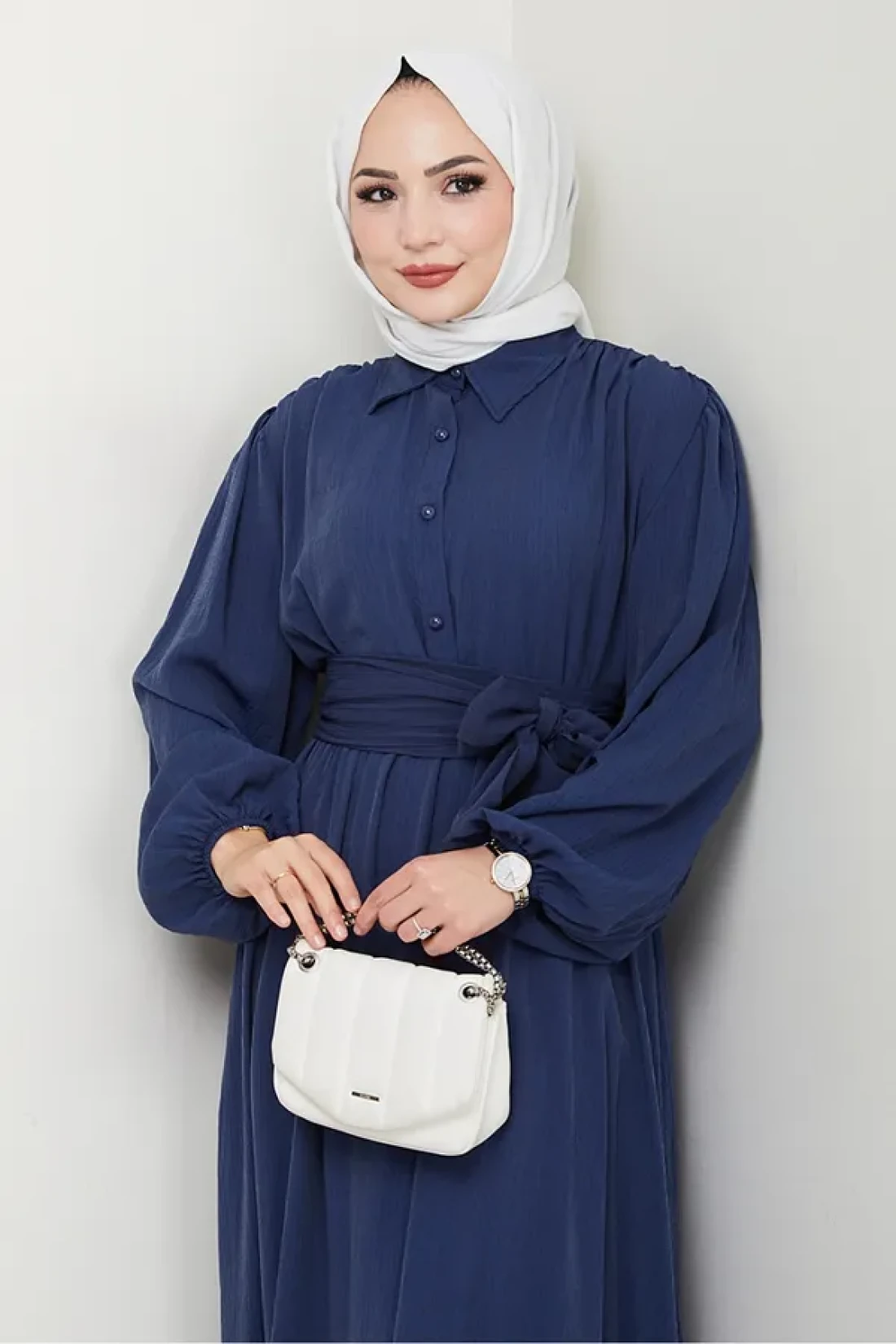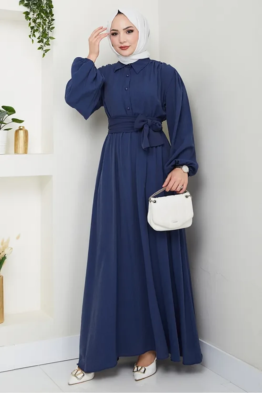 Bestenur فستان بحزام من Alser 1468 - أزرق داكن