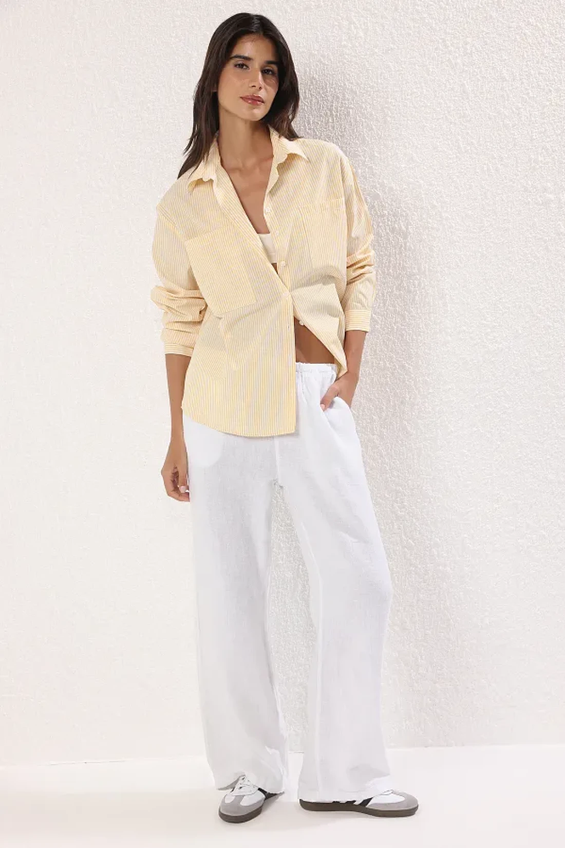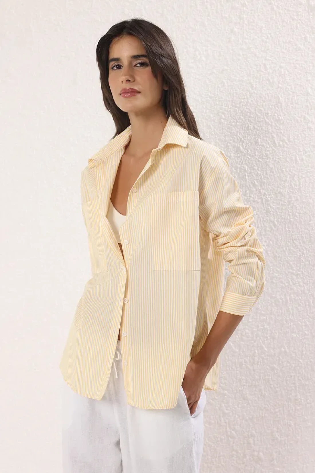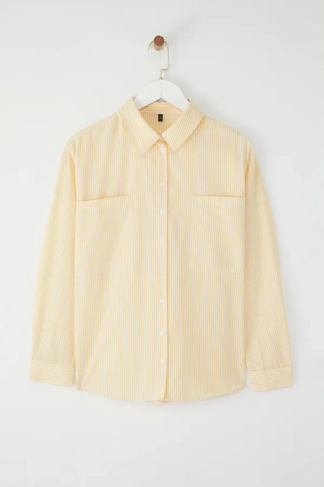 Collection قميص منسوج كبير الحجم مخطط باللون الأصفر TWOAW23GO00359