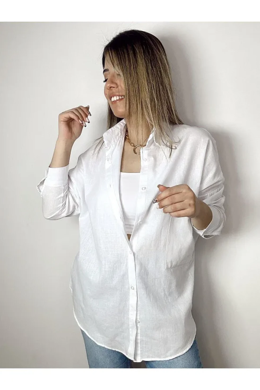 Durmaz قميص نسائي كتان كبير الحجم للموسم الجديد - صيفي