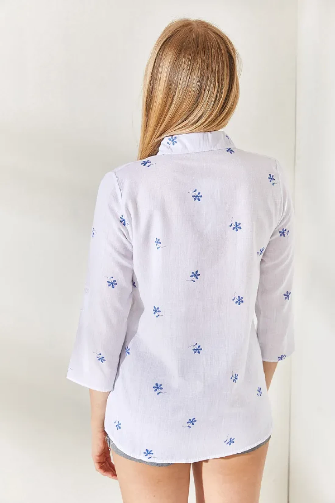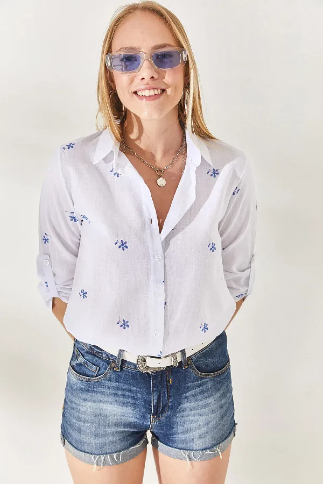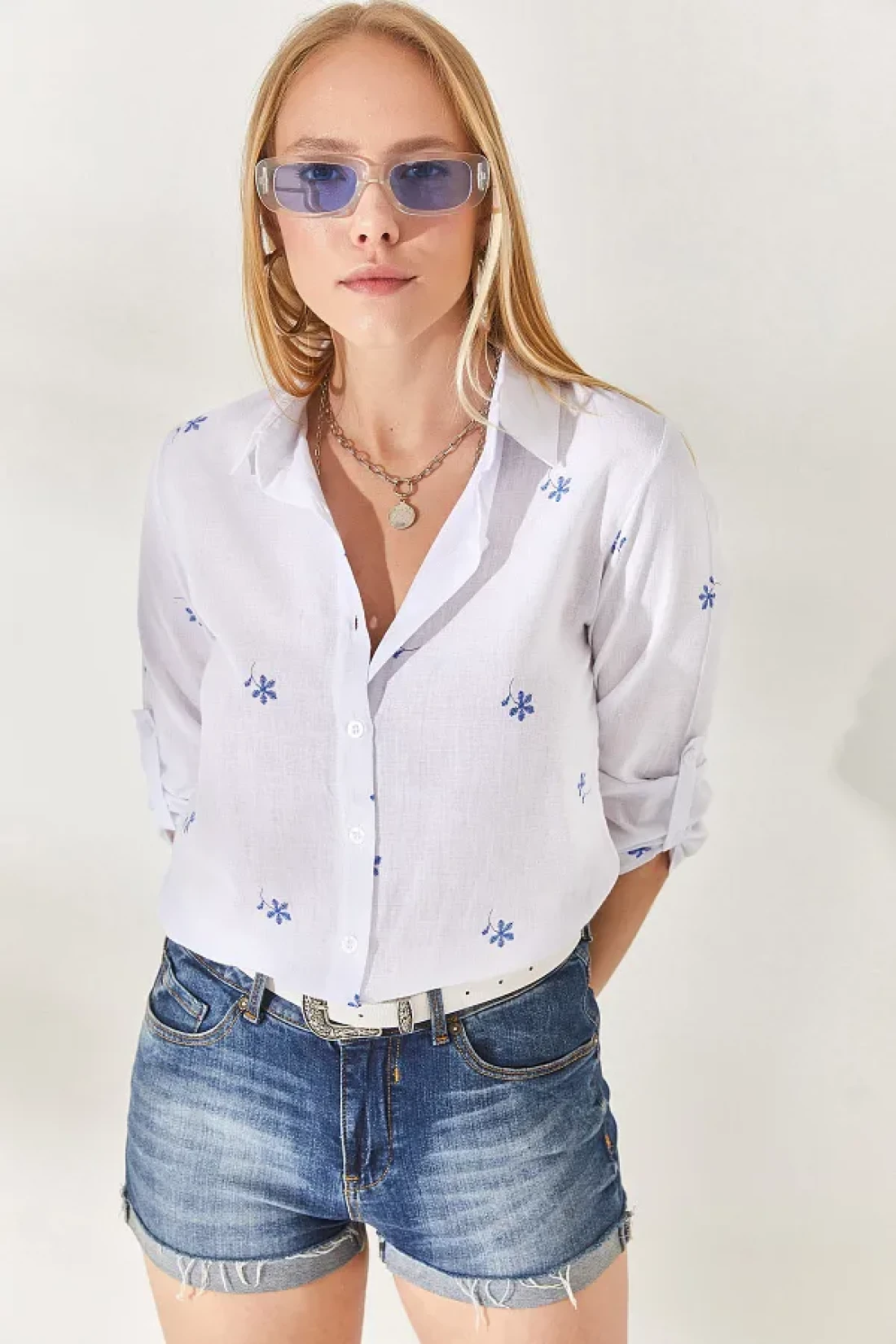 Olalook قميص كتان بأكمام مطوية باللون الأزرق الداكن من Little Ecru GML-19000825