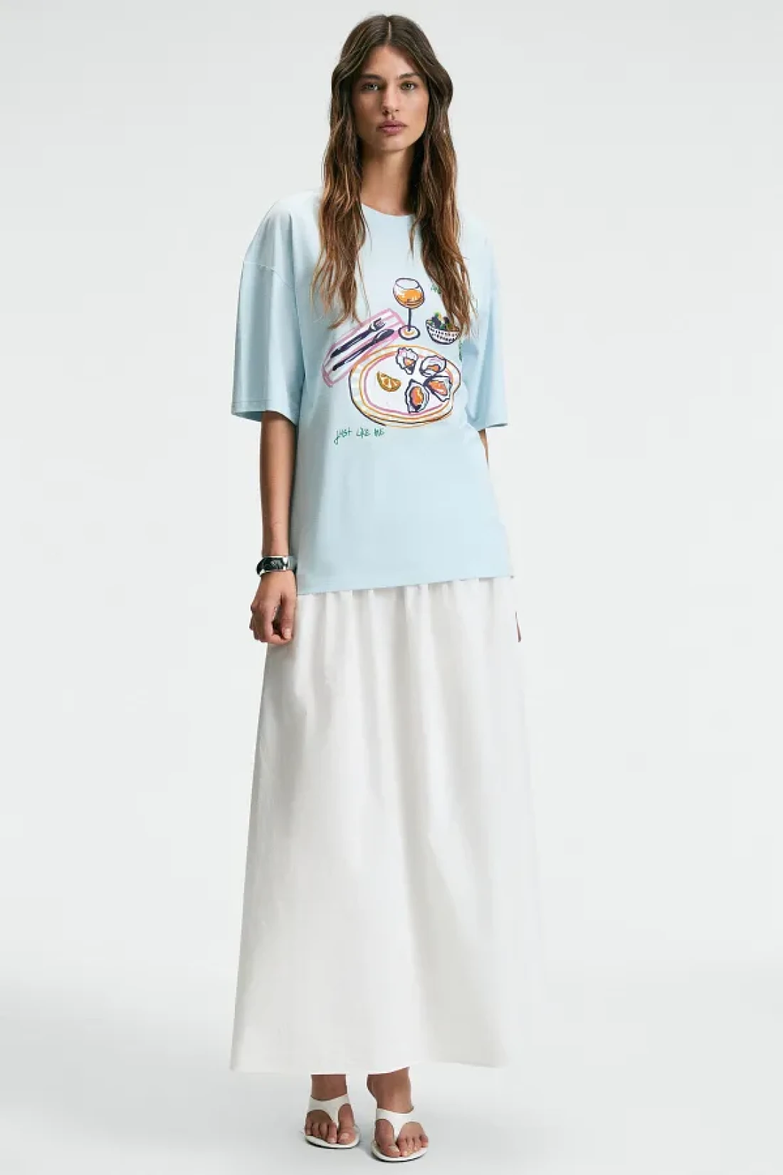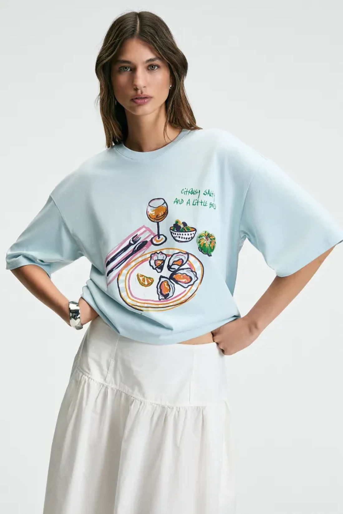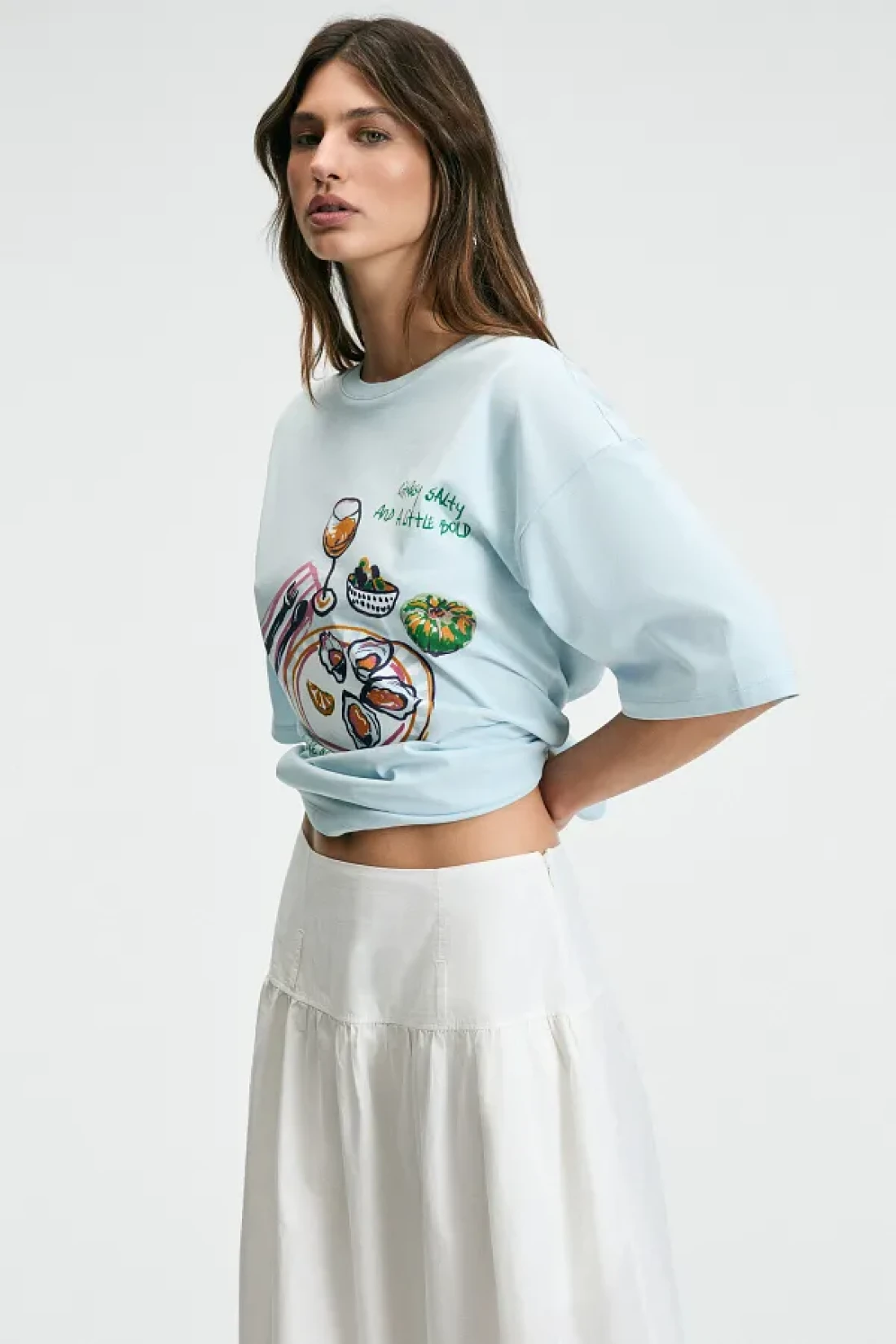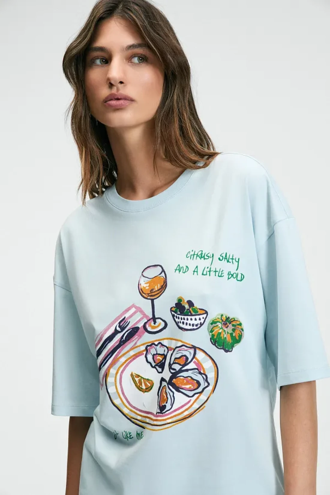 GRIMELANGE تي شيرت نسائي من NITZA مصنوع من القطن بنسبة 100% برقبة دائرية كبيرة الحجم باللون الأزرق