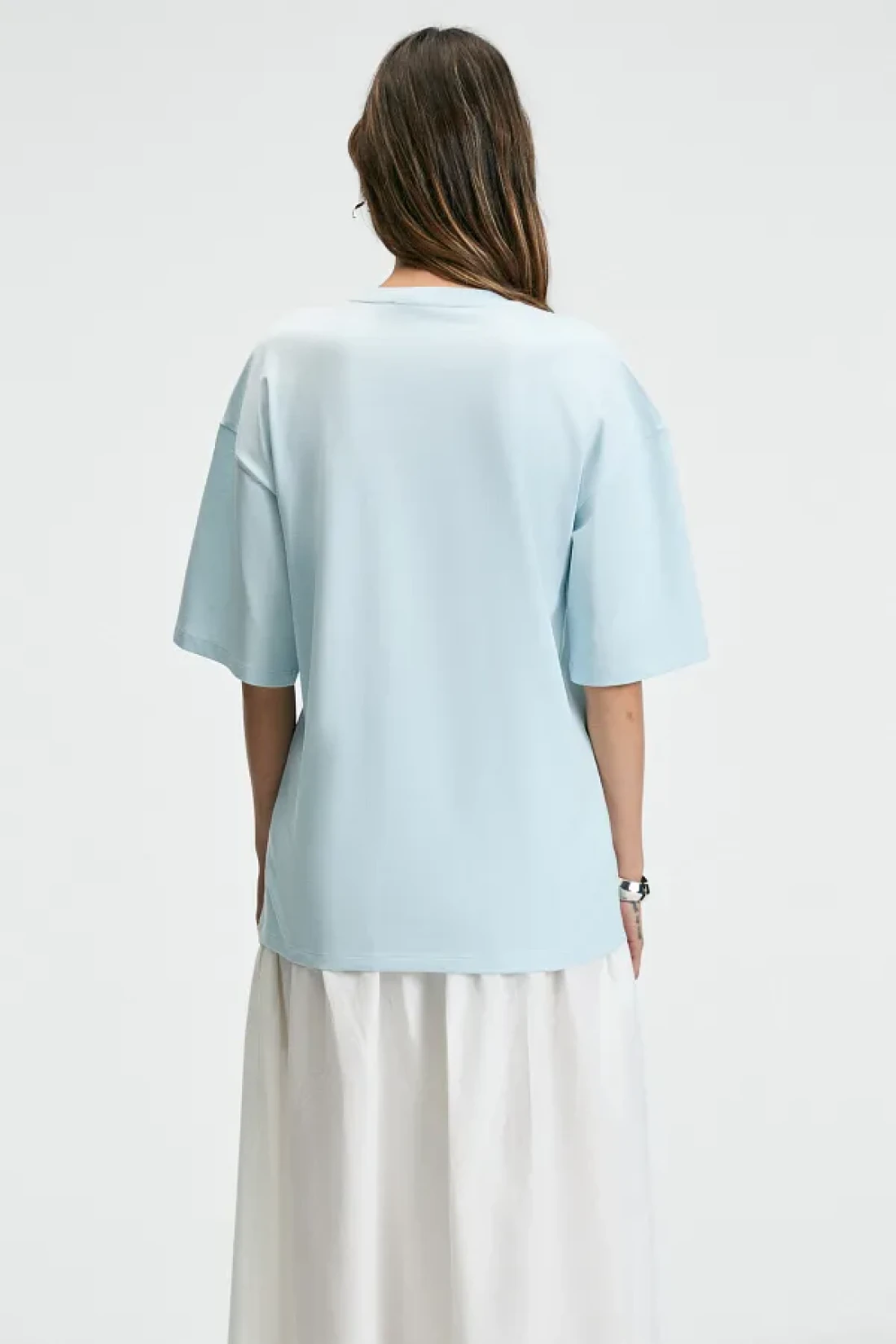 تيشيرت نسائي من نيتزا 100% قطن أزرق برقبة دائرية رقم قصة فضفاضة