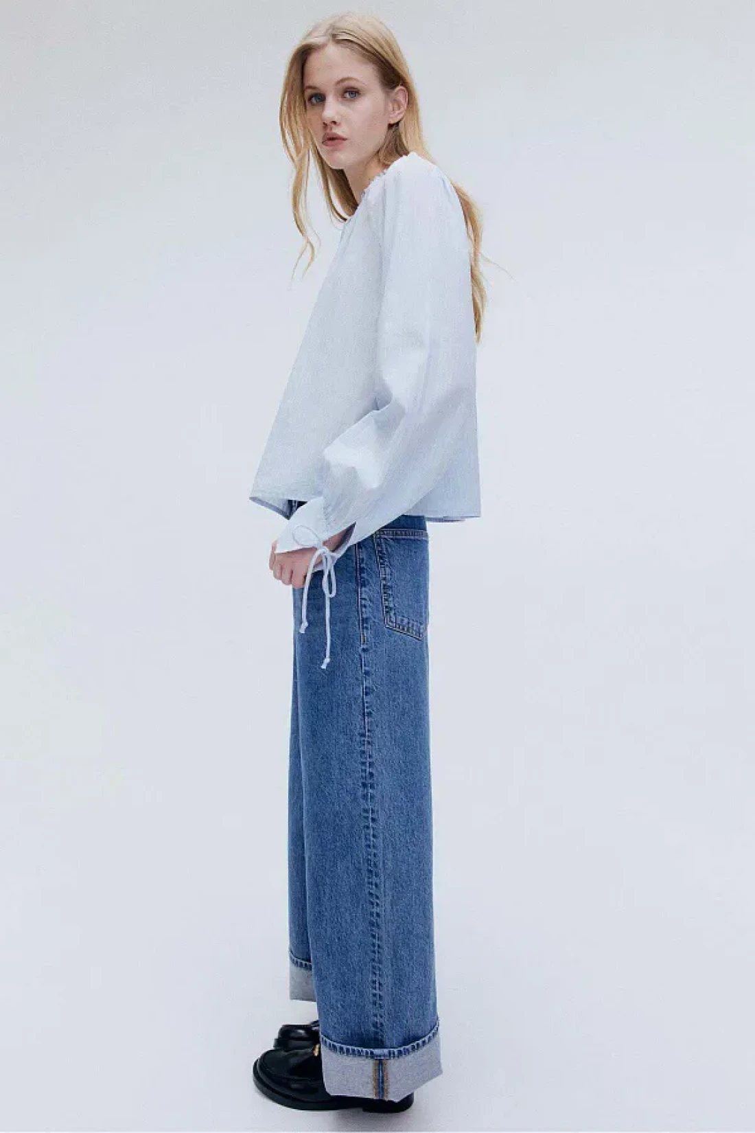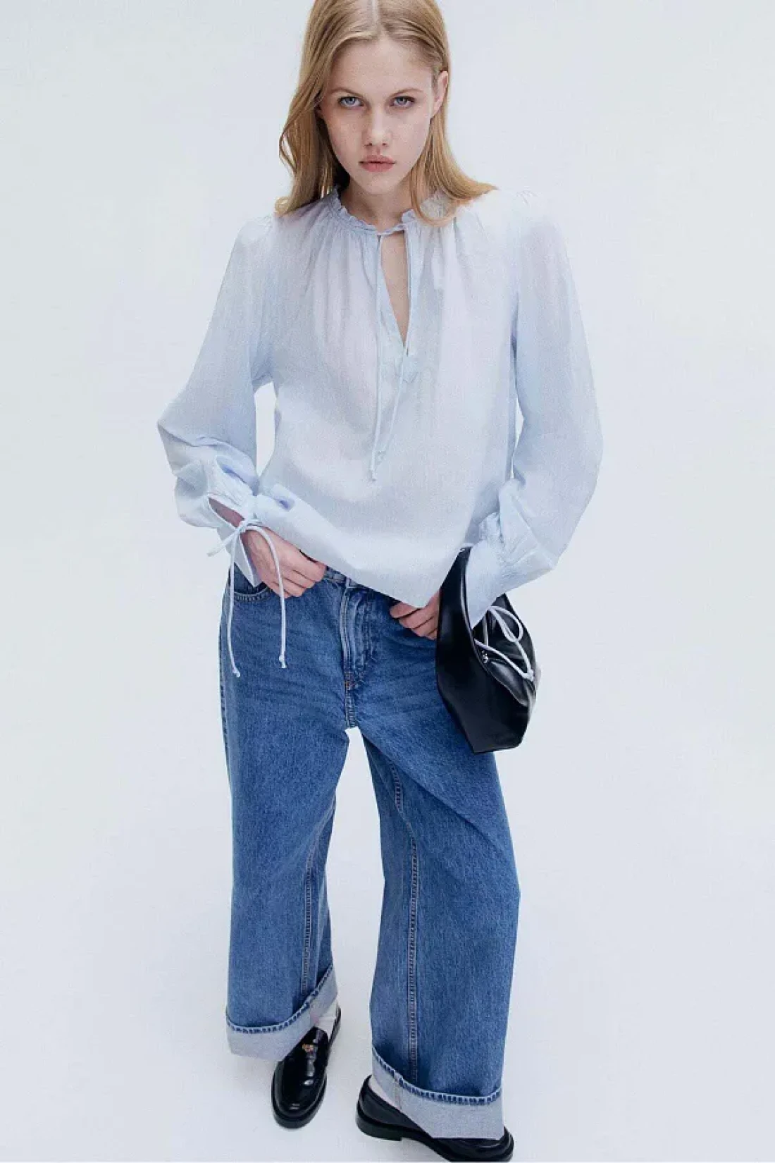 H&M بلوزة قطنية بتفاصيل ربطة عنق
