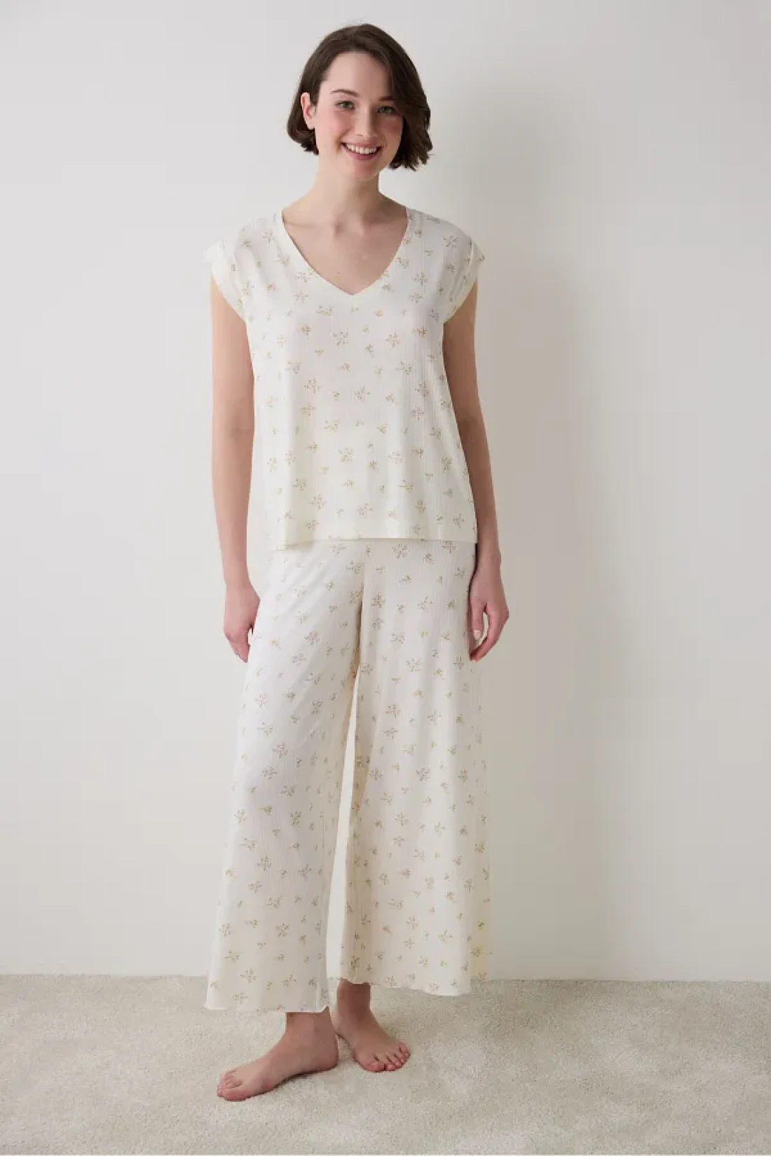 الجسم: S / 36 الطول: 177 سم ، الصدر: 82 سم ، الخصر: 58 سم الورك: 89 سم ؛ بنطلون بلوم المطبوع هو قطعة سفلية تكمل أسلوبك بأناقة في أكثر لحظاتك المنزلية راحة.