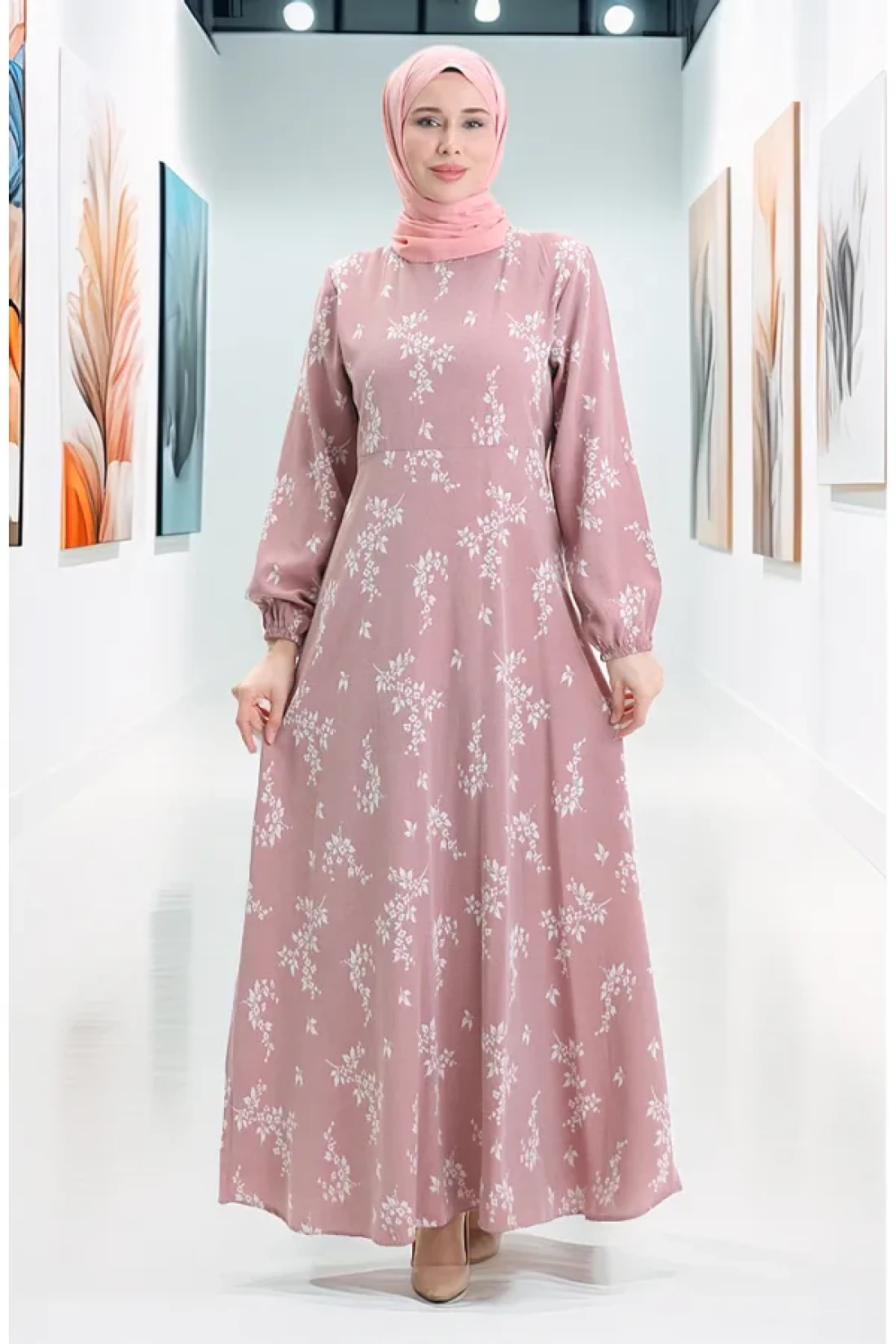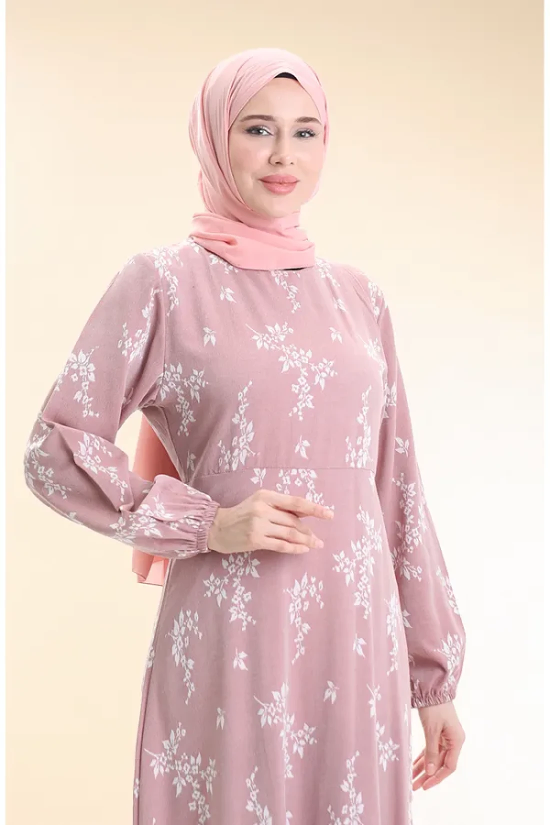 فستان مرن بنمط الأكمام 2047-01 بودرة