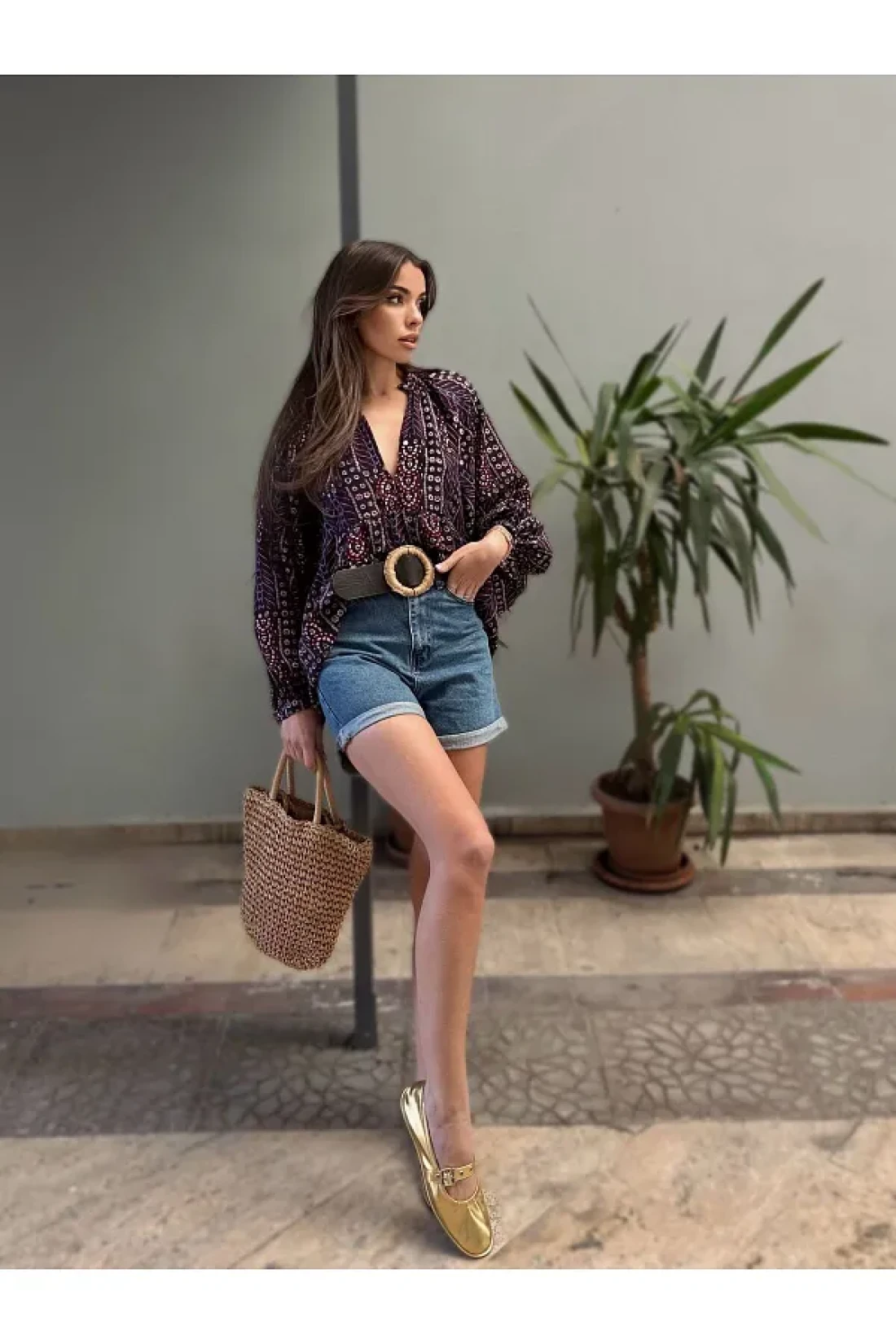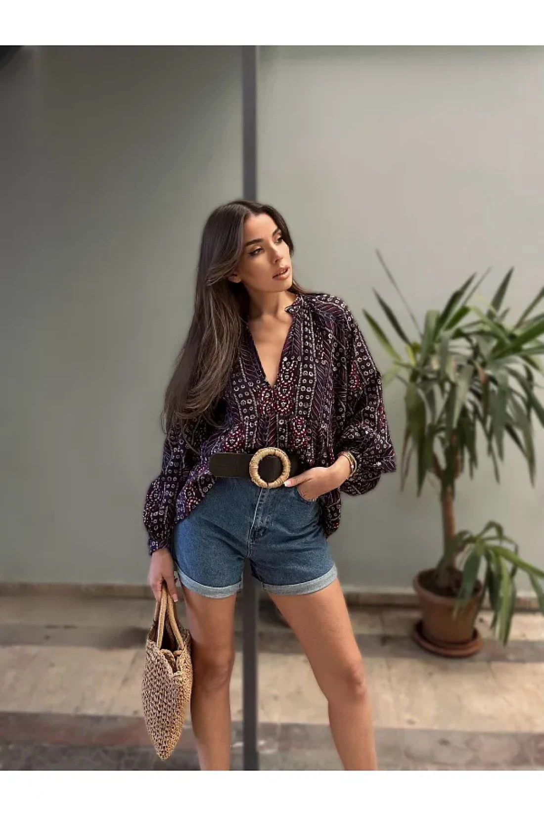 - مصنوع من قماش الشيفون، بتصميم رقيق مناسب لفصلي الربيع والخريف، مما يوفر ارتداءً خفيفًا ومريحًا. يوفر إمكانية الارتداء والخلع بسهولة بفضل نمط الإغلاق بواسطة زر نصف ضغط؛ كما يعطي مظهرًا أنيقًا. بفضل خليطه من 70% بولي فيسكوز و 30% بوليستر، يوفر تجربة مريحة بفضل نسيجه الناعم مع زيادة المتانة. - بدون تفاصيل الحزام أو الحزام، يمكن بسهولة تنسيق هذه البلوزة بتصميمها البسيط مع أي إكسسوارات. مع هيكلها بدون جيوب، تبرز أسلوبًا حديثًا وبسيطًا؛ طولها الطويل مثالي لكل من البيئات اليومية والعملية.