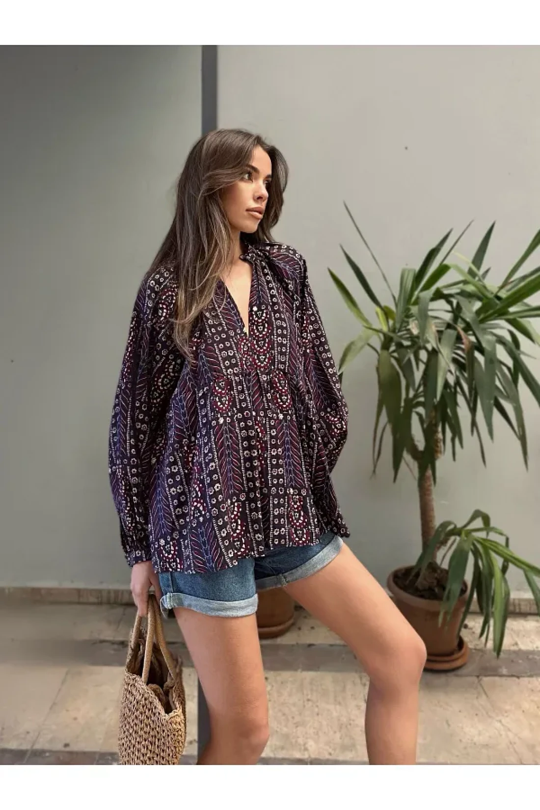 - يوفر التصميم ذو الأكمام الطويلة تغطية إضافية للطقس البارد بينما يدعم خطوطك الأنثوية بخط رقبة على شكل حرف V. - هذه البلوزة، التي يمكنك اختيارها بسهولة في بيئة العمل، هي الخيار الأمثل لإكمال مظهرك الاحترافي.