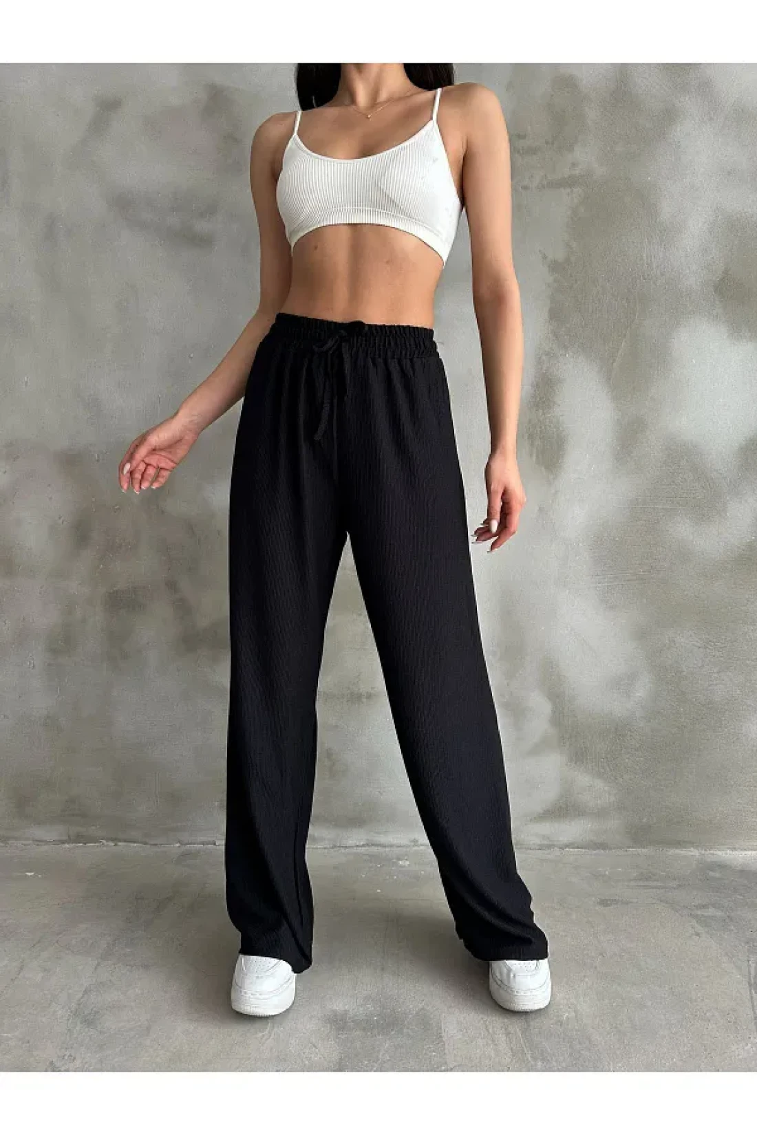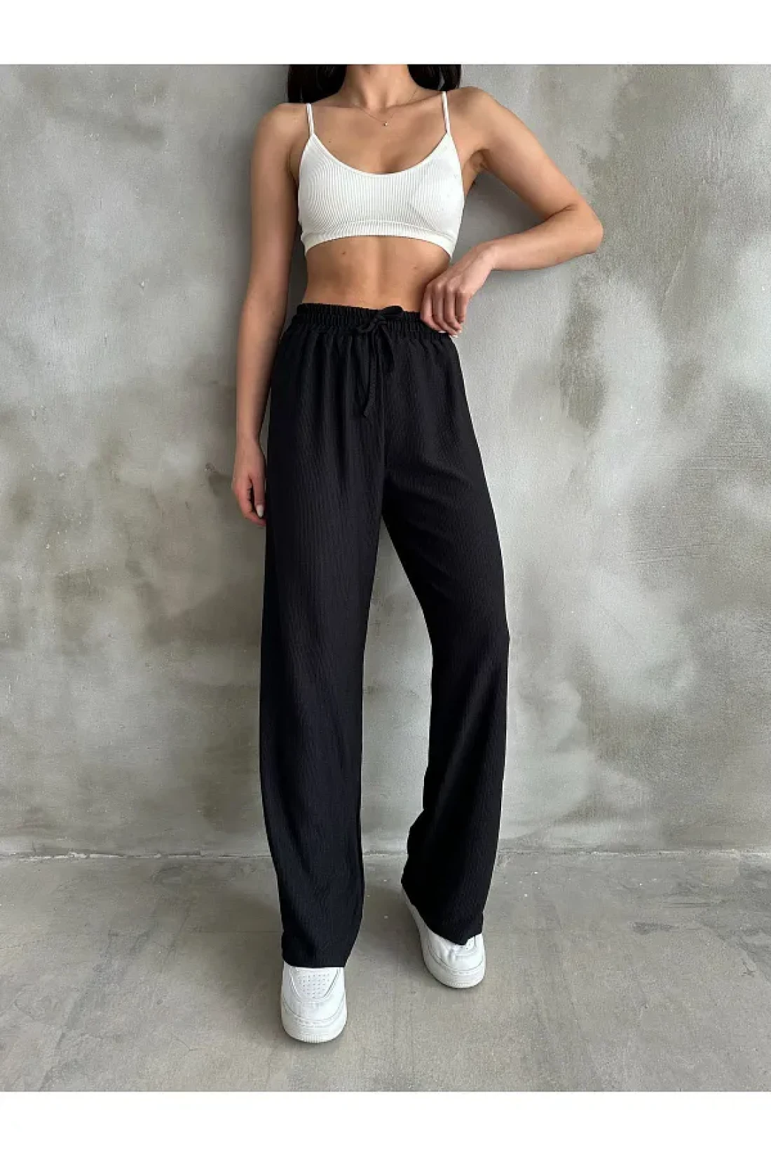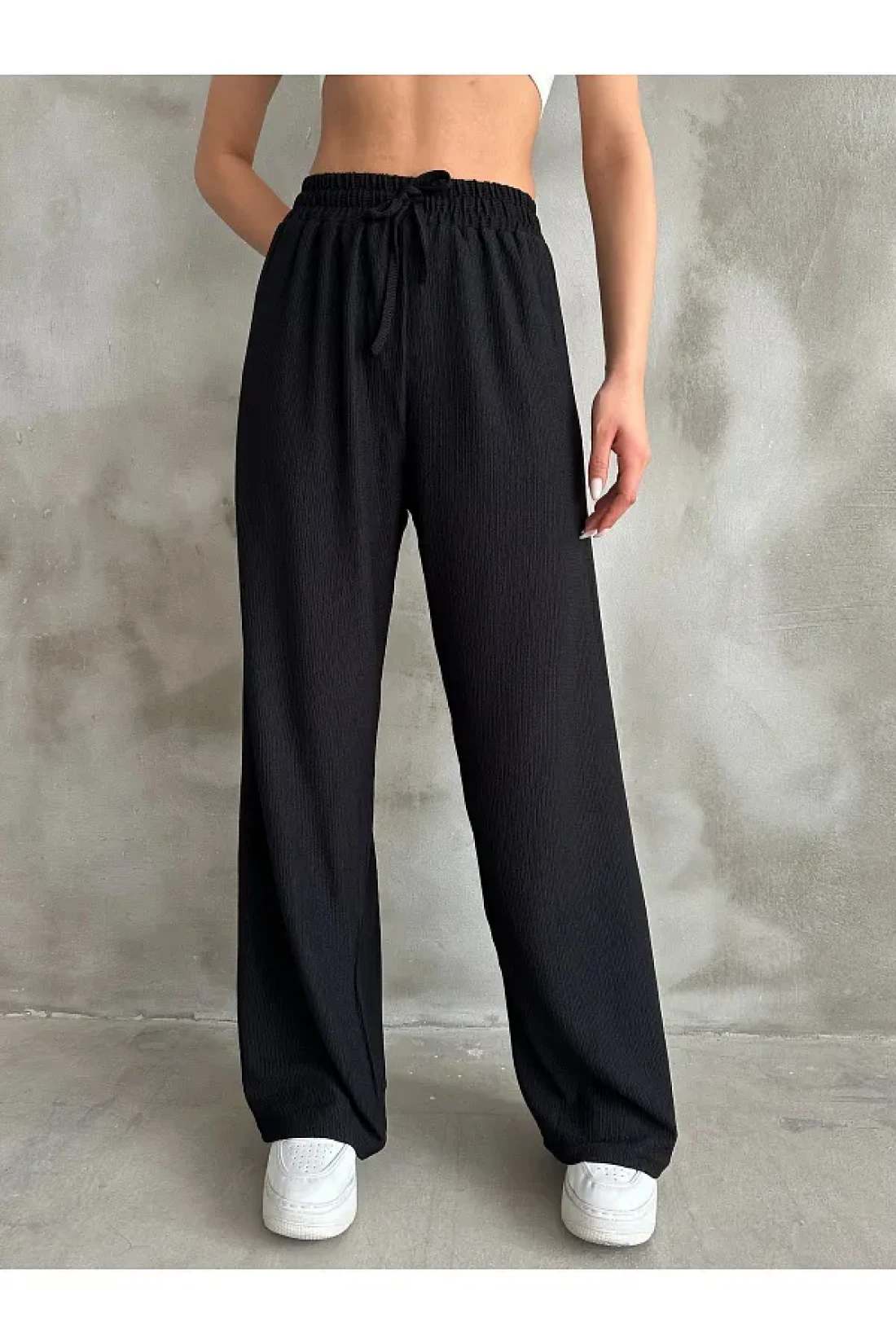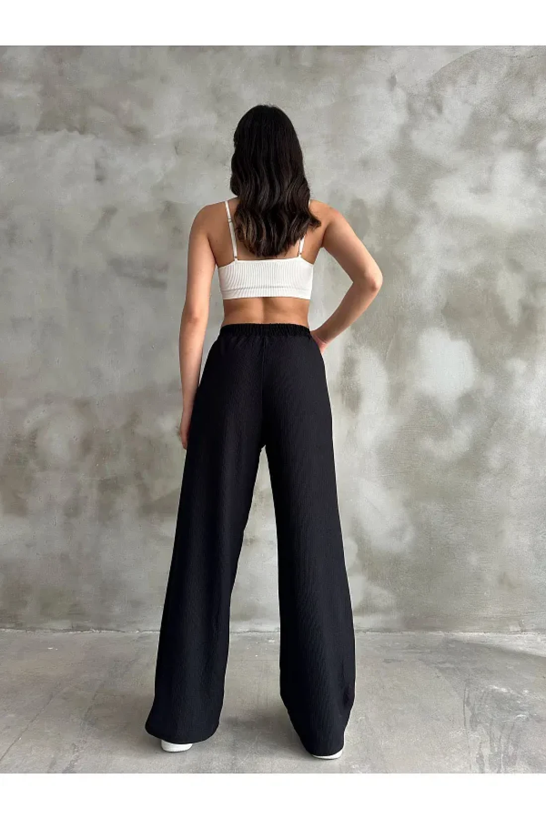 Giyimsel بنطلون بالازو بخصر مطاطي أسود للسيدات
