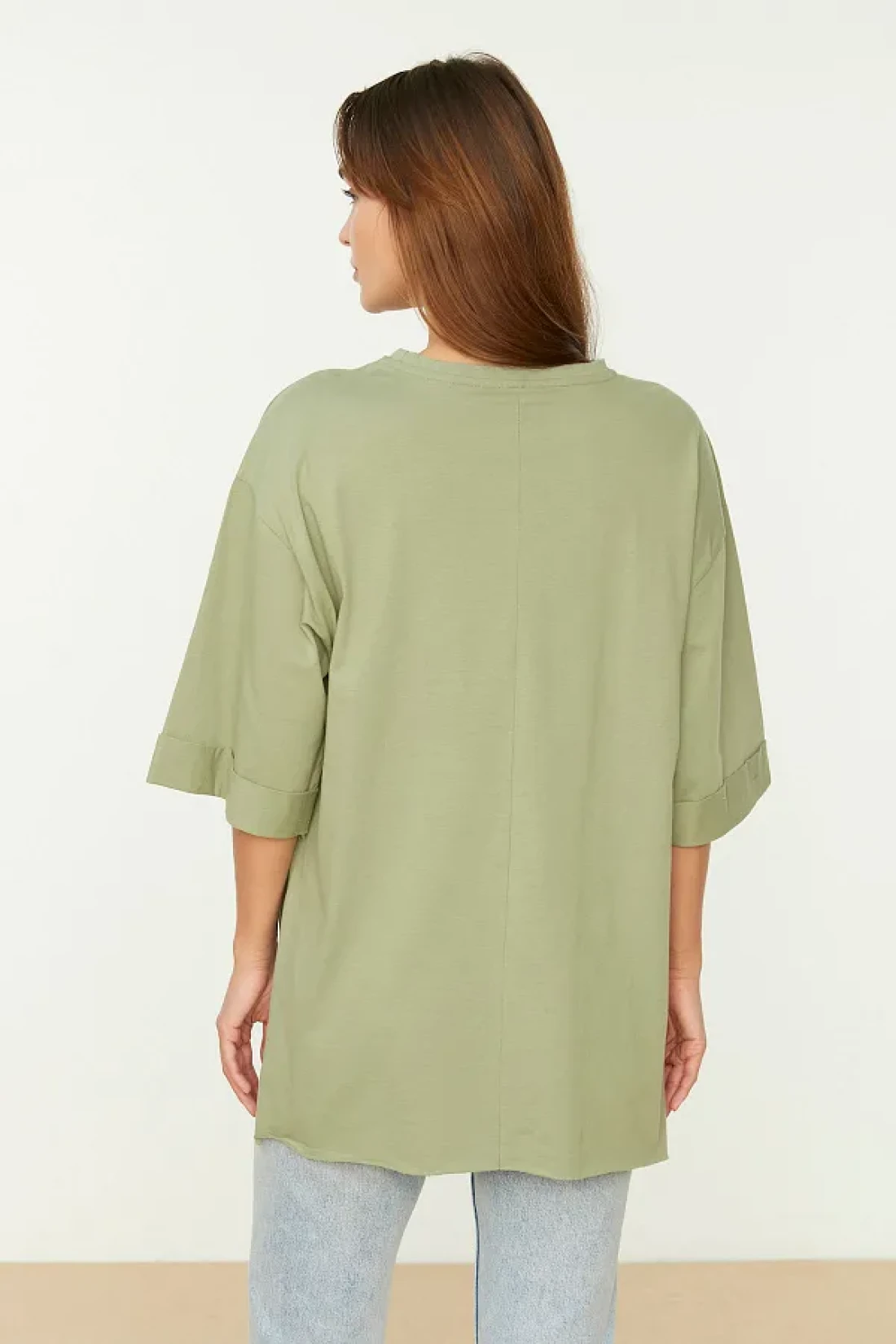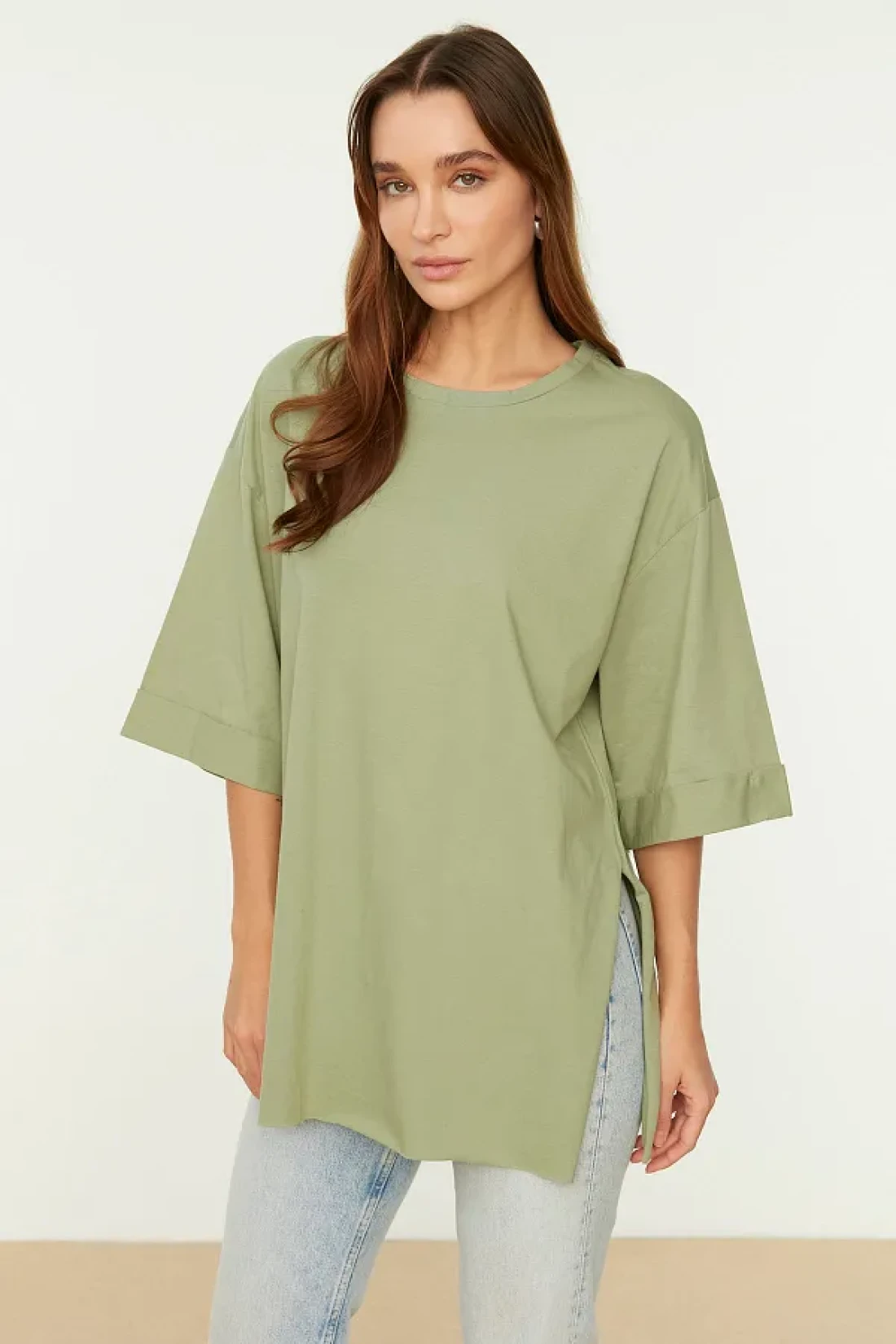 Collection تي شيرت محبوك غير متماثل بأكمام مزدوجة وأكمام واسعة TWOSS20TS0828