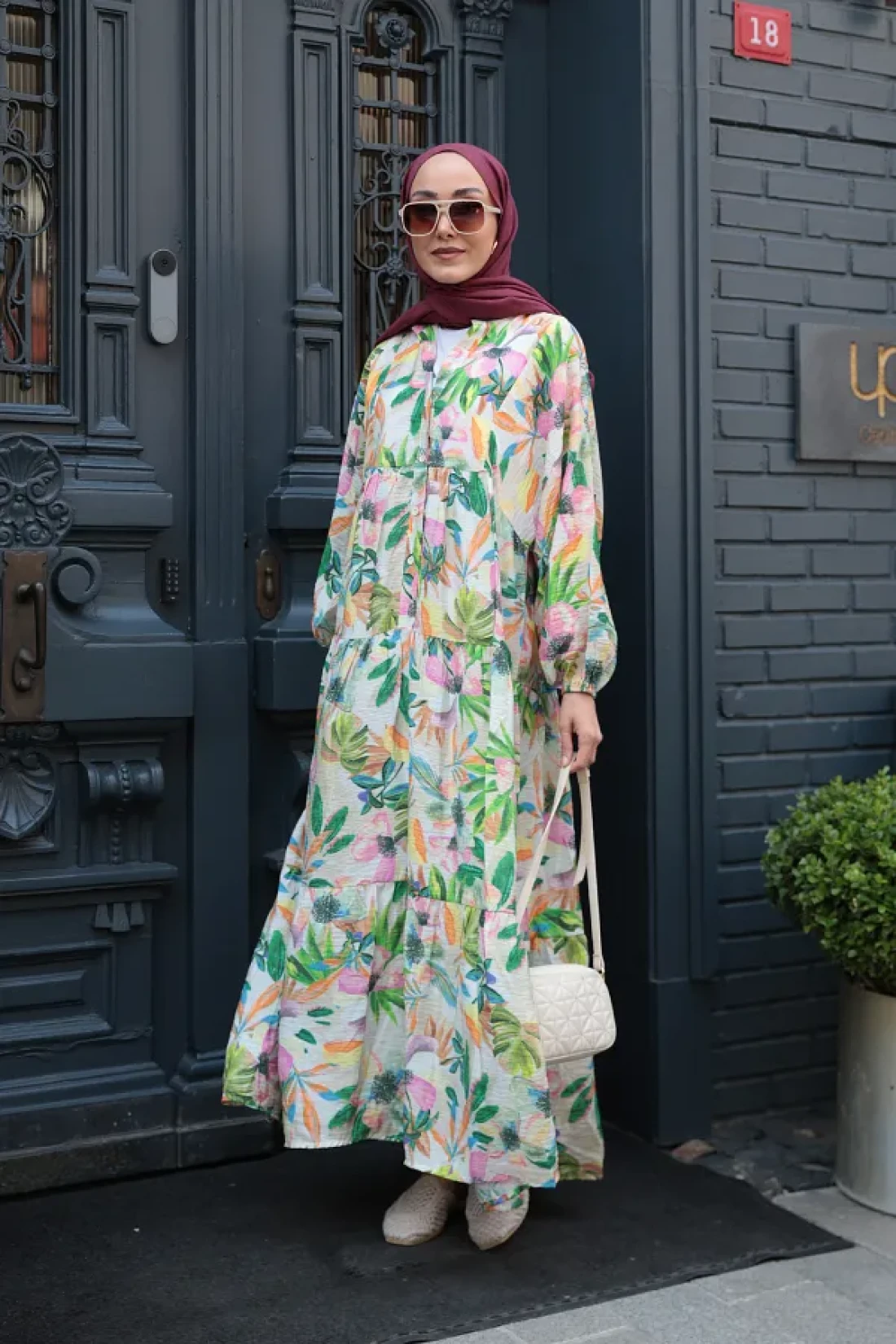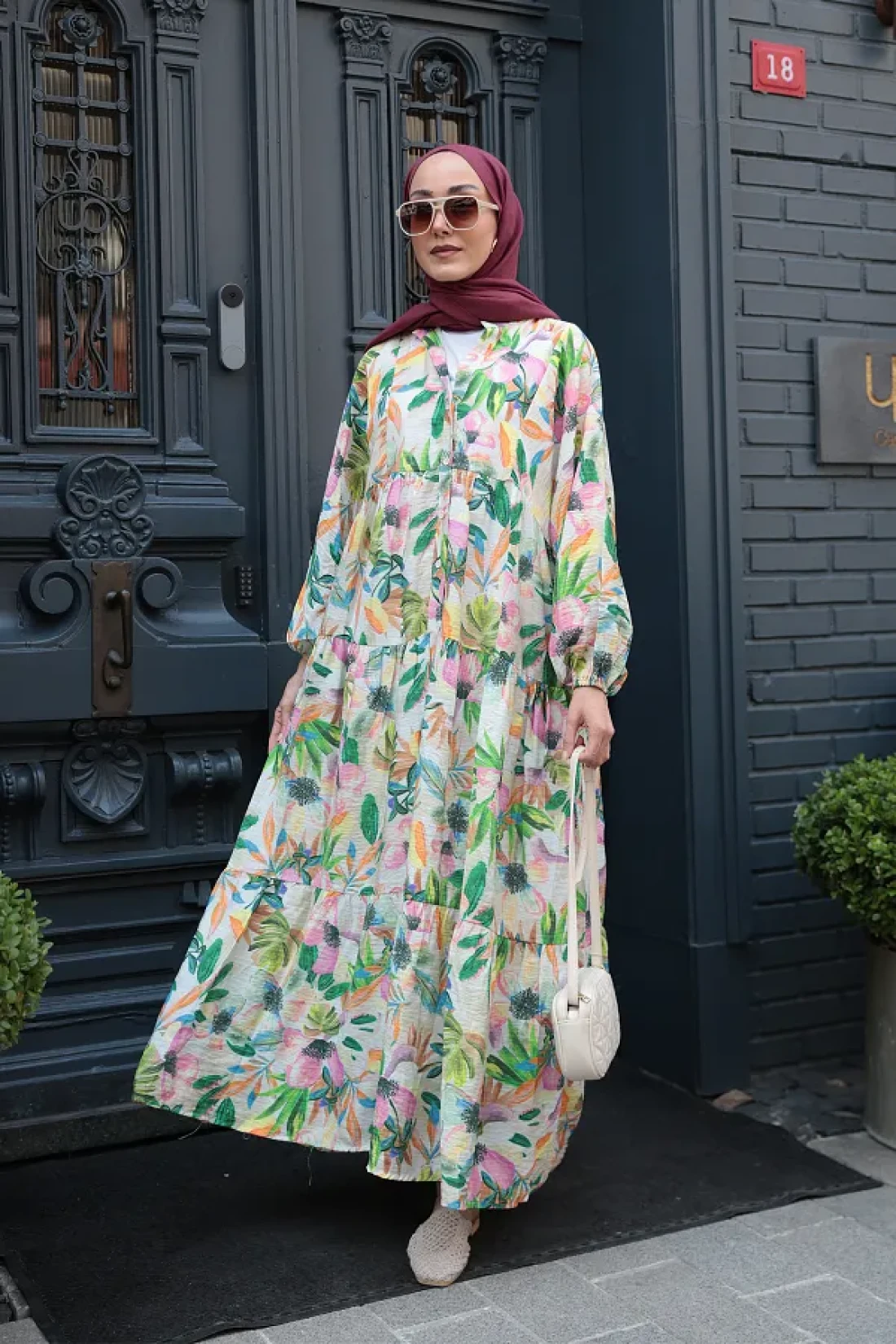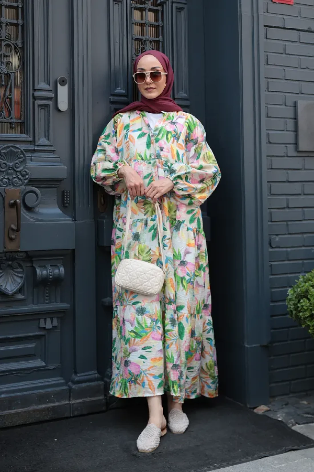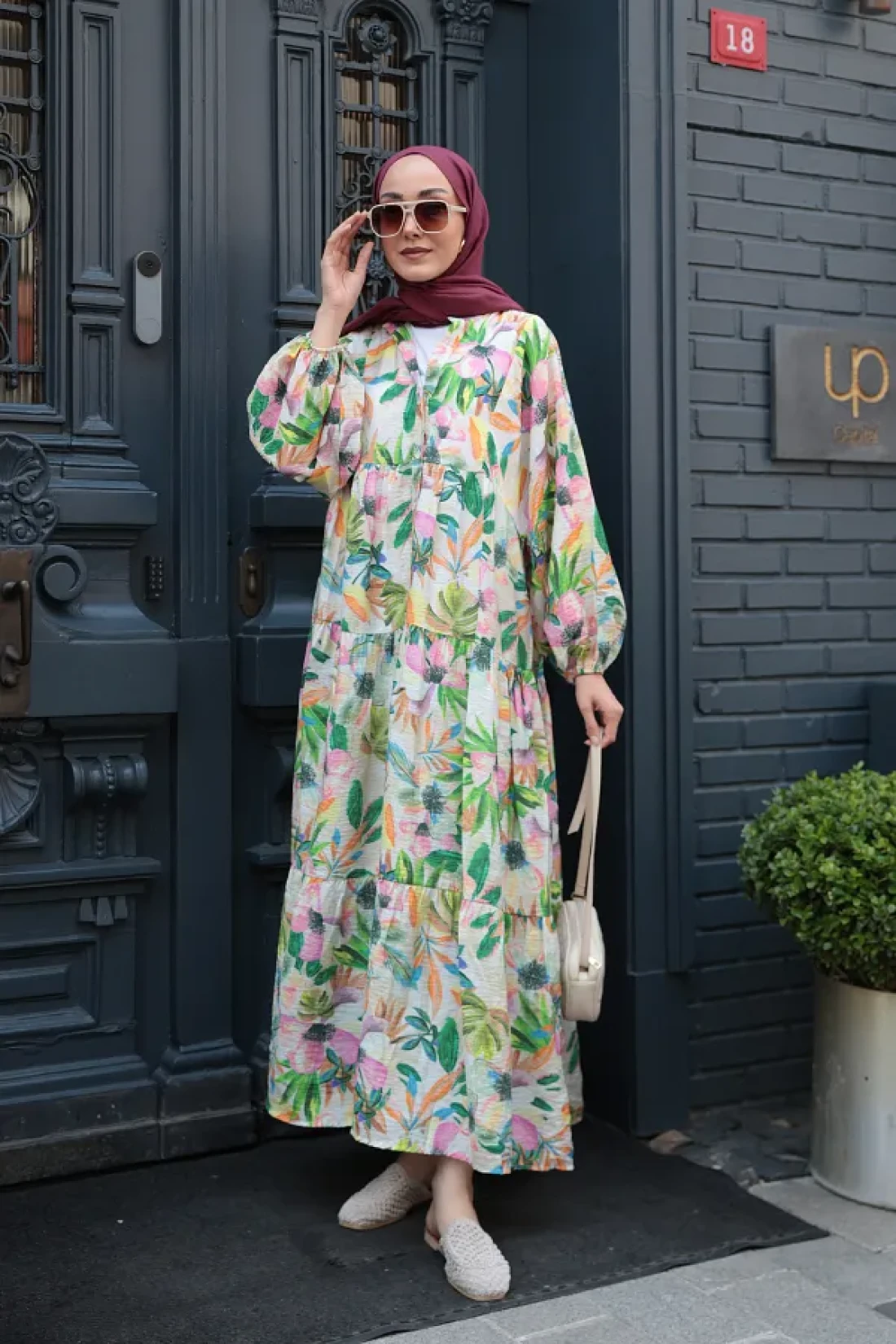 LOCCO فستان نسائي منقوش باللون الأخضر