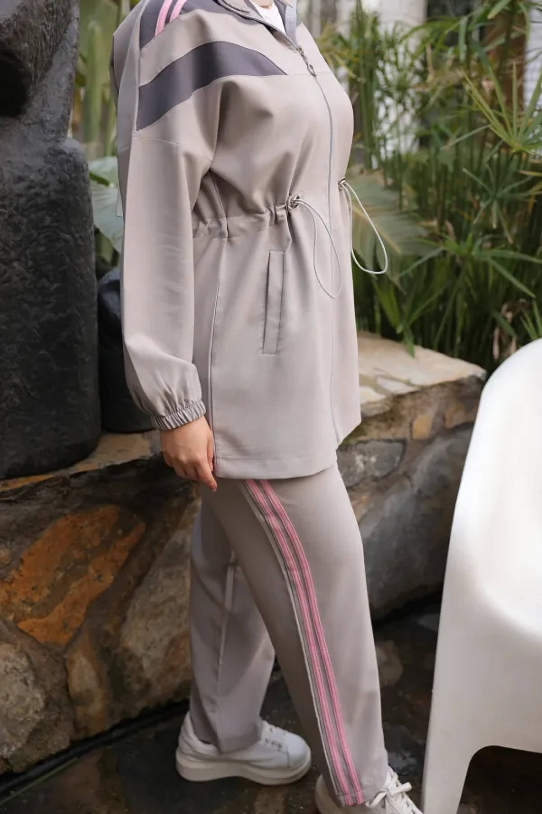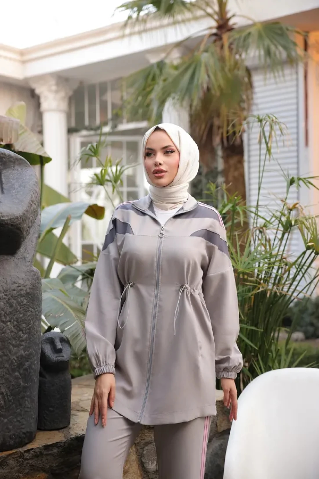 - مثالية للارتداء اليومي بفضل تصميمها المريح، تم تصميم طقم البدلة الرياضية النسائية الحجاب بمقاس عادي. بفضل طوله الطبيعي، يتكيف مع أنواع الجسم المختلفة ويوفر استخدامًا مريحًا. مع نوع القماش المنسوج، يزيد من المتانة، بينما يلتقط الأناقة مع لونه الرمادي. يوفر استخدامًا عمليًا مع ميزة الإغلاق بالسحاب الكامل ويمكن ارتداؤه وخلعه بسهولة.