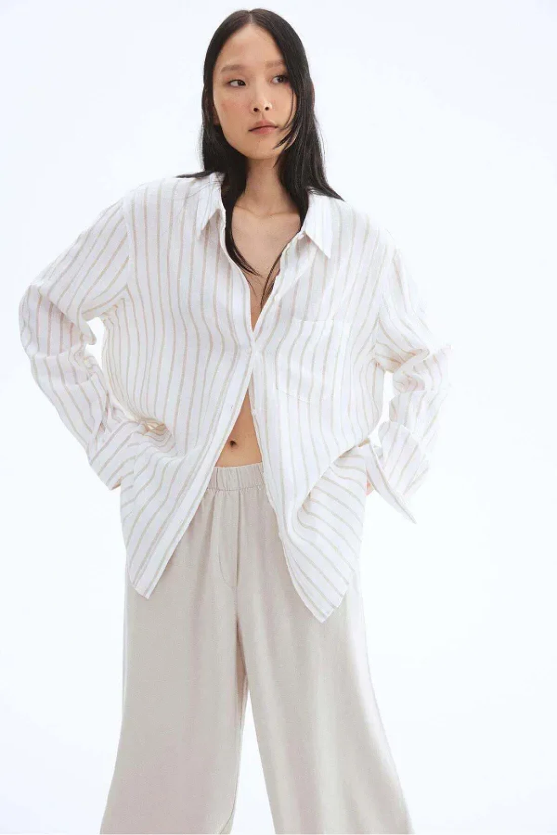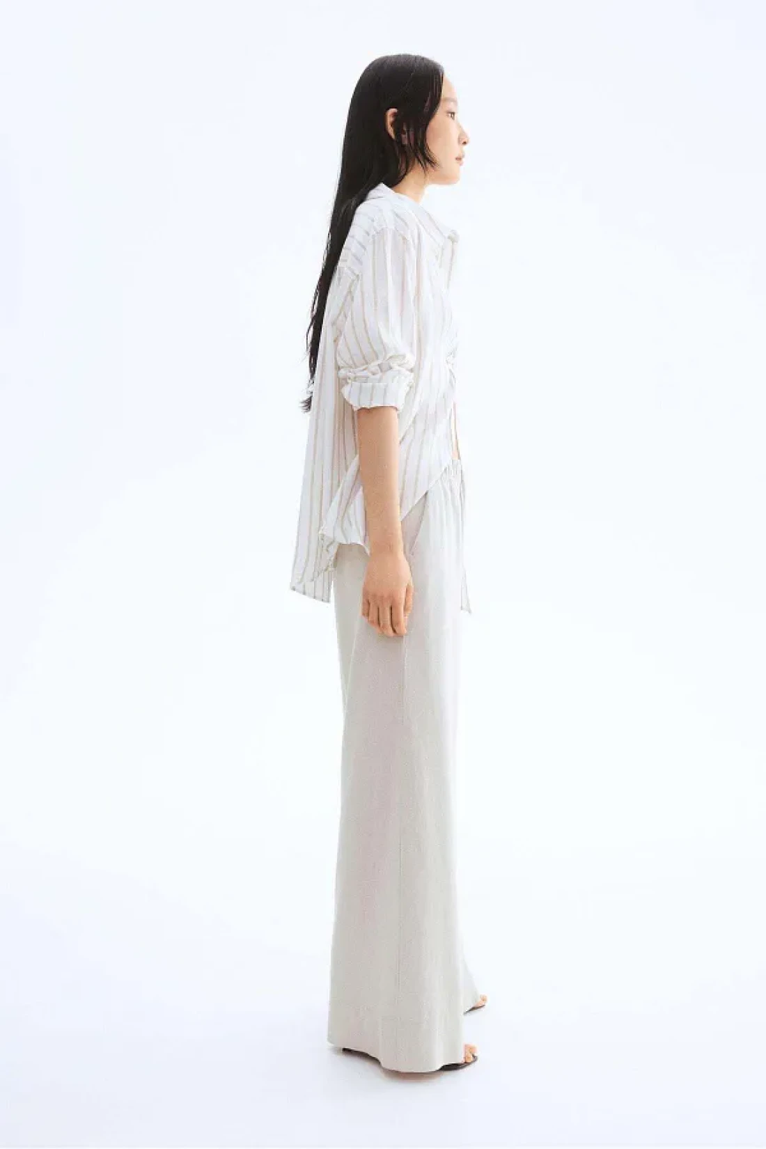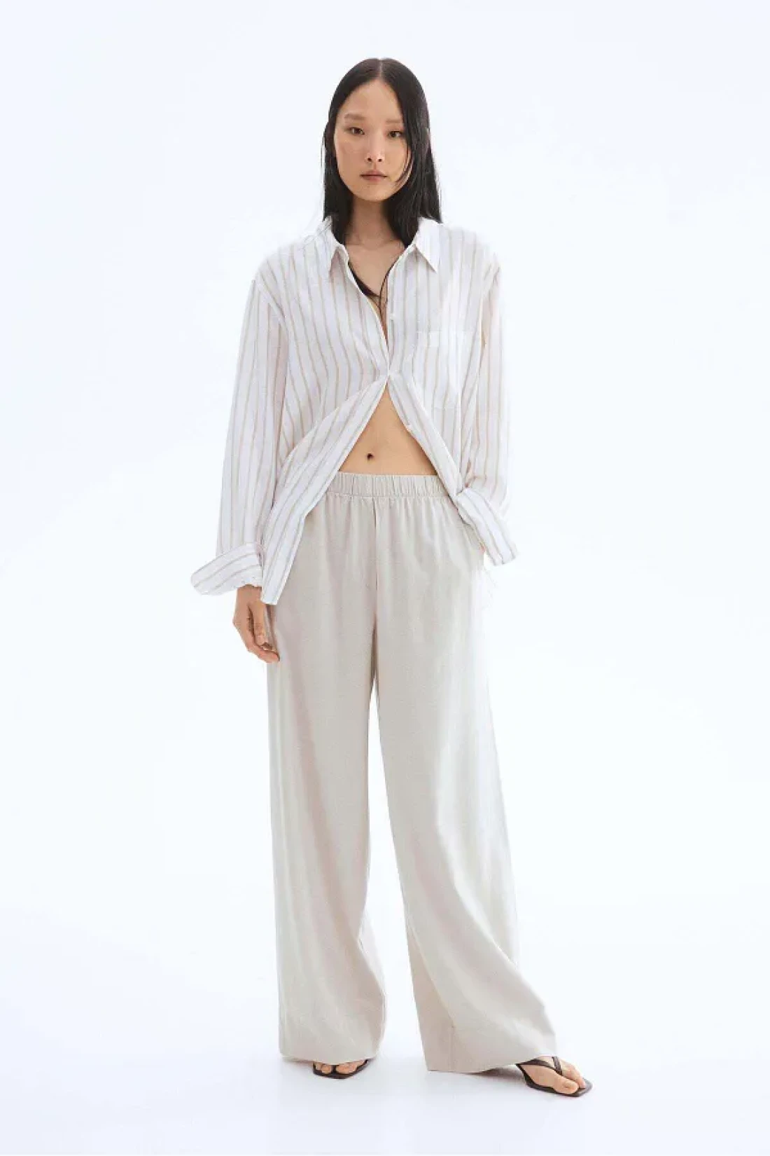 H&M بنطلون واسع من مزيج الكتان