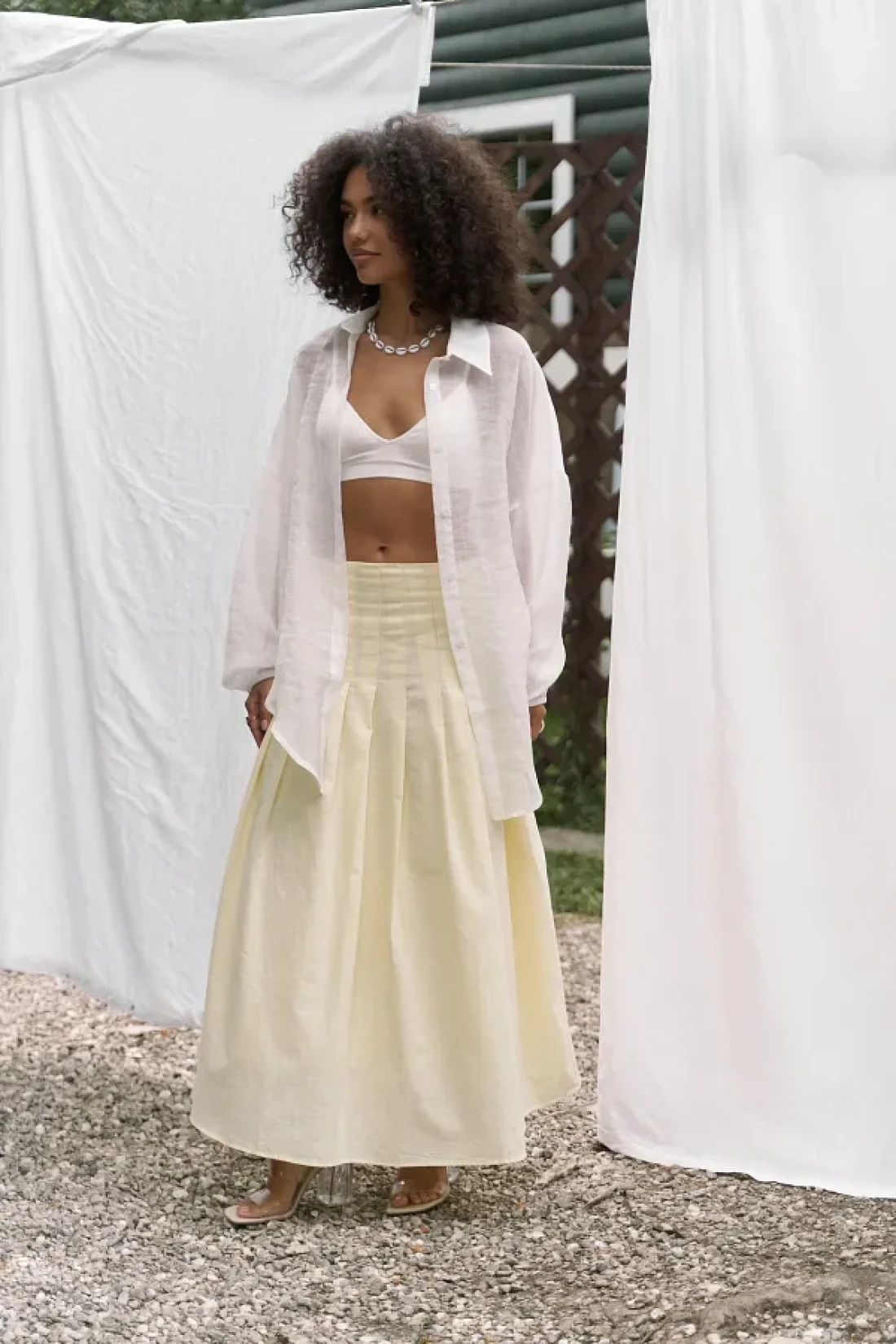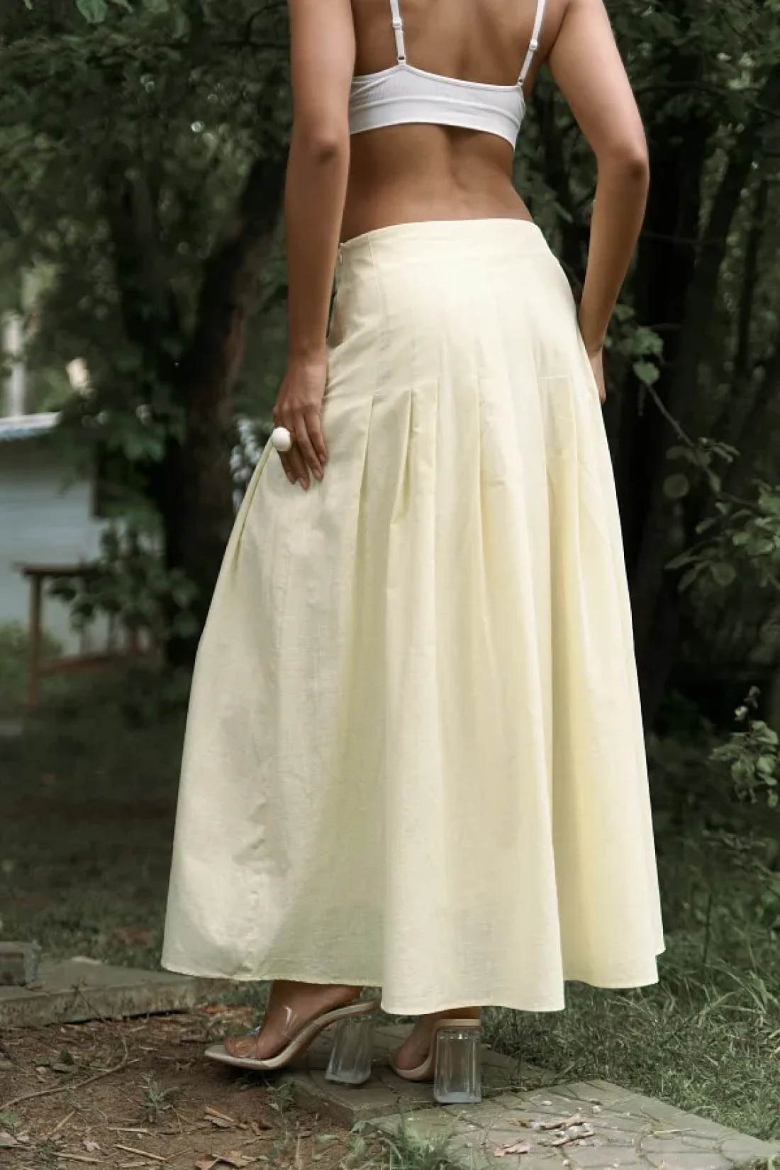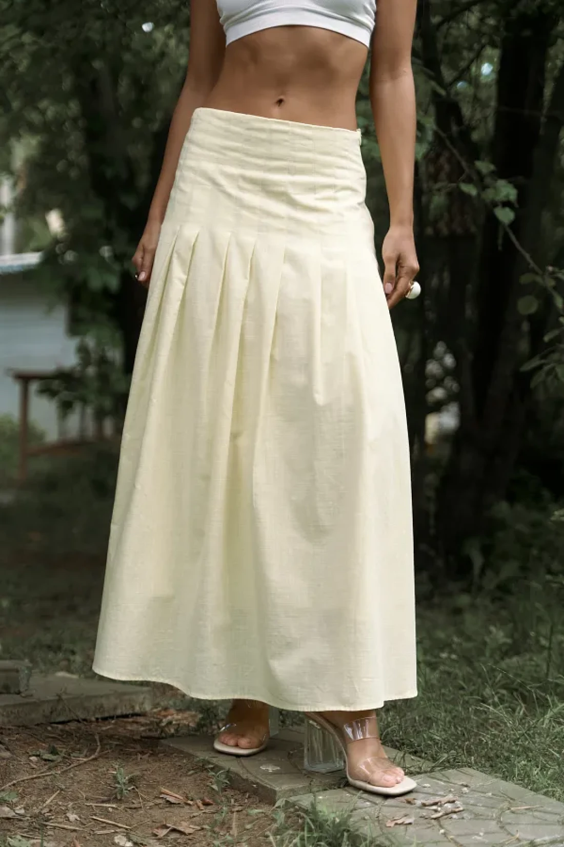 BOHEMAİ تنورة طويلة صفراء بتفاصيل طيات الدفيئة