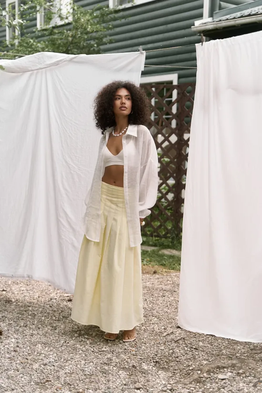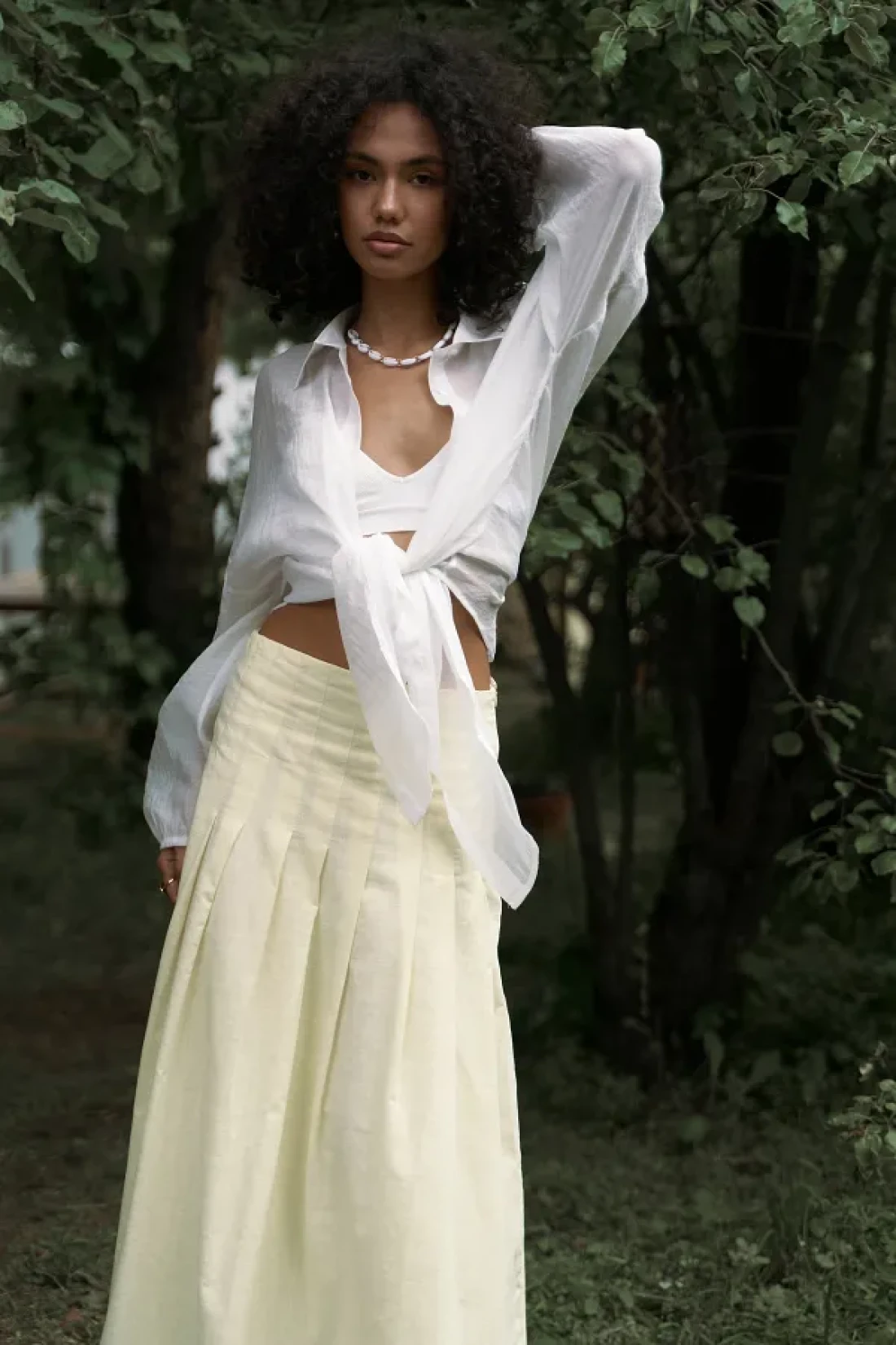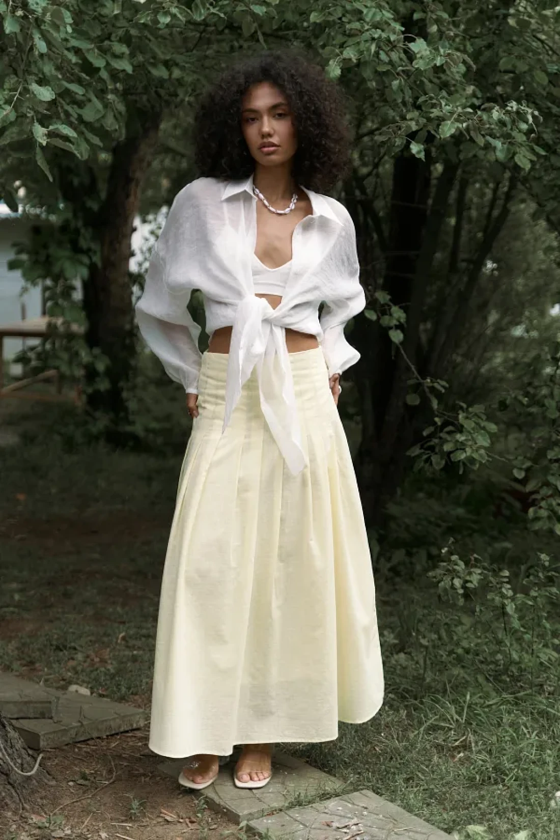 BOHEMAİ تنورة طويلة صفراء بتفاصيل طيات الدفيئة
