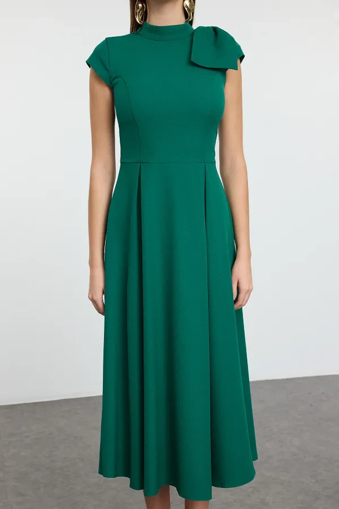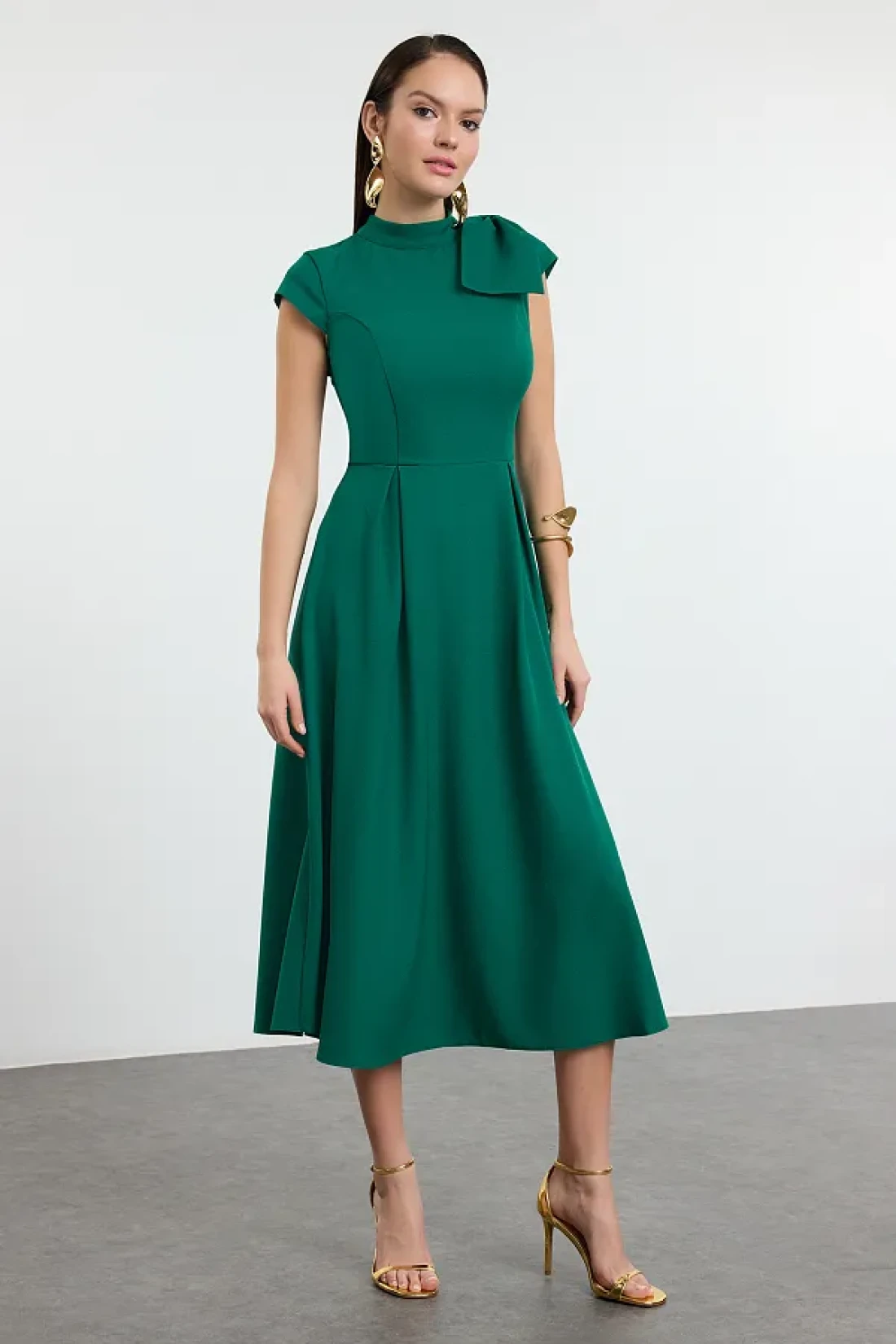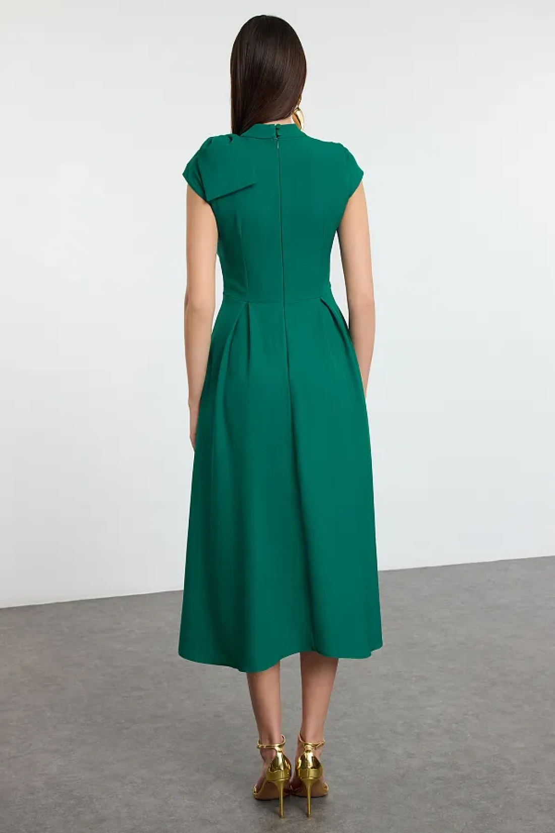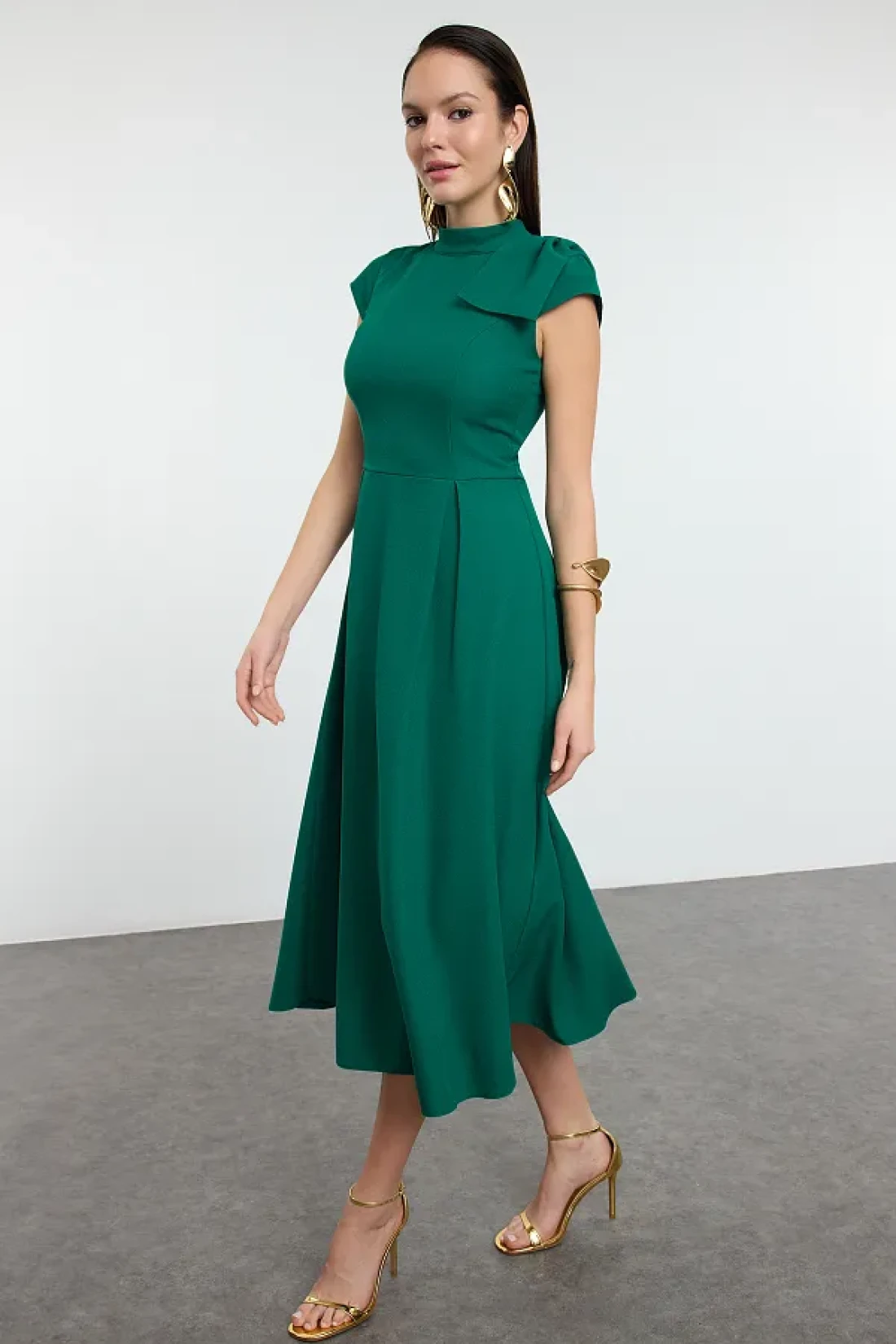 Collection فستان سهرة أنيق منسوج بطيات على شكل حرف A باللون الأخضر فستان التخرج الليلي TPRAW25EL00151