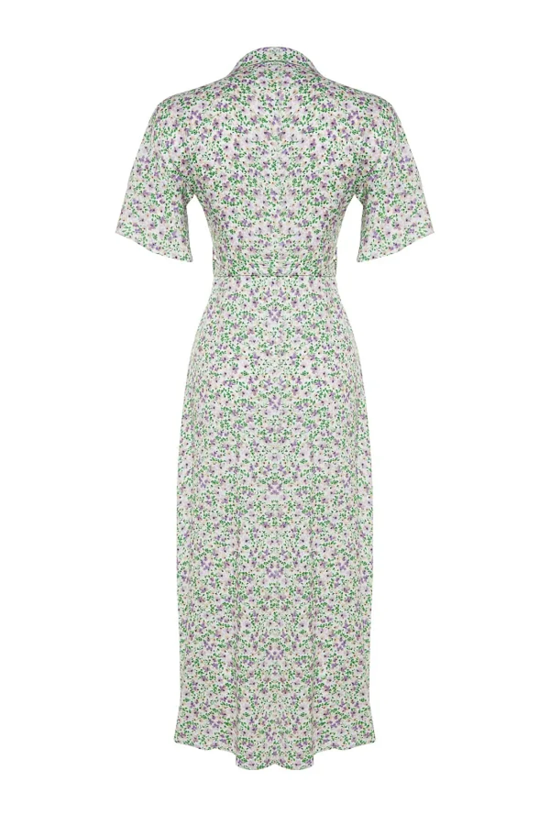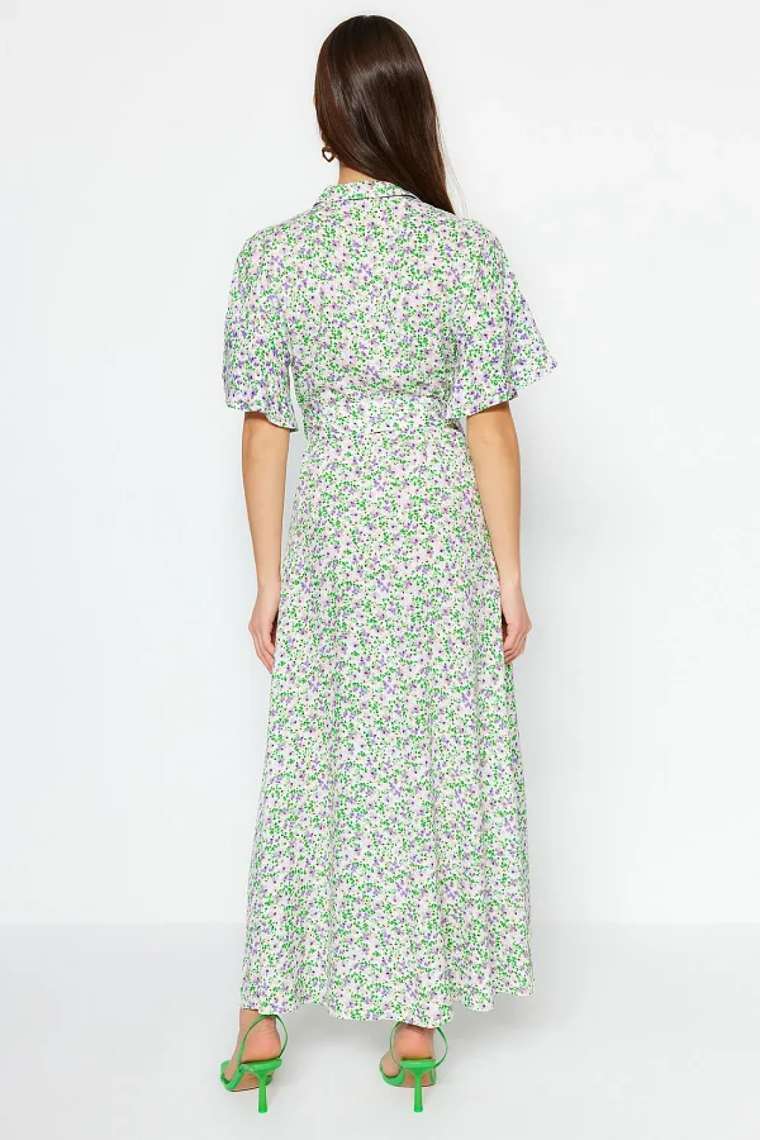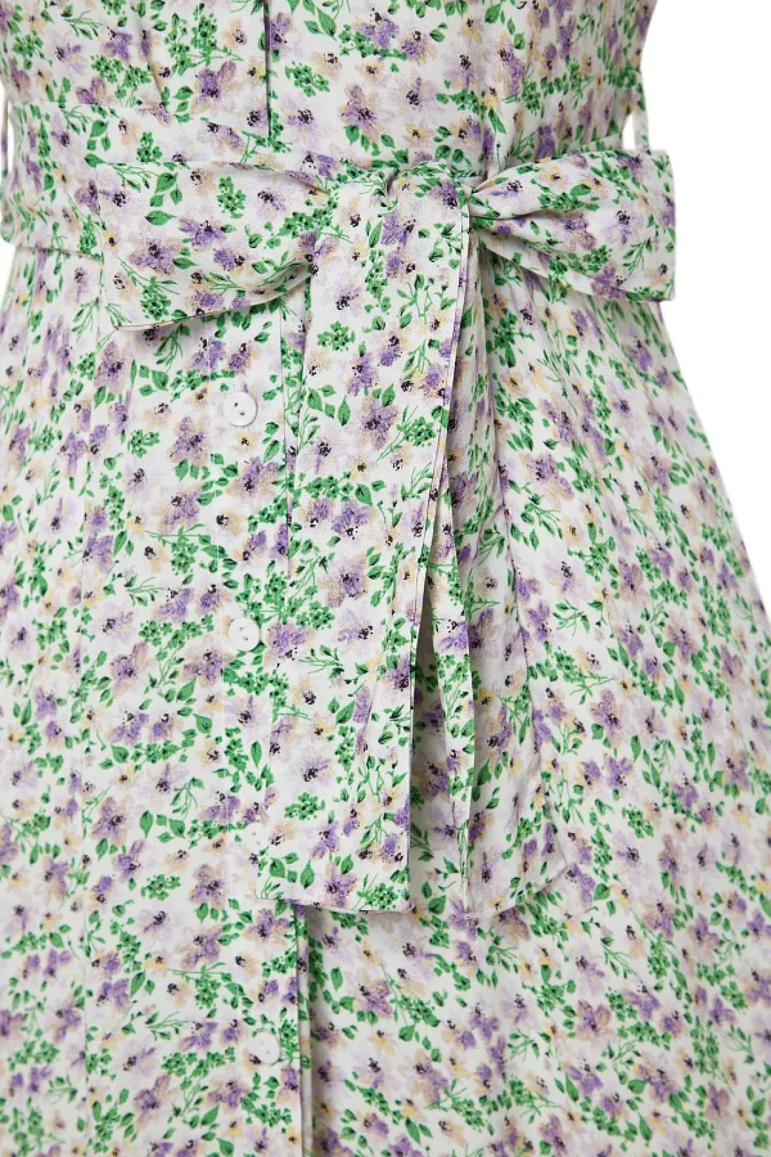 Collection فستان قميص منسوج من الفيسكوز بطبعة زهور أرجوانية TWOSS19EL0094