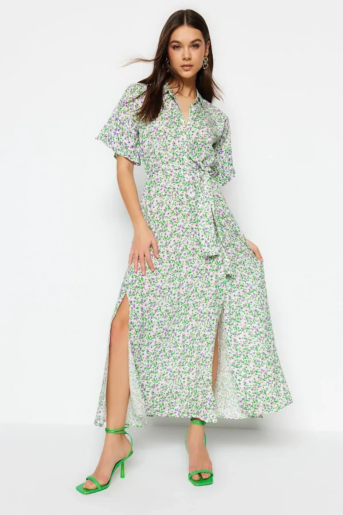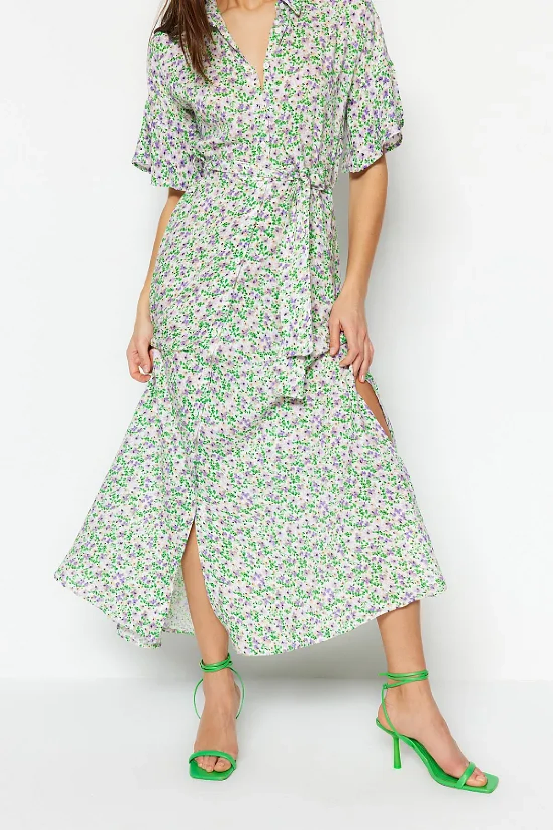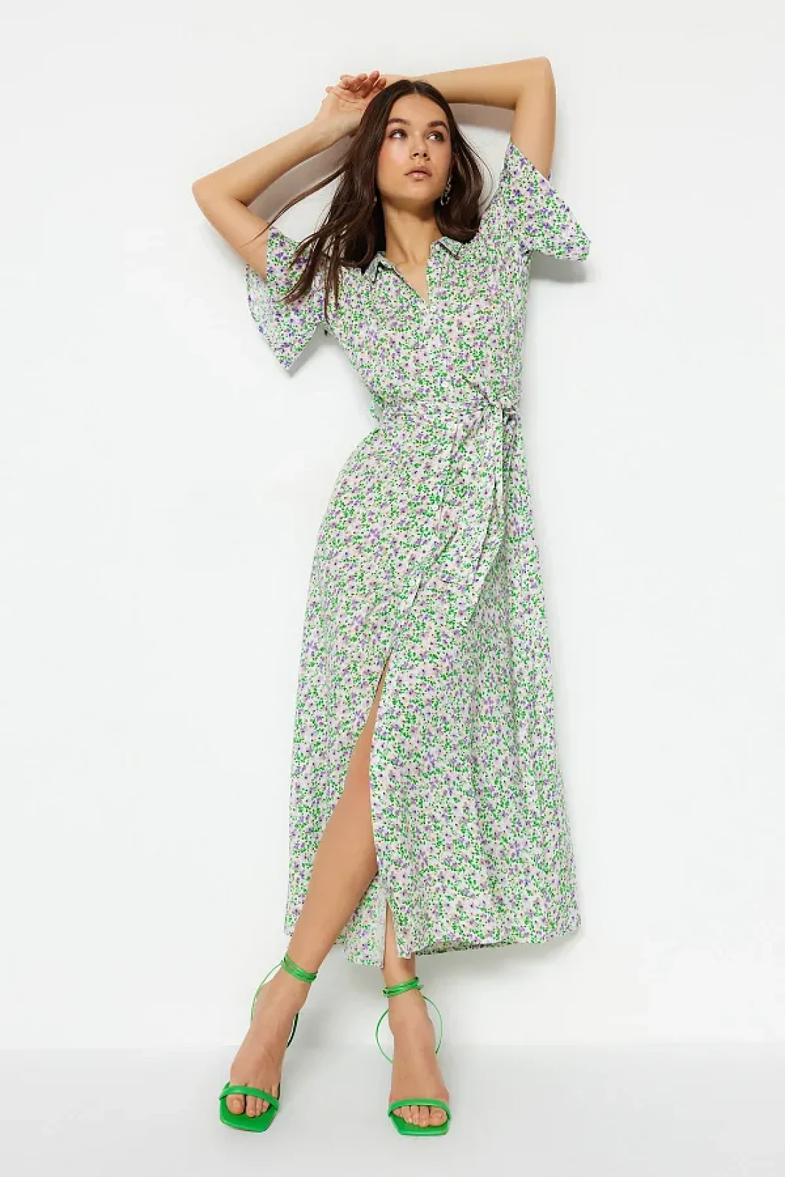 Collection فستان قميص منسوج من الفيسكوز بطبعة زهور أرجوانية TWOSS19EL0094