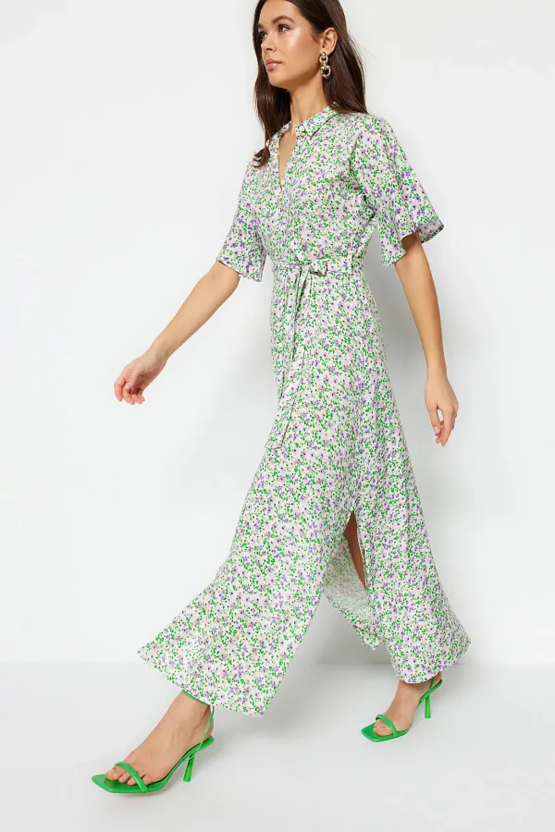 الفستان الطويل، الذي يوفر الأناقة والراحة مع تصميم ياقة القميص، يجذب الانتباه بأسلوبه العادي المناسب للاستخدام اليومي. بفضل النوع المنسوج من الشالي، يضمن القماش خفيف الوزن وجيد التهوية الراحة طوال اليوم؛ هيكل النسيج المنسوج يزيد من المتانة، مما يوفر استخدامًا طويل الأمد؛ يخلق صورة ظلية أنثوية مع تفاصيل الحزام التي تلتف حول خصرك بأناقة، بينما يجلب نسيمات الربيع إلى أسلوبك بأنماط الأزهار. بفضل ملاءمته العادية، فإنه يتكيف مع خطوط جسمك ويوفر ملاءمة مريحة. يوفر مظهرًا عصريًا وأنيقًا بأذرعه القصيرة من المناديل، مع توفير أقصى قدر من حرية الحركة. بفضل مكوناته من مادة لزجة بنسبة 100%، فإنه يترك شعورًا لطيفًا على بشرتك بملمسه الناعم. توفر تفاصيل الحزام استخدامًا جماليًا وعمليًا، مما يسمح بتعديلها حسب ذوقك الشخصي. في المناسبات اليومية والخاصة مع صورة ظلية لفستان القميص