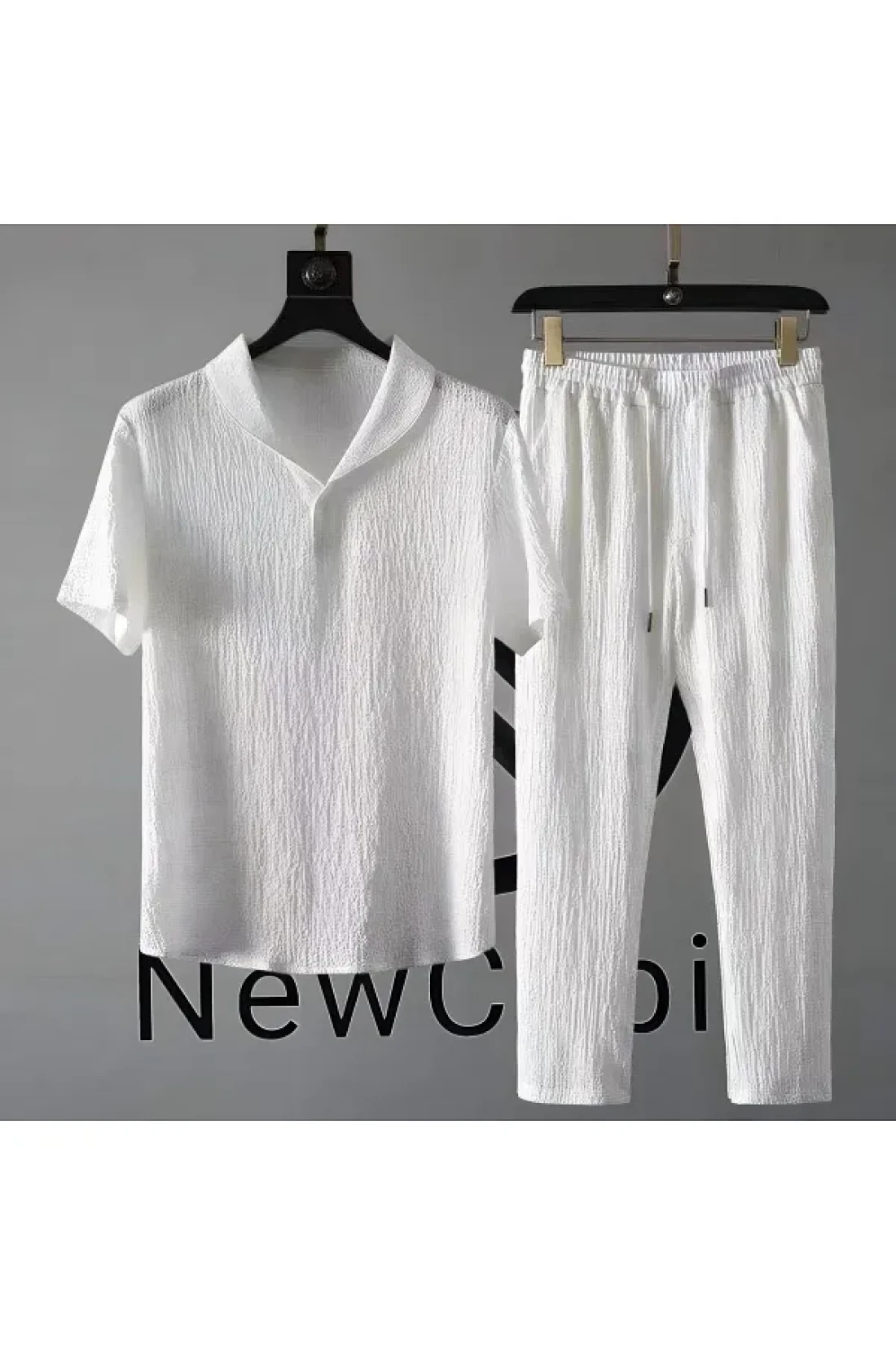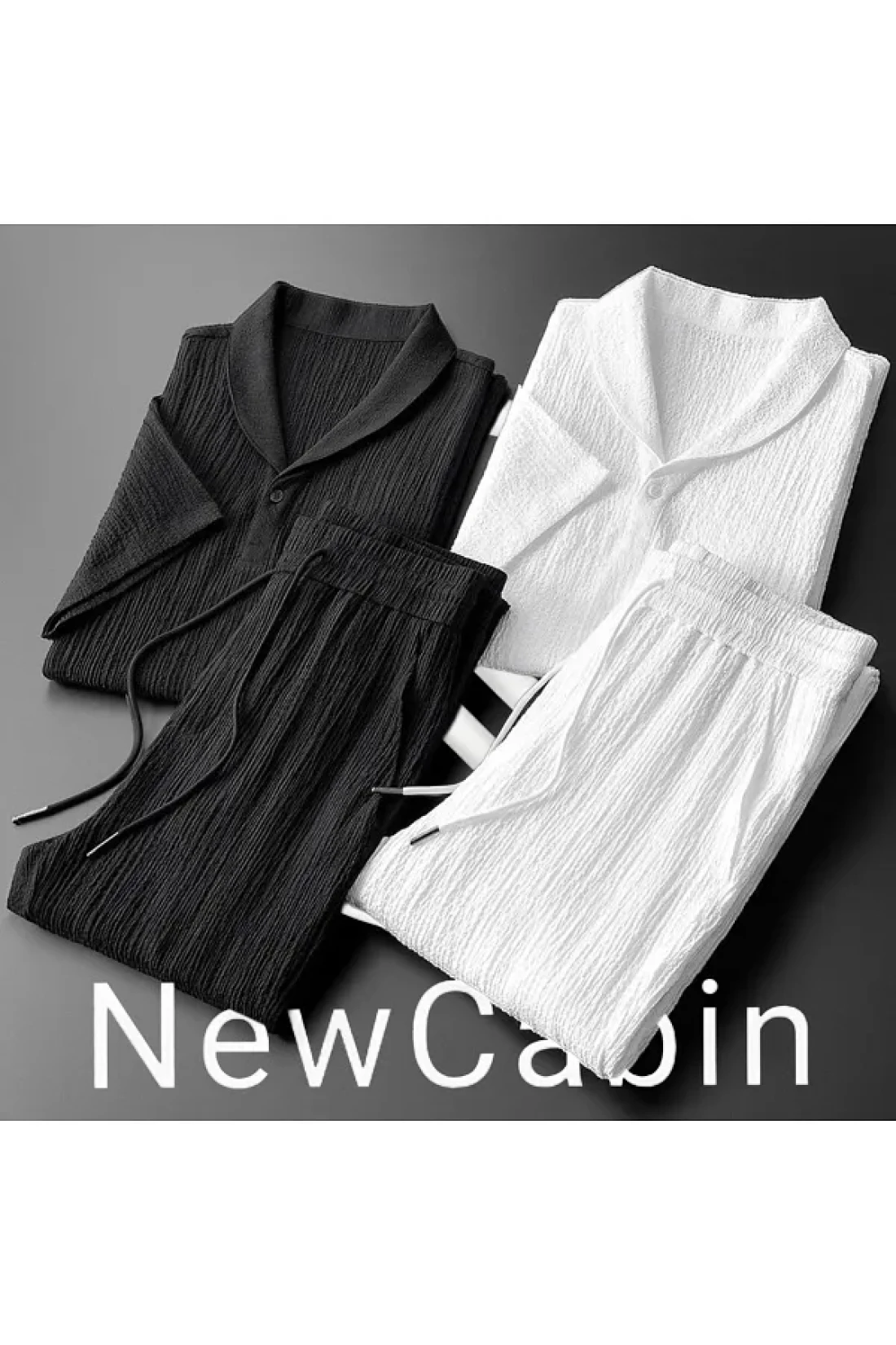 NewCabin طقم تي شيرت وبدلة رياضية صيفية للجنسين - الموسم الجديد، قماش مجعد، ليكرا، كم قصير