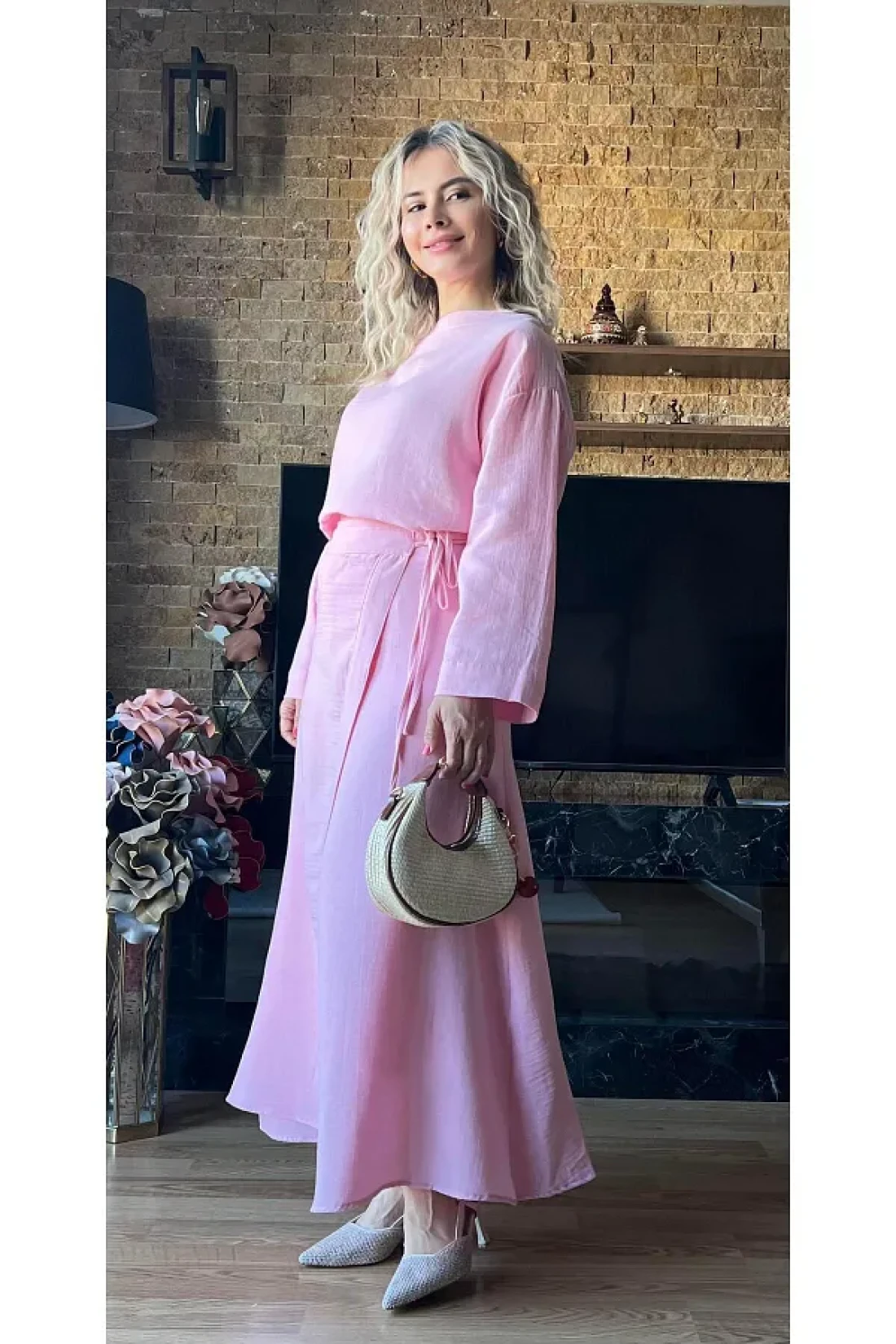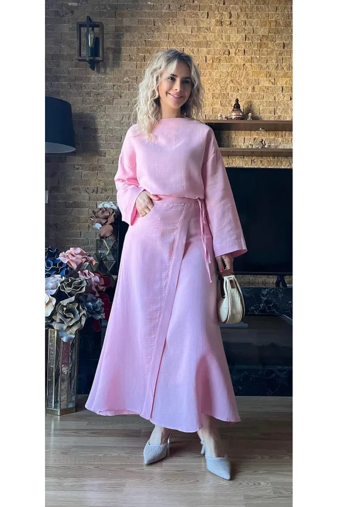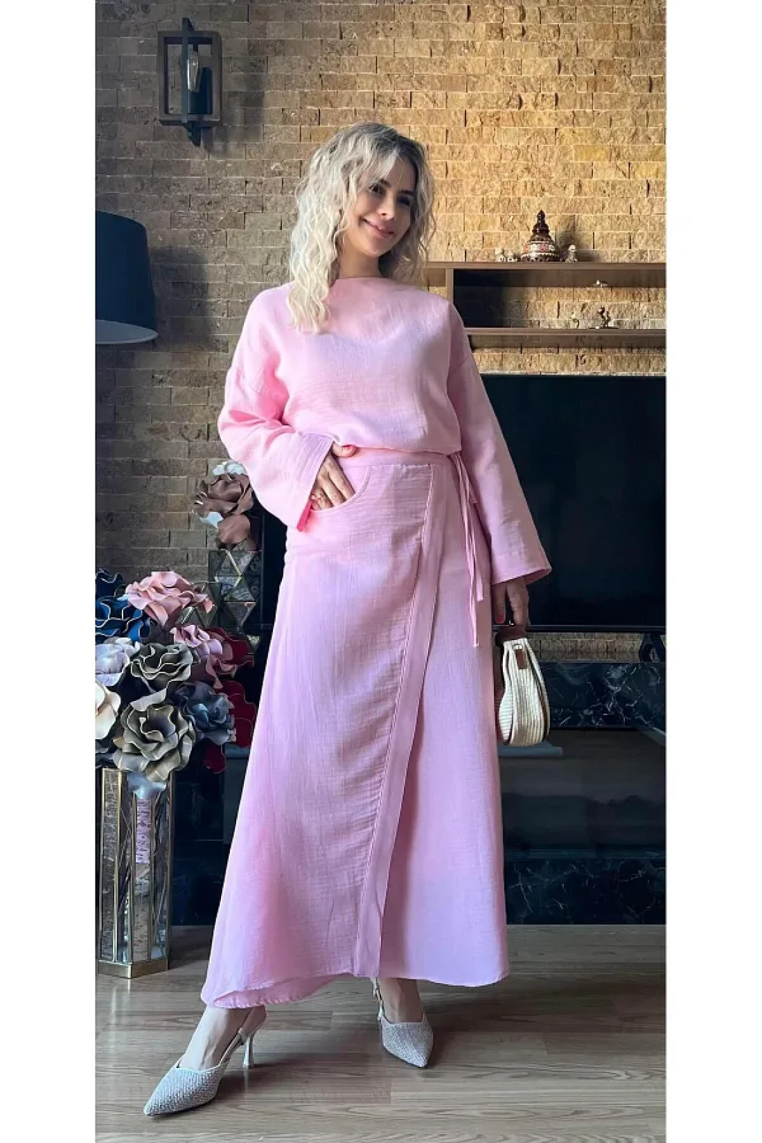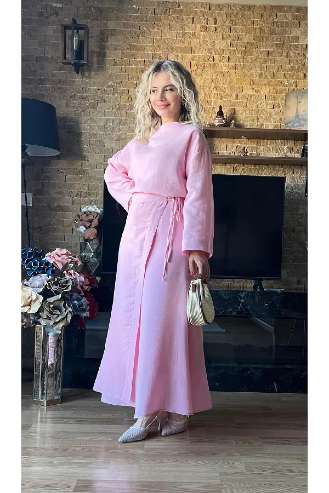 Cardella بلوزة وتنورة نسائية من قماش الموسلين بتصميم مزدوج بدلة صيفية محتشمة