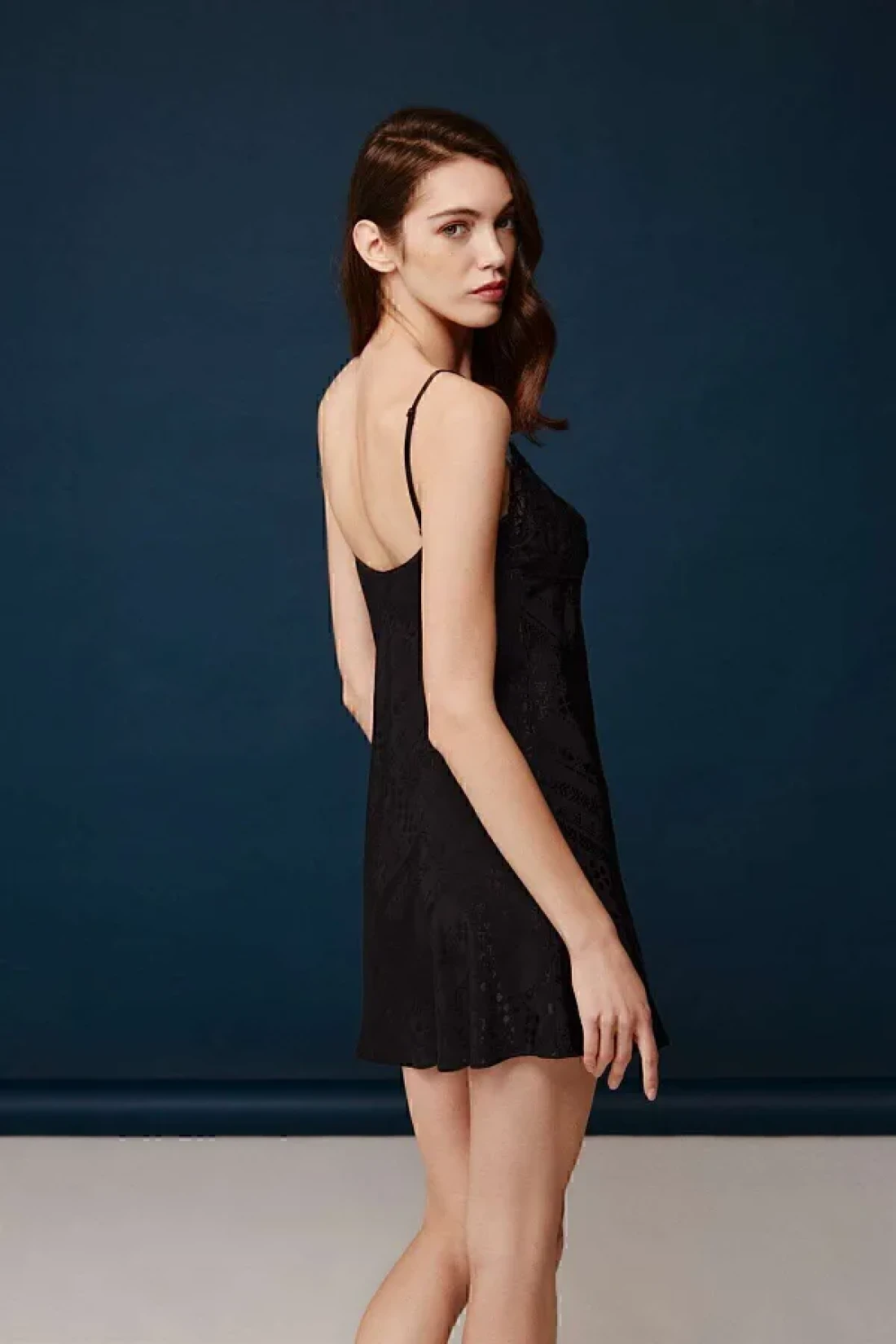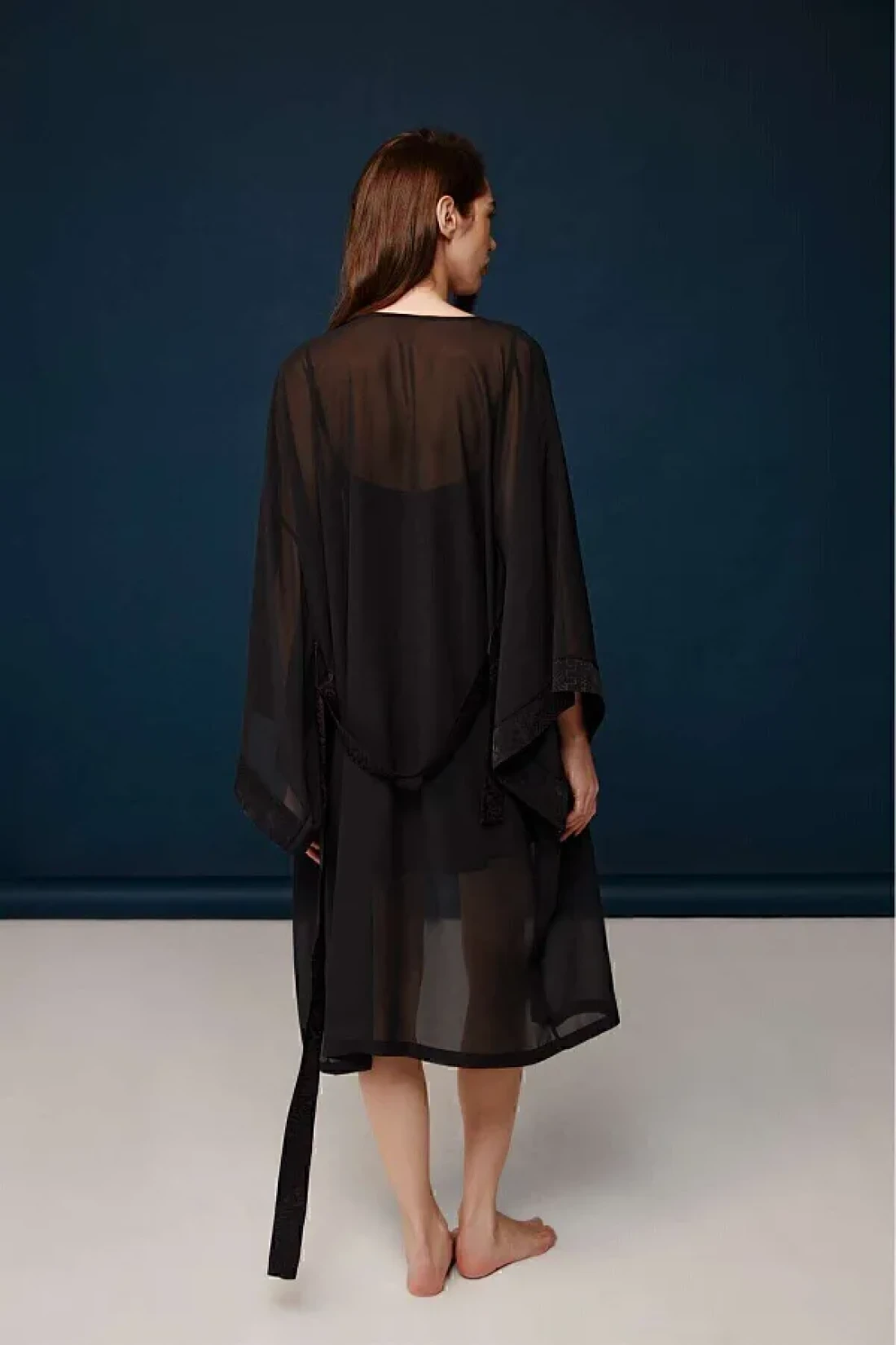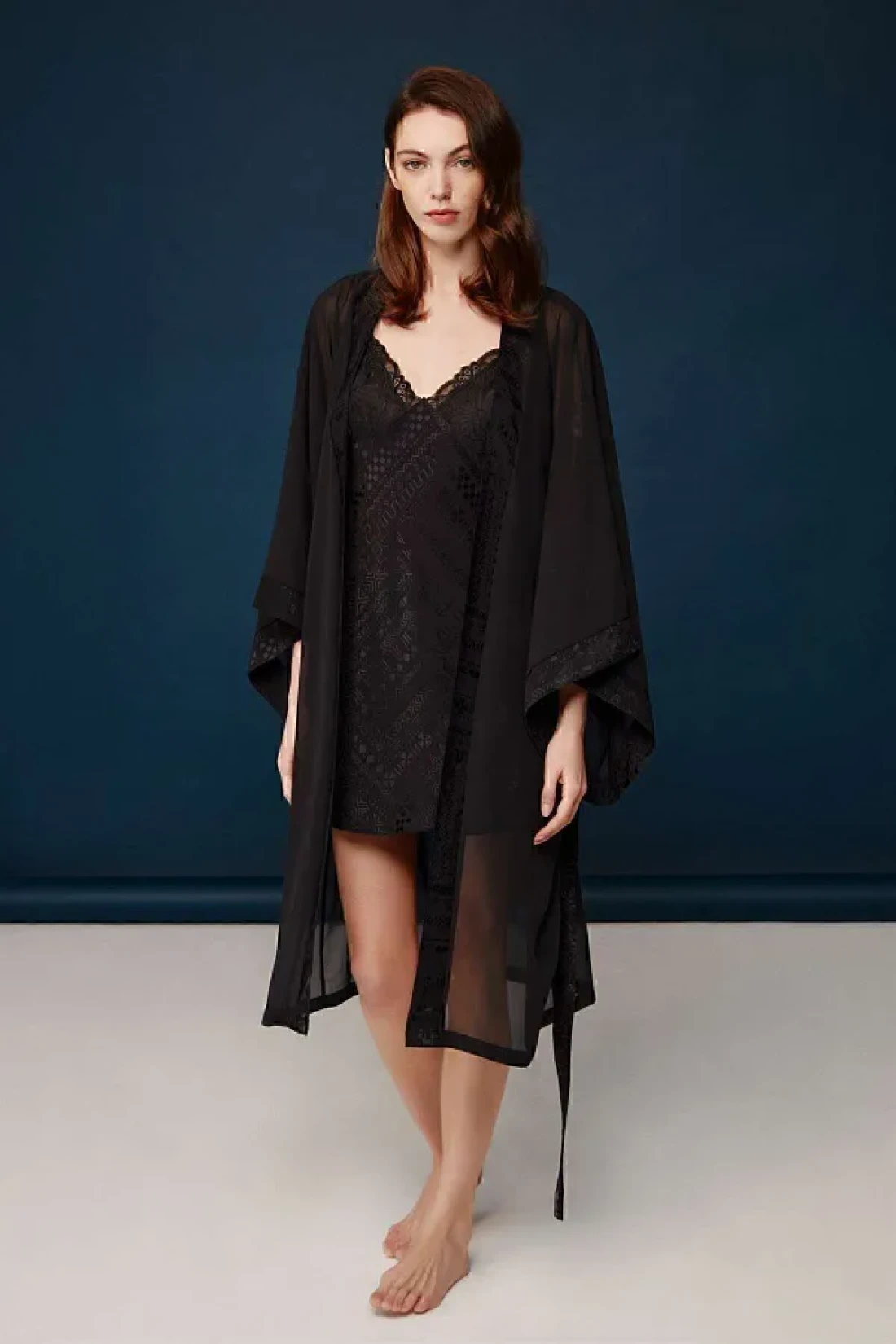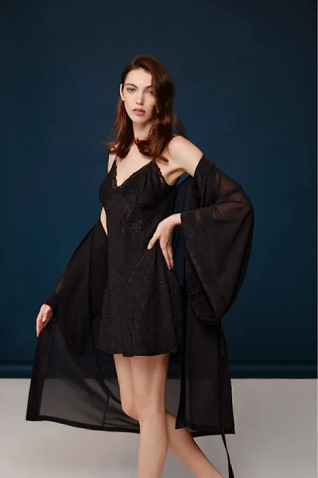 Bonnie Clyde Bonnie Clyde H.T.A-1050-H.T.A طقم ثوب نوم نسائي من الفسكوز - أسود/إكرو