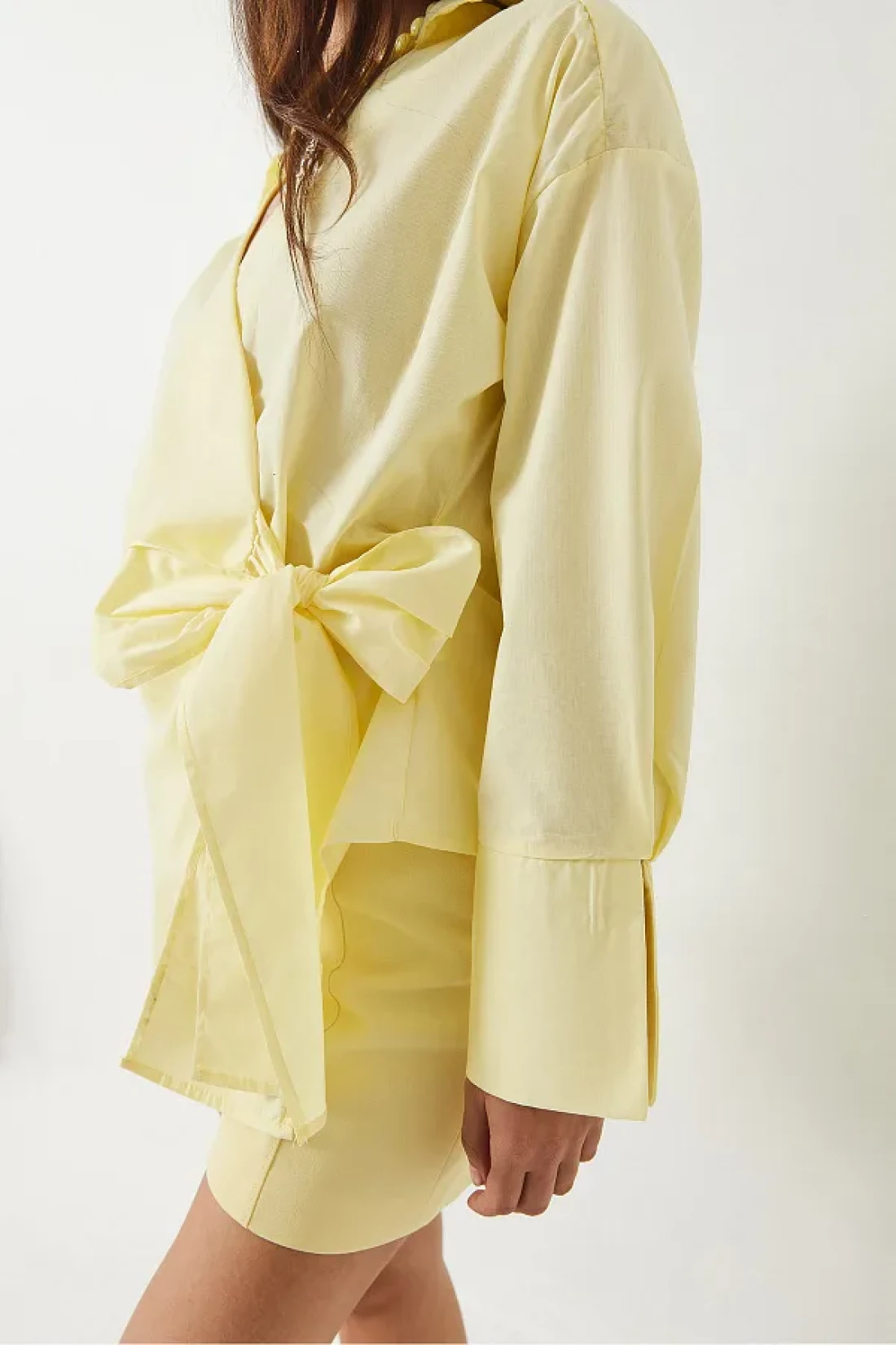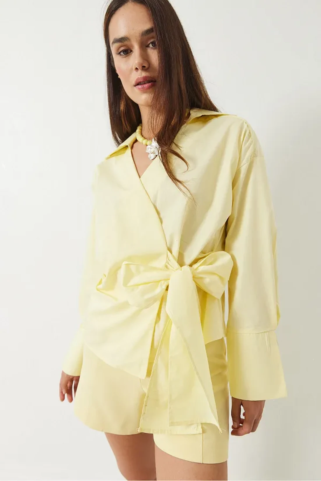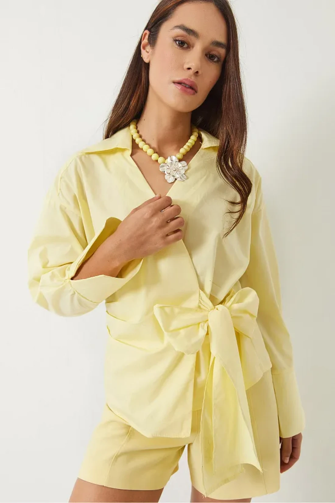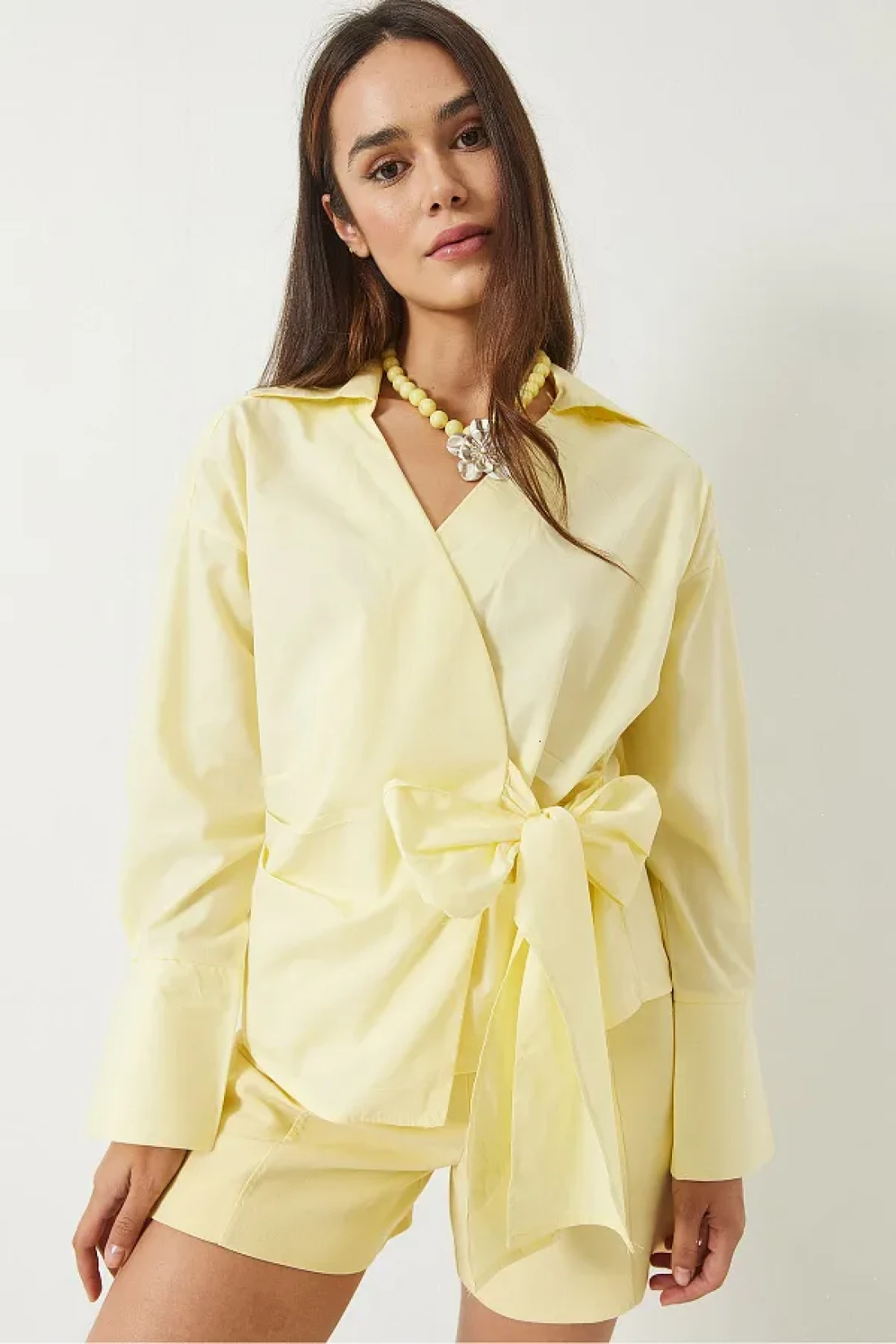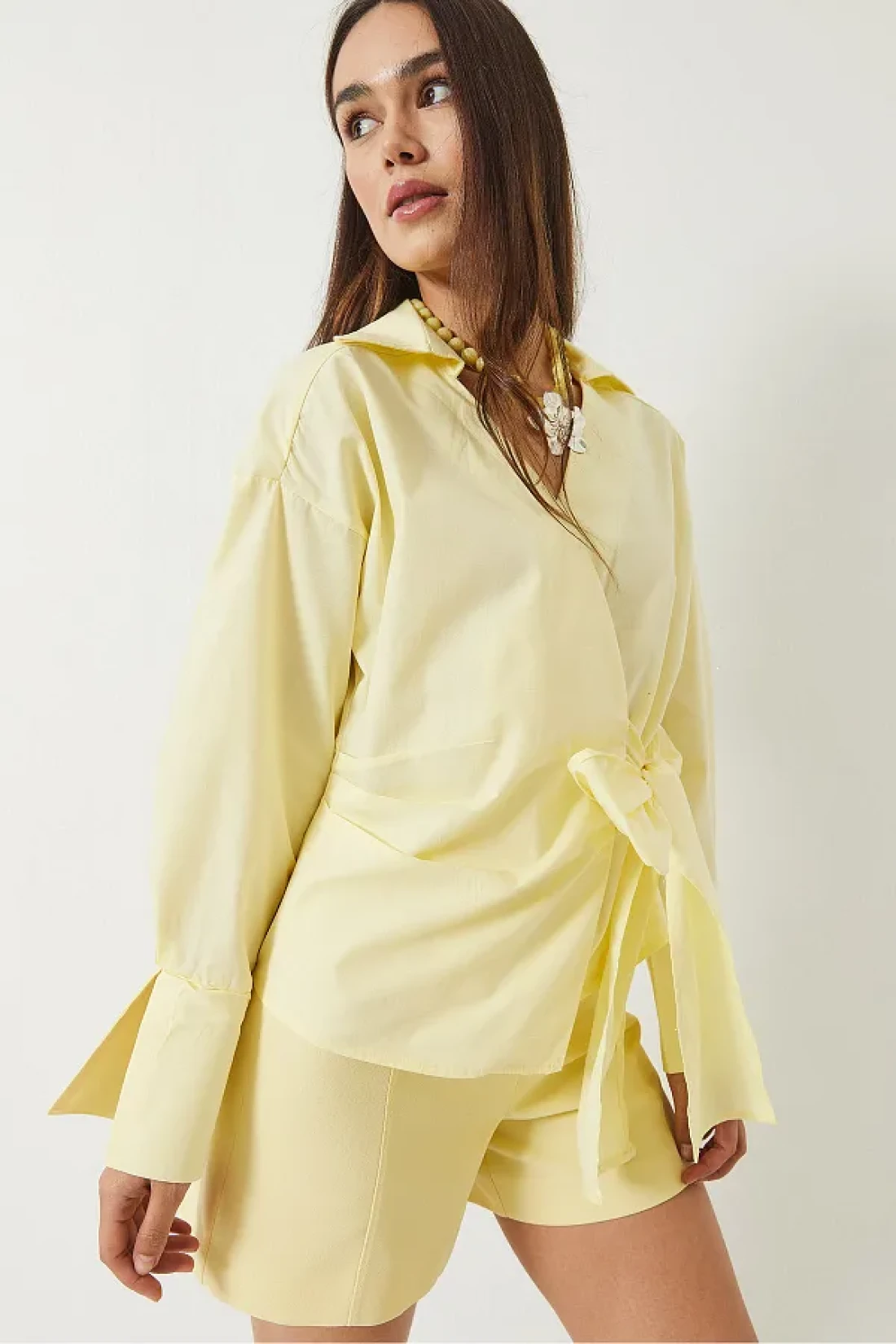 Bianco Lucci قميص بوبلين نسائي ذو طية صدر مزدوجة وربطة جانبية 60283082