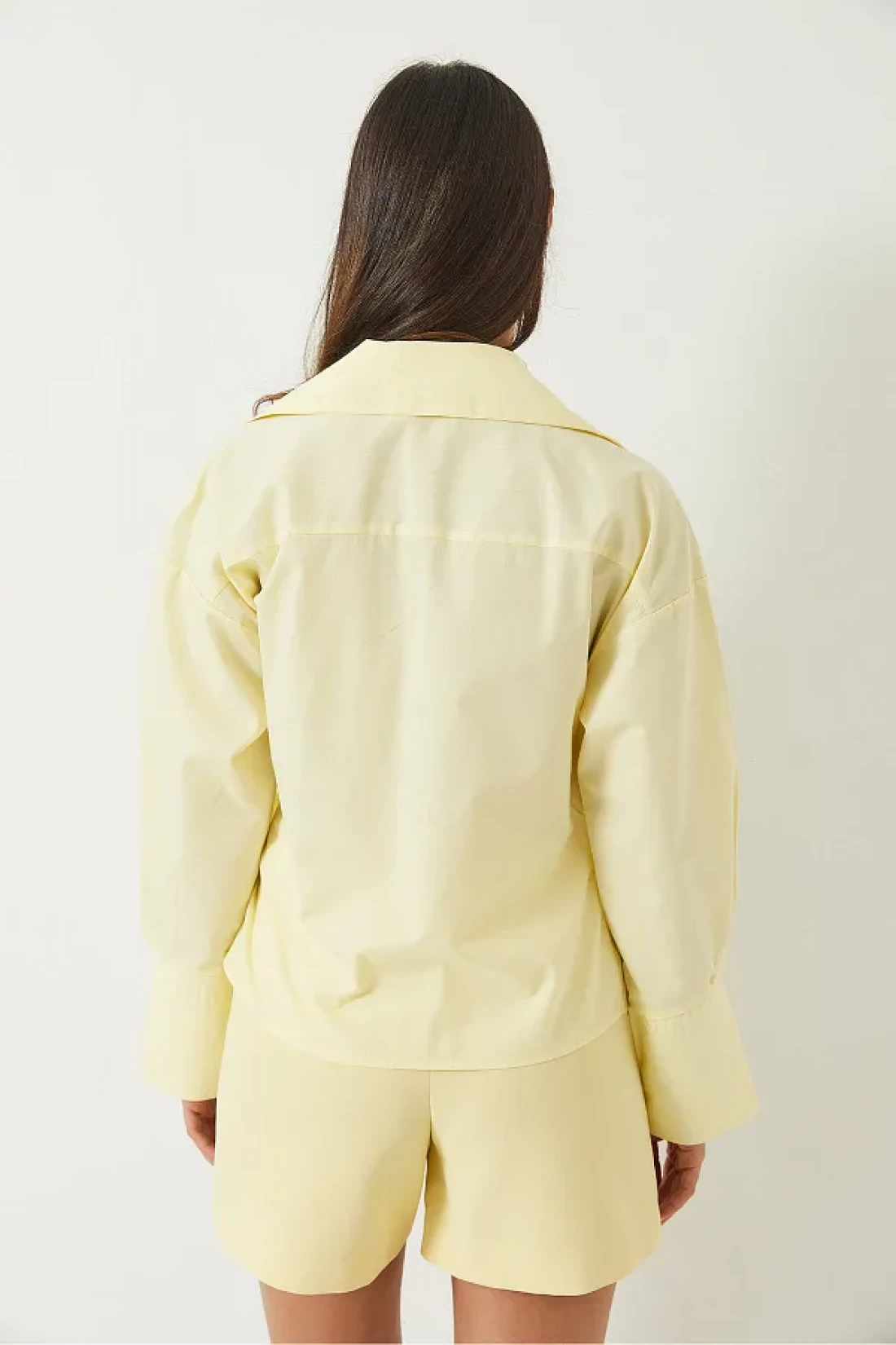 قياسات العارضة: الارتفاع: 175، الصدر: 88، الخصر: 62، الورك: 90. الحجم الموجود على عارضة الأزياء هو الحجم S. قد تختلف الألوان في لقطات الاستوديو بسبب اختلافات الإضاءة.