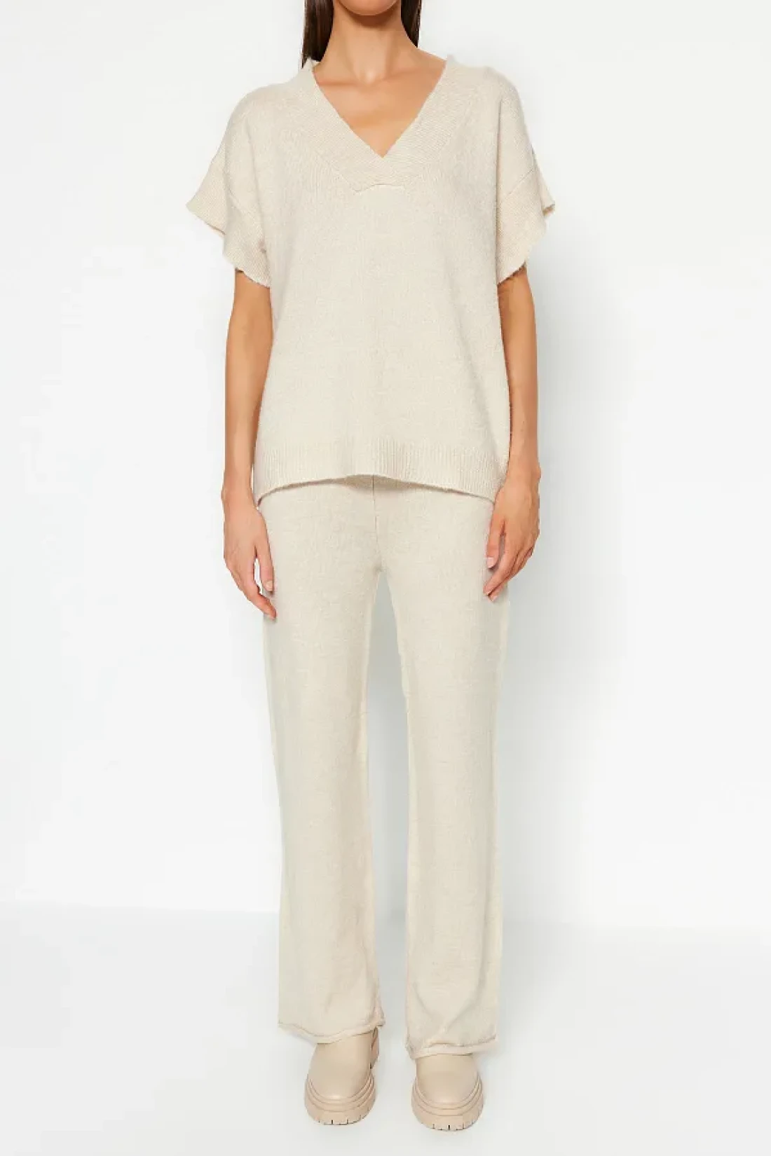 Collection طقم تريكو حجري ناعم الملمس - الجزء السفلي والعلوي TWOAW24AU00042