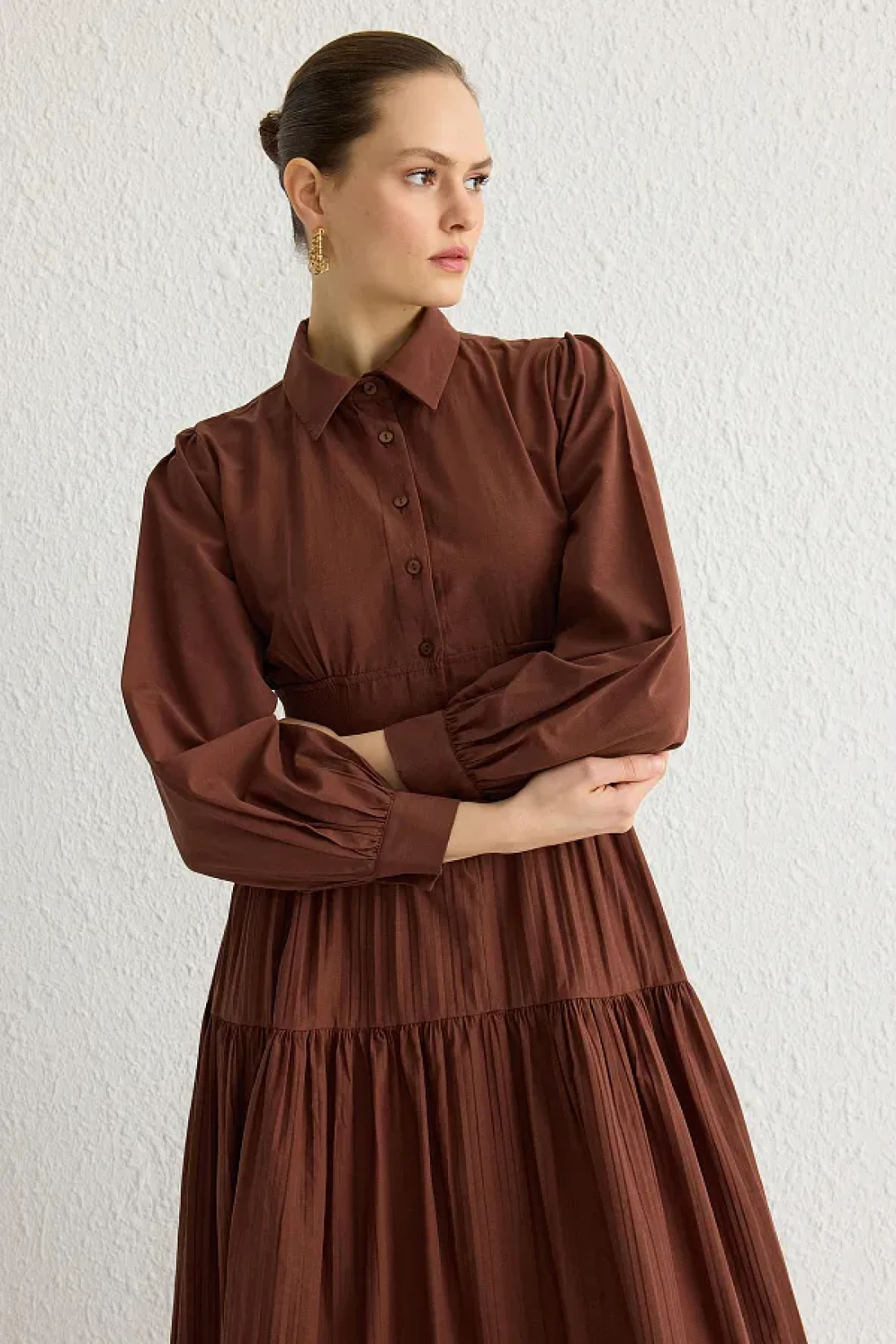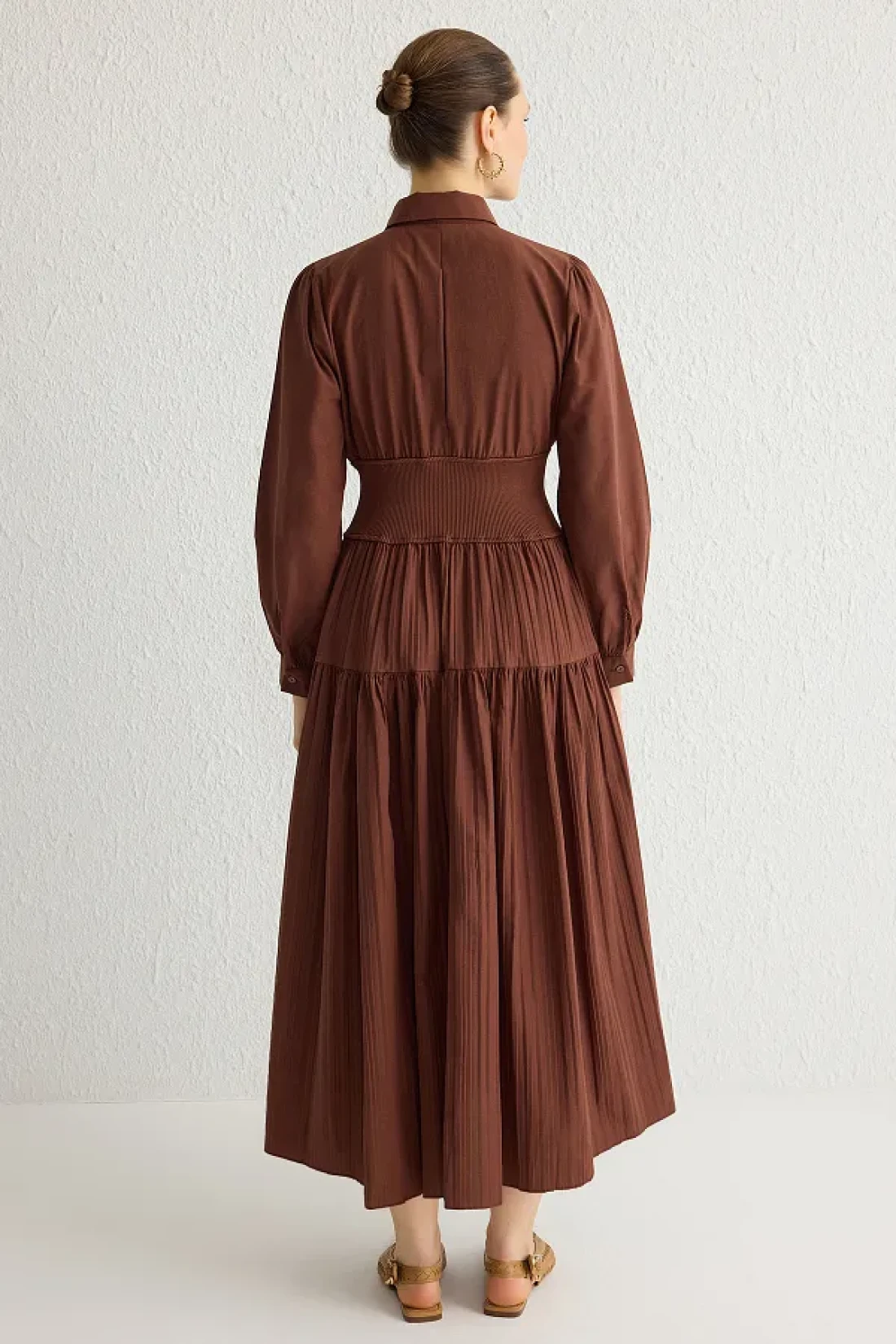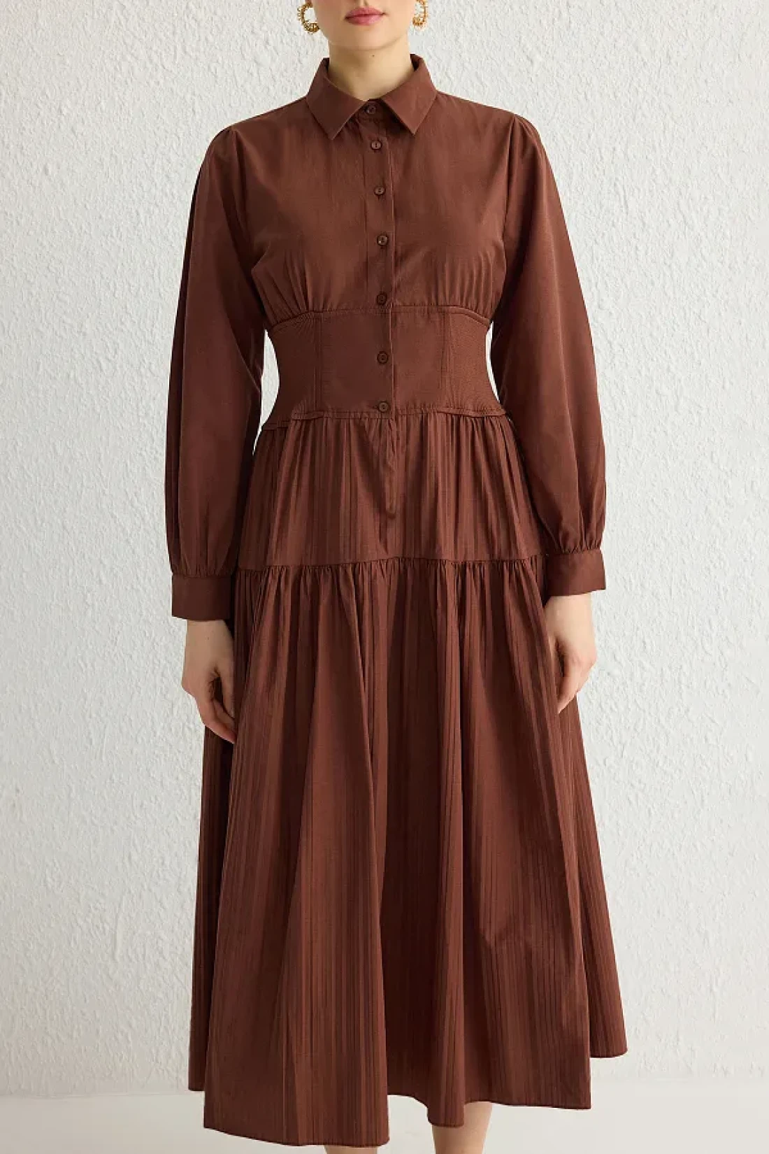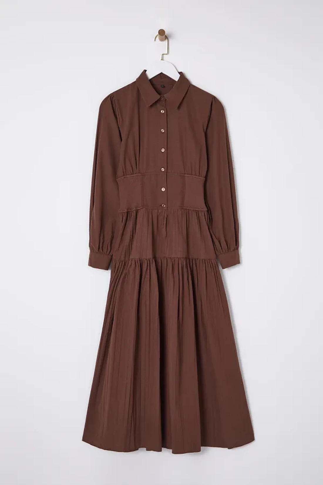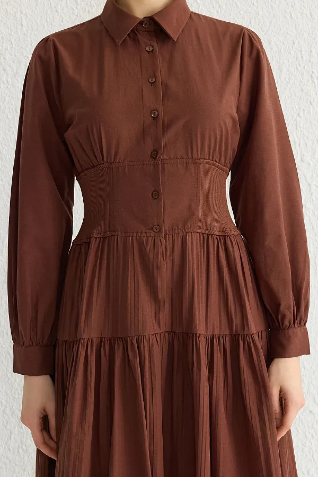 Modest فستان بني داكن بخصر مطاطي TCTSS25EB00016
