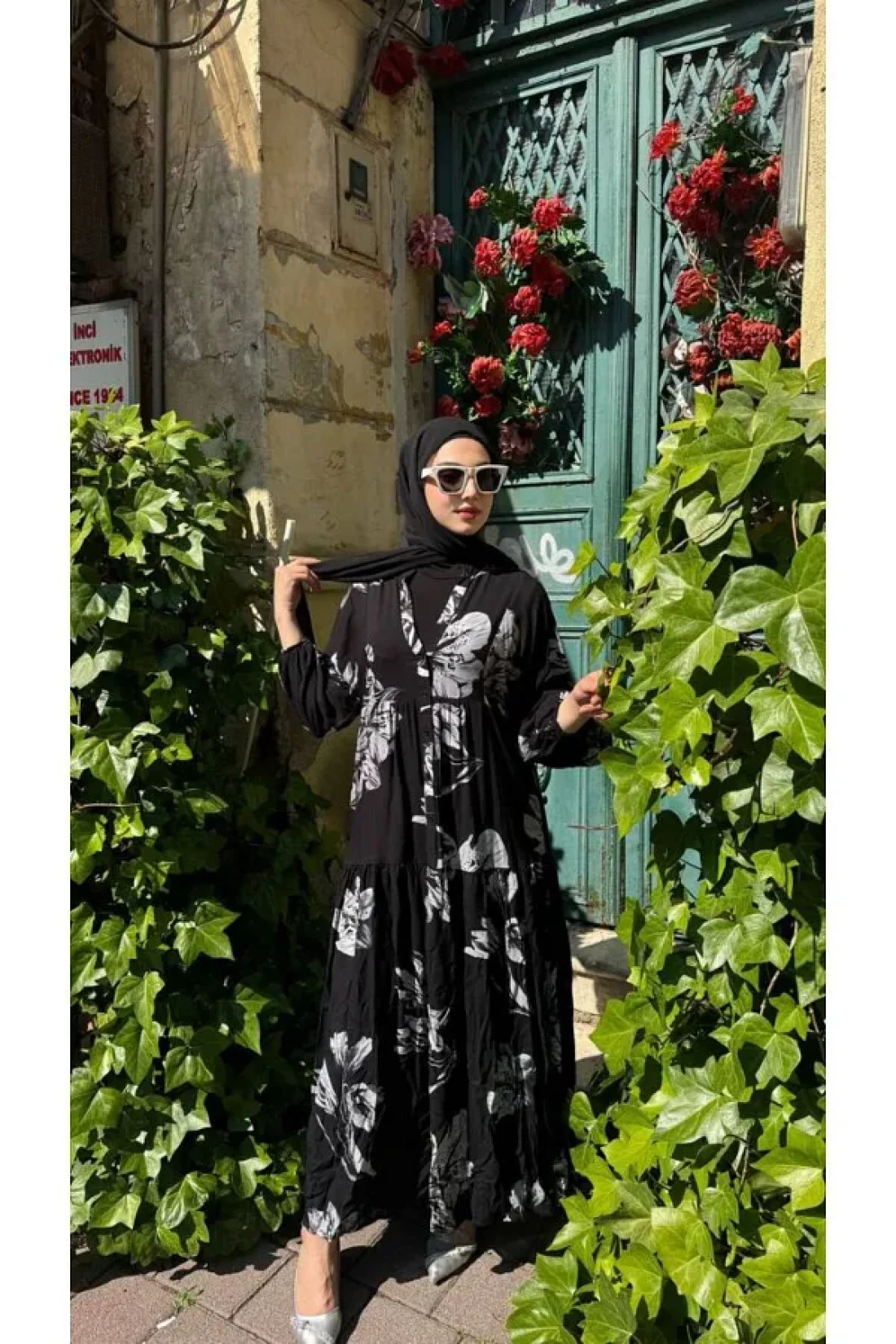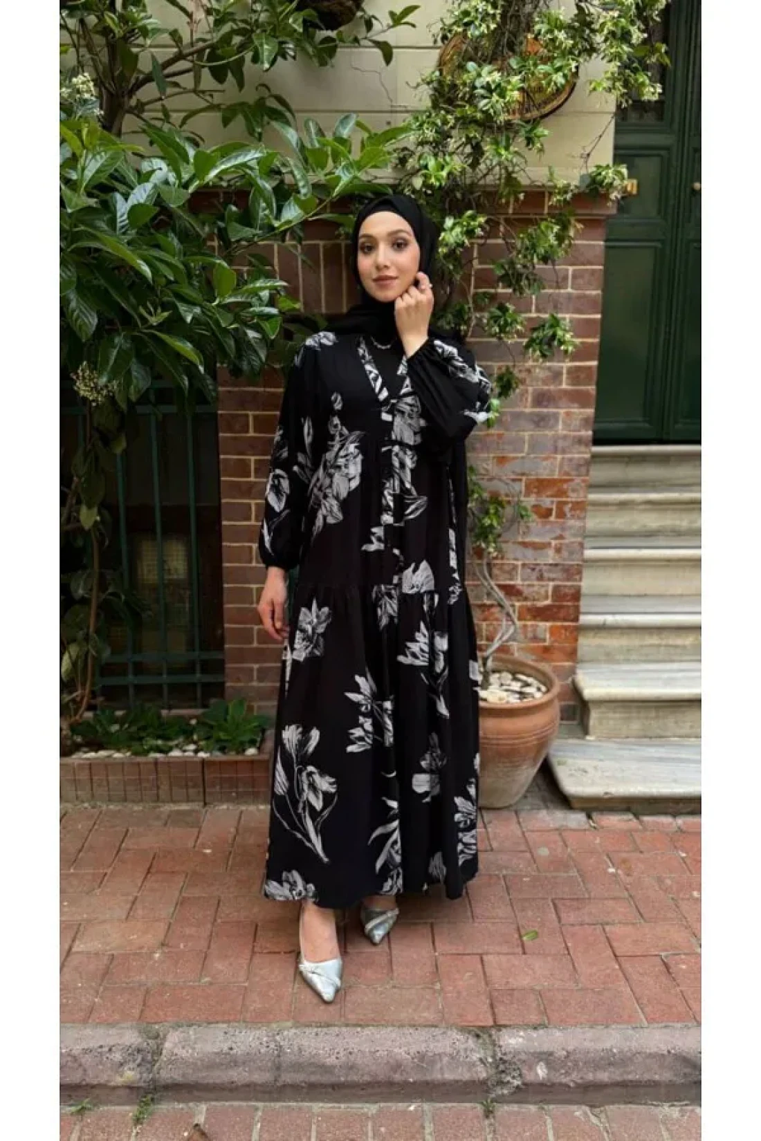 PREMİER VİE فستان فيسكوز أسود منقوش للمحجبات للموسم الجديد