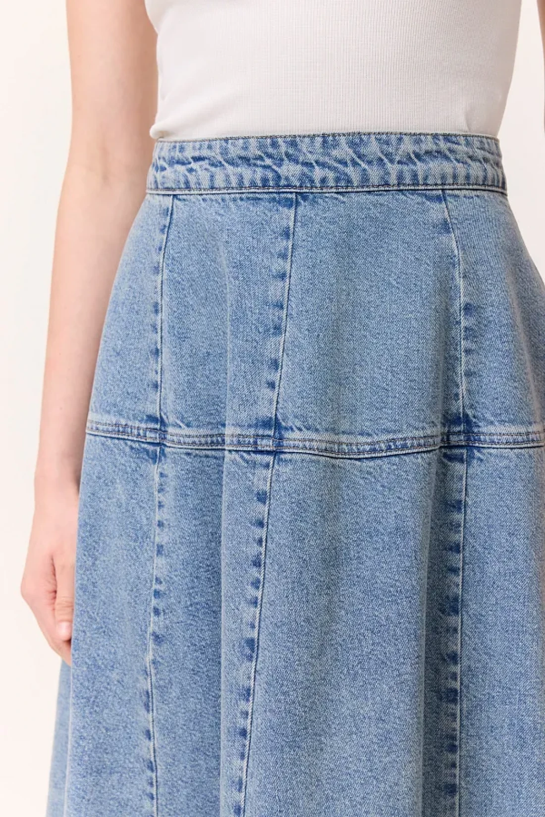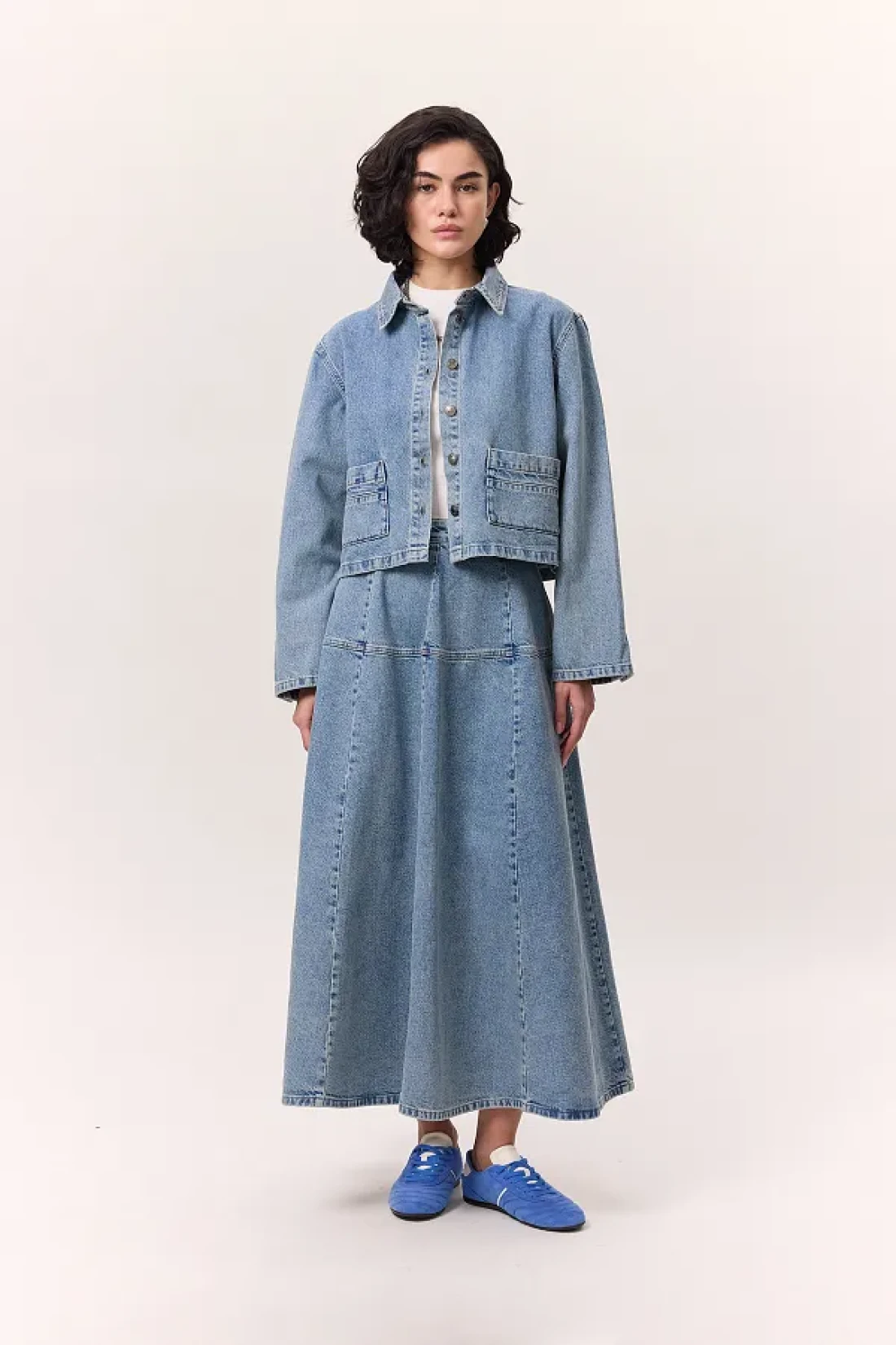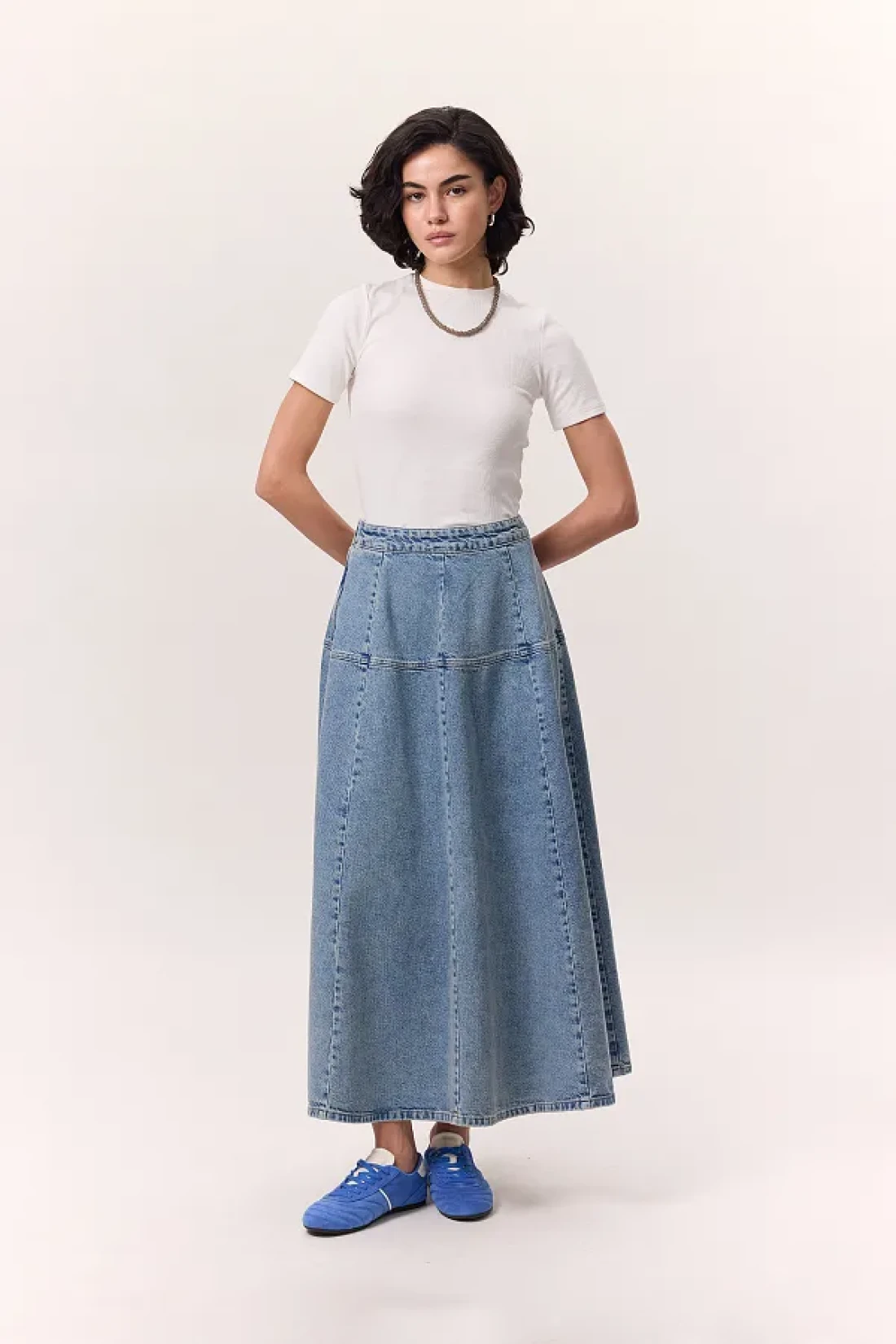 Manuka تنورة واسعة من الدنيم باللون الأزرق